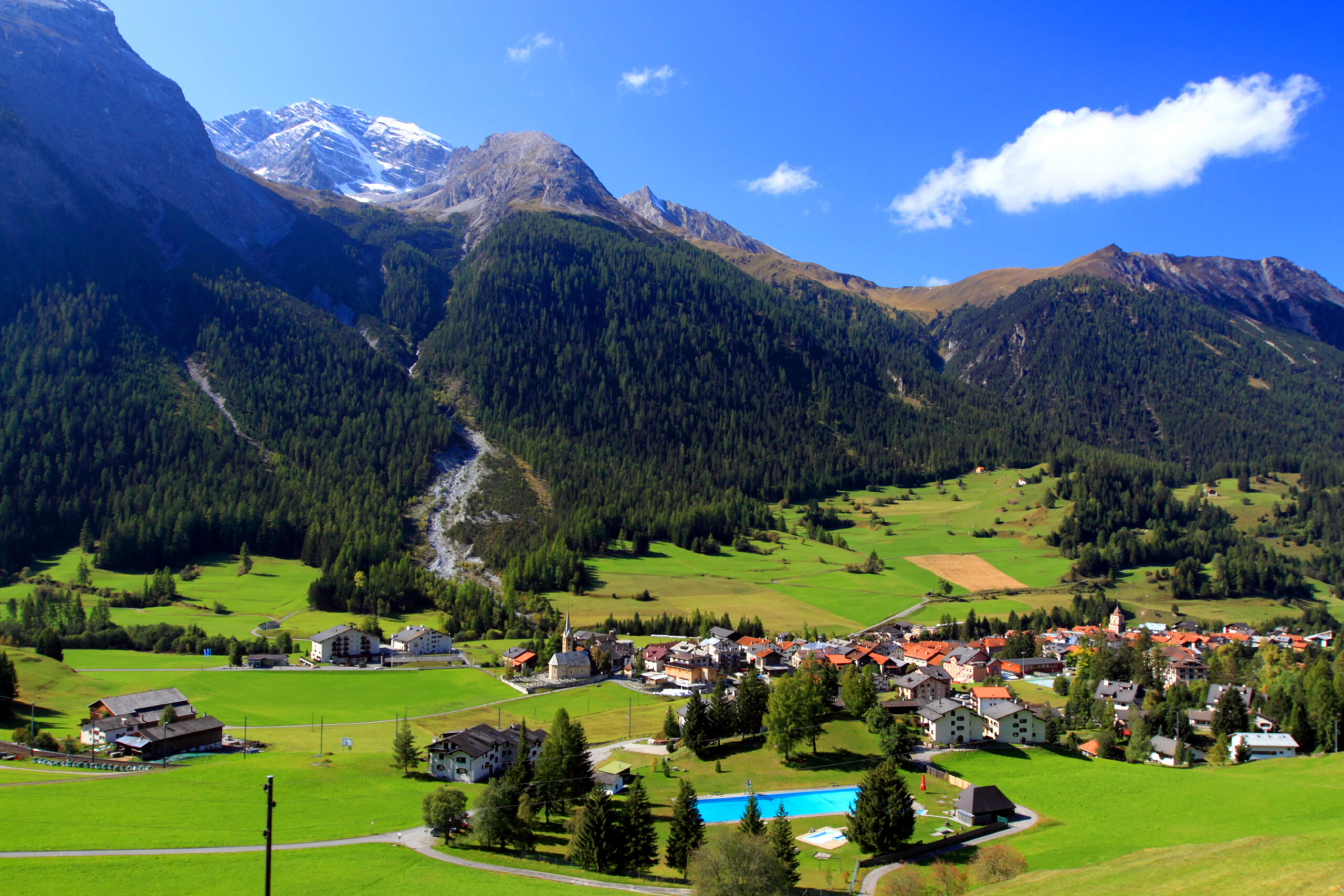 Τον χειμώνα η διαδρομή μέσα από τις ολόλευκες πλαγιές μοιάζει με όνειρο, ενώ η θέα από την κορυφή Piz Bernin, το πιο ψηλό σημείο των ανατολικών Άλπεων, είναι τουλάχιστον μαγευτική. Αν βρεθείτε στην Ελβετία την άνοιξη, θα εντυπωσιαστείτε από τις μεγάλες εναλλαγές ανάμεσα στα χιονισμένα βουνά και τις καταπράσινες πεδιάδες.
