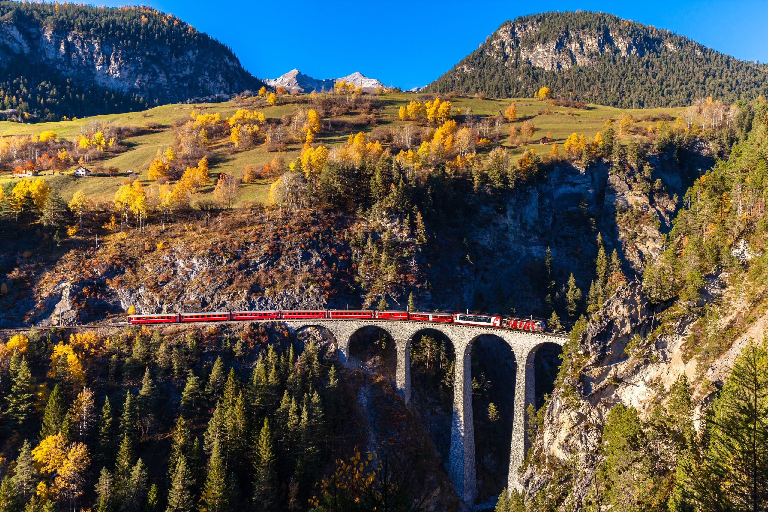 Αν είστε λάτρεις των διαδρομών με τρένο, τότε εδώ θα μπορέσετε να κάνετε το ταξίδι της ζωής σας. Με αφετηρία το Chur και τερματικό σταθμό το Tirano στα ιταλικά σύνορα, θα απολαύσετε ένα συγκλονιστικό σκηνικό, το οποίο έχει χαρακτηρισθεί ως ένα από τα ομορφότερα στον κόσμο. Τα κόκκινα βαγόνια του διάσημου σιδηρόδρομου Bernina (Βernina Range) σας οδηγούν κατευθείαν στην καρδιά των ελβετικών Άλπεων, ταξιδεύοντας πάνω σε ράγες, οι οποίες σε ορισμένα τμήματα της διαδρομής είναι τοποθετημένες σε τόσο ψηλά και απόκρημνα σημεία που θα κάνουν το αίμα σας να παγώσει.