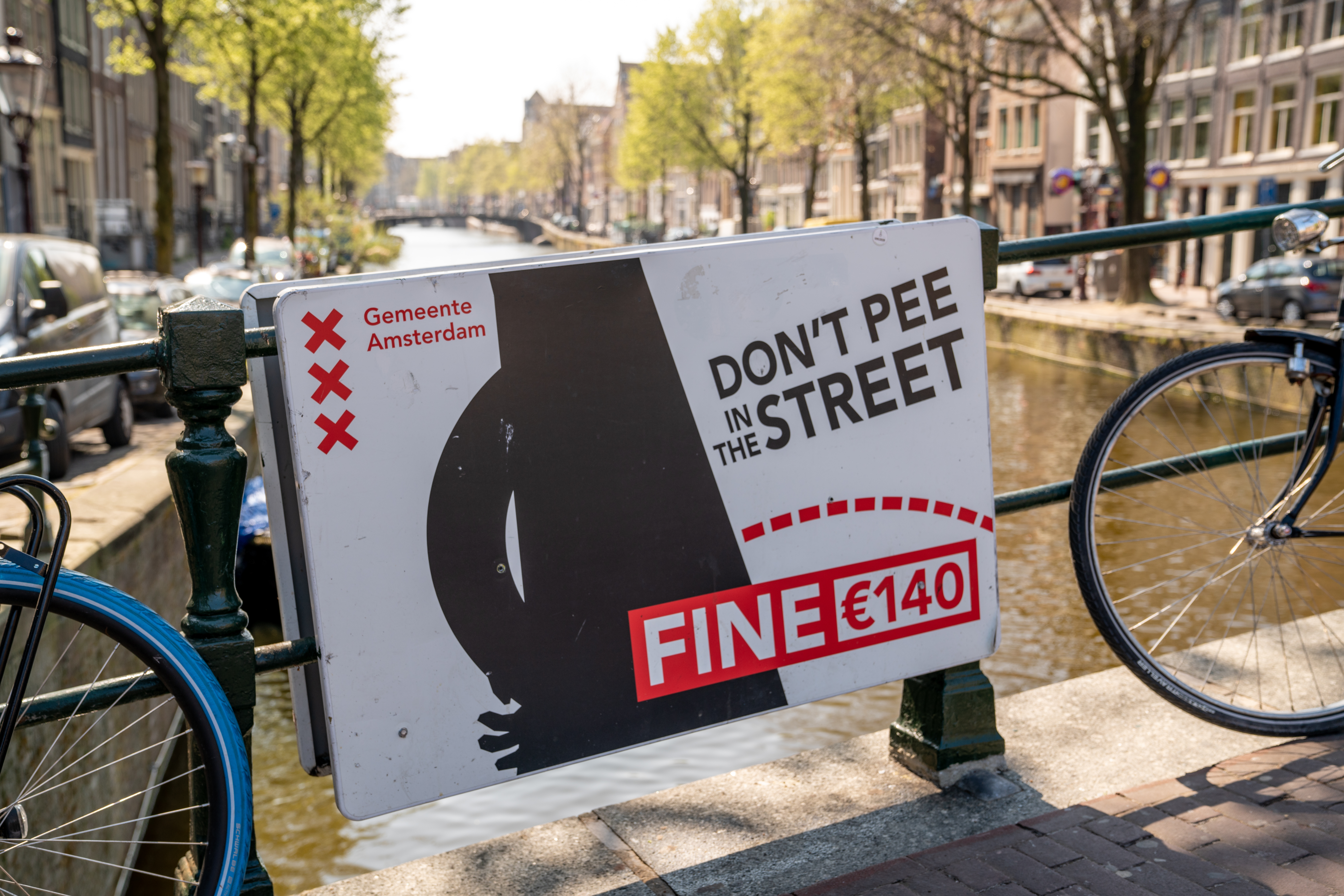 Πλέον όποιος κινείται στο Άμστερνταμ, εκτός από τα χαρακτηριστικά κτίρια, τις γέφυρες και τα πολλά πολλά ποδήλατα, μπορεί να δει και ταμπέλες που ζητούν (στην αγγλική γλώσσα) από τους τουρίστες να μην ουρούν στα κανάλια και τους δρόμους της πόλης. Προβλέπεται πρόστιμο.