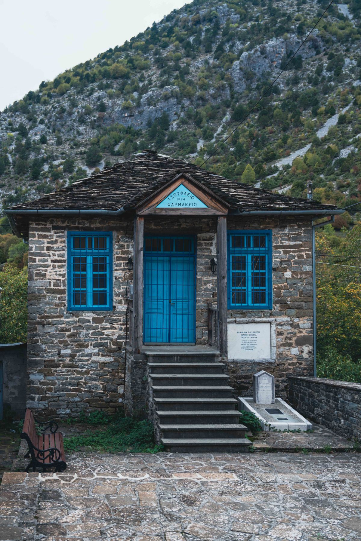 Με αυτά και με εκείνα, η επίσκεψή μας στο Τσεπέλοβο, στην πρωτεύουσα του κεντρικού Ζαγορίου, θα περιοριστεί σε ένα σεργιάνι στα λιθόστρωτα σοκάκια του παραδοσιακού οικισμού. Οι Γερμανοί δεν άγγιξαν το βλαχοχώρι, του οποίου η «γέννηση» χρονολογείται τον 15ο αιώνα, κι έτσι τα περισσότερα κτίρια είναι διατηρητέα νεότερα μνημεία. Ανάμεσά τους και το Τσούφλειο Φαρμακείο, χτισμένο από τον εθνικό ευεργέτη Αναστάσιο Τσούφλη, που ξεκίνησε σαν φαρμακείο το 1874 πριν μετατραπεί στο ταχυδρομείο του χωριού και τώρα πλέον λειτουργεί ως δημοτική πινακοθήκη, με έργα του εικαστικού Πέτρου Παπαβασιλείου στον πάνω όροφο και έκθεση σύγχρονης φωτογραφίας στο ημιυπόγειο. Βρίσκεται δίπλα ακριβώς στην εκκλησία του Αγίου Νικολάου, τον πέτρινο ναό με το εξάγωνο καμπαναριό που χρονολογείται από το 1708, ενώ στην «αυλή» του κείτεται ο ποιητής και γιατρός Ιωάννης Βηλαράς, ο οποίος ενταφιάστηκε το 1823.