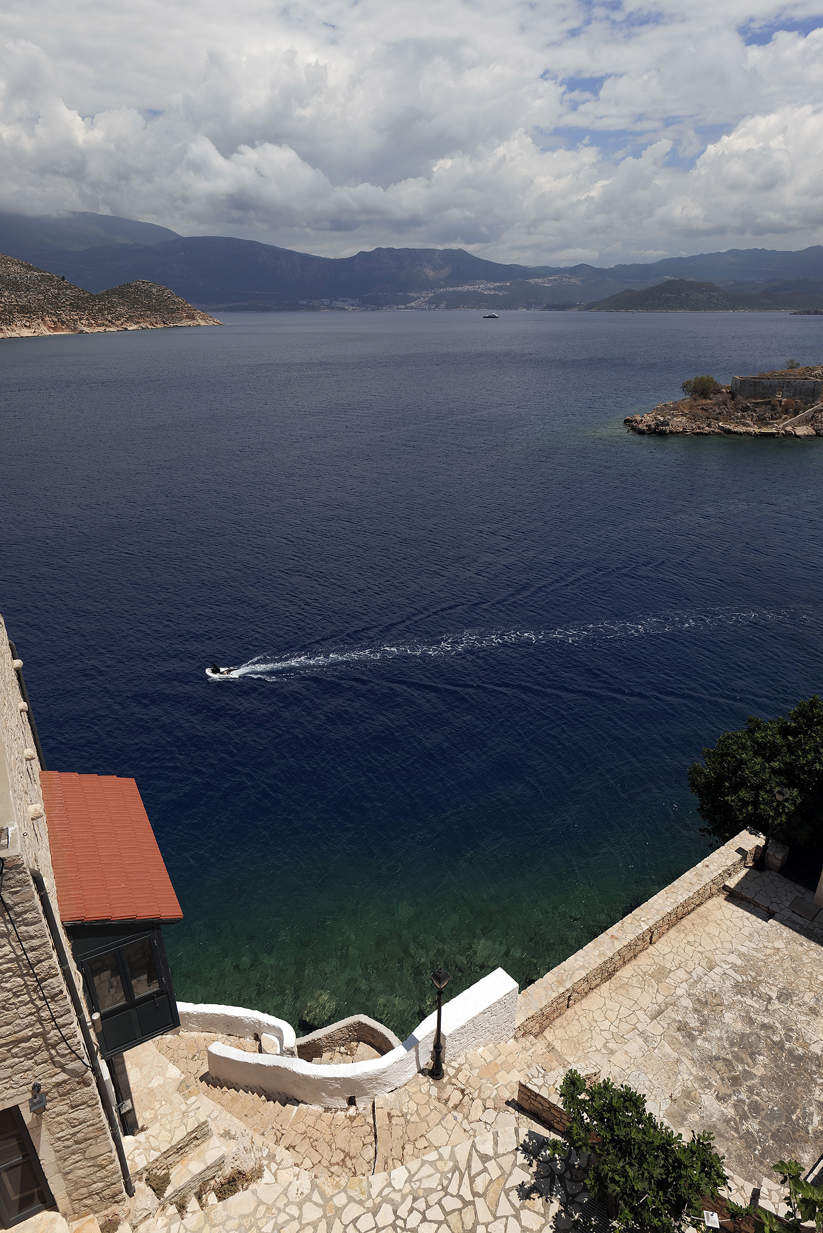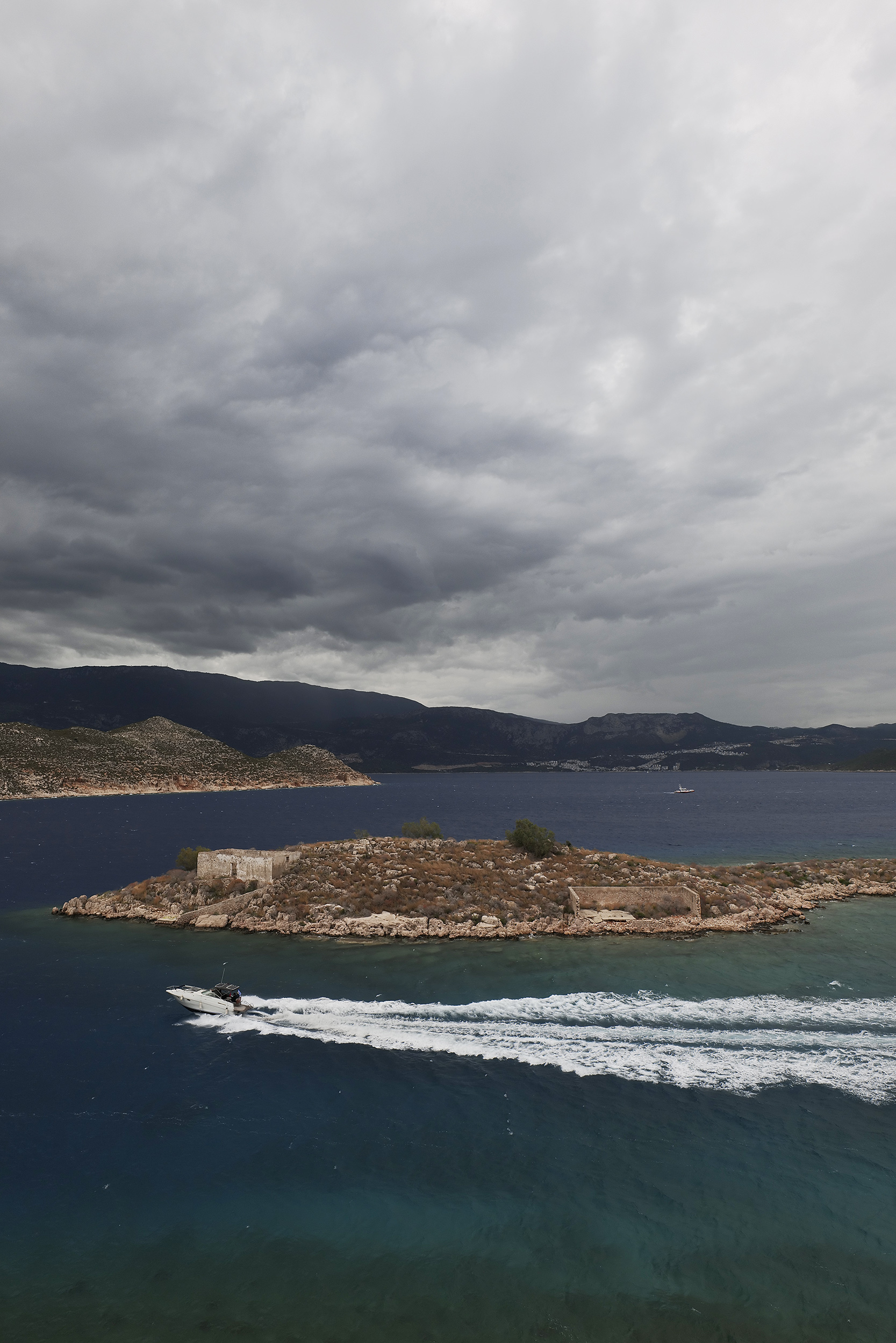 Ο παραλιακός δρόμος για το λιμάνι βουίζει από την πρωινή κίνηση αλλά μετά την είσοδο στο πολύ μεγάλο πλοίο, επέρχεται αυτόματα η ηρεμία της αίσθησης της απόδρασης. Έλληνες είναι οι περισσότεροι επιβάτες, με προφανή την καταγωγή τους από το νησί του Καστελόριζου, αν κρίνω από τις κουβέντες που ανταλλάσσουν. Ανταγωνίζονται σε ένταση φωνής τους Ιταλούς, οι οποίοι είναι η δεύτερη πολυπληθέστερη εθνικότητα μέσα στο πλοίο. Οι δυτικοί μας γείτονες έχουν μια τεράστια αγάπη για τα Δωδεκάνησα, έτσι κι αλλιώς και για ιστορικούς λόγους. Το δρομολόγιο του πλοίου από τη Ρόδο για το Καστελόριζο δεν είναι καθημερινό. Διαρκεί τρεισήμισι ώρες χωρίς ενδιάμεση στάση, αφού δεν υπάρχει κάποιο λιμάνι στο μεταξύ. Η ελαφριά συννεφιά και η υγρασία θολώνουν λίγο την εικόνα των τουρκικών παράλιων στα αριστερά, ένα μοτίβο μόνιμο μέχρι την άφιξη.