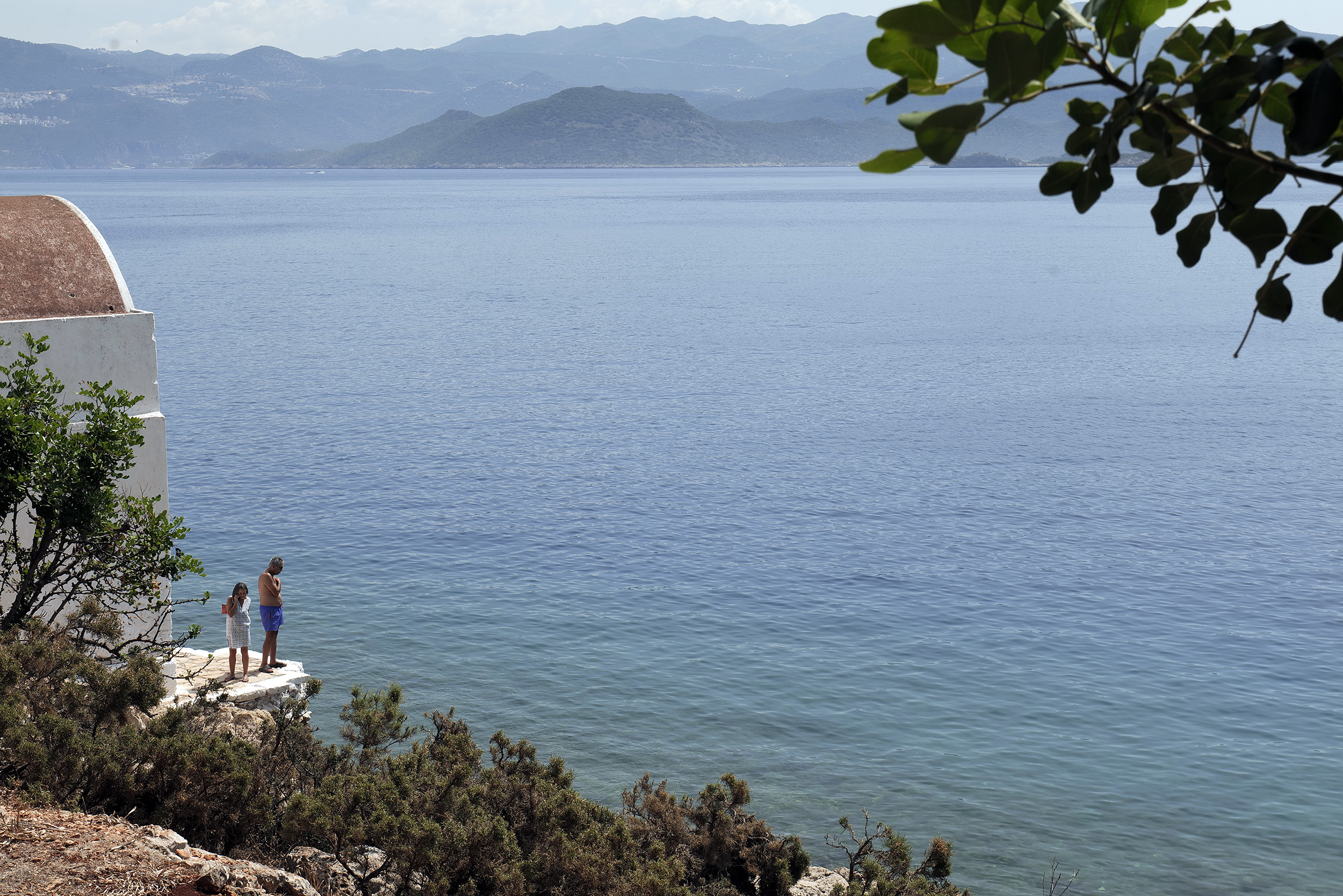 Η απόσταση είναι τόσο μικρή που, τη νύχτα, όταν η ατμόσφαιρα είναι πολύ καθαρή, σχεδόν ενώνονται τα φώτα και οι στεριές των δύο τόπων σε μια ειρηνική οφθαλμαπάτη. Στο νησί, εκτός από τους ολοένα αυξανόμενους αριθμούς Τούρκων επισκεπτών, αυτές τις ημέρες βρίσκονται και οι γιατροί, μια περιοδική επίσκεψη με επιστήμονες όλων των ειδικοτήτων στο κτίριο του πολυδύναμου ιατρείου του νησιού αλλά και περίπου τριακόσιοι Ιταλοί, από το Μιλάνο, καλεσμένοι στο γάμο ενός ζευγαριού, επίσης Ιταλών. Η ατμόσφαιρα, για καλή μου τύχη, είναι χαρούμενη, αισιόδοξη, ολοζώντανη και, όσον αφορά τους Ιταλούς και λίγο… αλκοολική. Καλαίσθητες συγκεντρώσεις, τραπεζώματα, ομαδικές βουτιές αλλά και πάρτι, συνθέτουν το γαμήλιο ιταλικό τριήμερο.