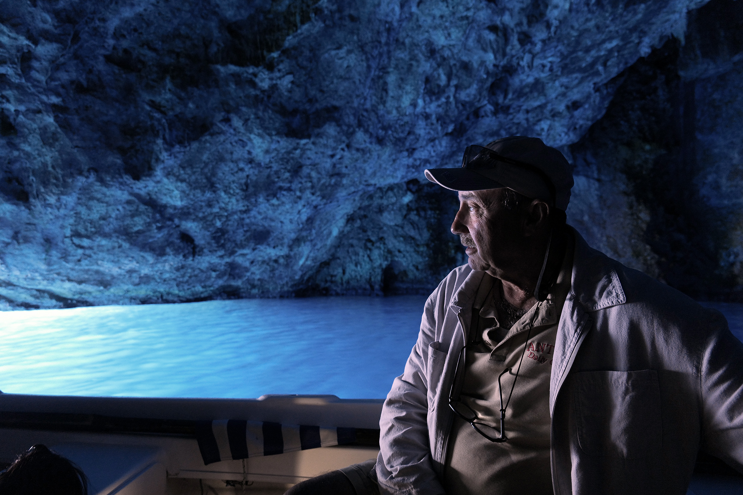Και εκεί ξαφνικά, ο κόσμος αλλάζει, μέσα στη γαλάζια απόχρωση, την κρυστάλλινη καθαρότητα των νερών, τους σχηματισμούς και τα κοράλλια στα βράχια, την ησυχία, πέρα από τον ελαφρύ παφλασμό και το χορευτικό λίκνισμα της βάρκας. Η στιγμή είναι σχεδόν ευλαβική και ο Αντώνης φροντίζει να τονίσει αυτή τη σπουδαιότητα, μένοντας σιωπηλός και μιλώντας μόνο όπου χρειάζεται για να εξηγήσει κάτι πολύτιμο ως πληροφορία. Καθώς επιστρέφουμε στο λιμάνι, χαιρετάμε τους επόμενους σε άλλες βάρκες οι οποίοι θα ζήσουν την ιδιαίτερη αυτή εμπειρία.