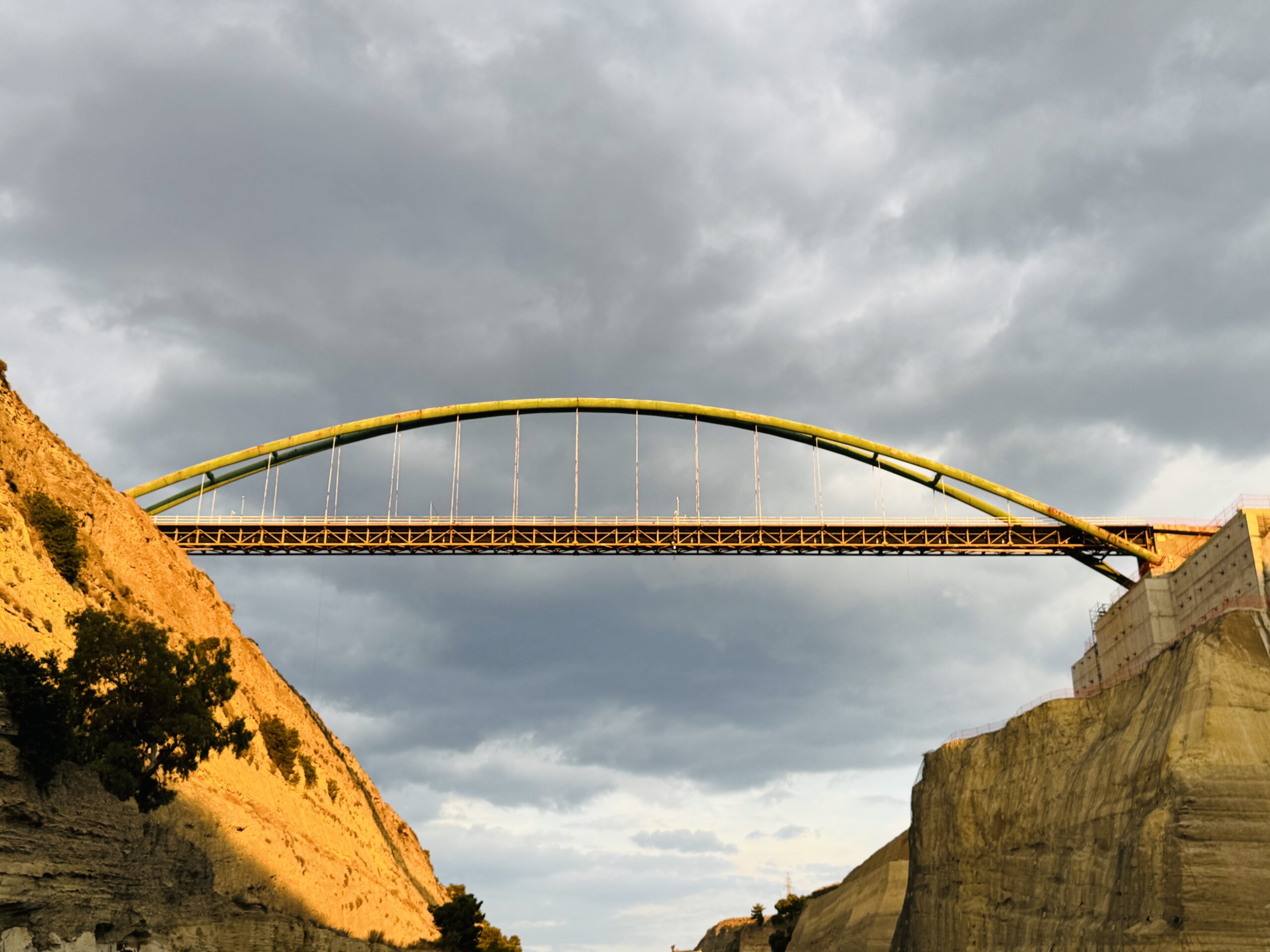 Η επιστροφή στη διώρυγα κατά το δειλινό προσέφερε μια εντελώς διαφορετική εμπειρία. Ο ήλιος είχε αρχίσει την κάθοδό του προς τη δύση και το χρυσαφί του φως έπεφτε λοξά στα τοιχώματα, δημιουργώντας ένα παιχνίδι σκιών και χρωμάτων που άλλαζε συνεχώς. Οι γέφυρες, που λίγες ώρες νωρίτερα έμοιαζαν με απλές κατασκευές, απέκτησαν μια μυστηριώδη, σχεδόν θεατρική παρουσία στο δειλινό φως. Το ανθρώπινο μάτι δυσκολεύεται να συλλάβει την πολυπλοκότητα αυτού του τοπίου. Εδώ, συναντώνται η αρχαία φιλοδοξία και η σύγχρονη τεχνολογία, η φύση και η ανθρώπινη επινοητικότητα, το παρελθόν και το παρόν. Κάθε μέτρο αυτής της διώρυγας κουβαλάει ιστορίες -από τον Περίανδρο που το οραματίστηκε το 602 π.Χ., μέχρι τον Νέρωνα που έδωσε το πρώτο χτύπημα με χρυσή αξίνα, και από τον Ιωάννη Καποδίστρια που το επανέφερε στο προσκήνιο, μέχρι τον Ανδρέα Συγγρό που τελικά το ολοκλήρωσε το 1893.