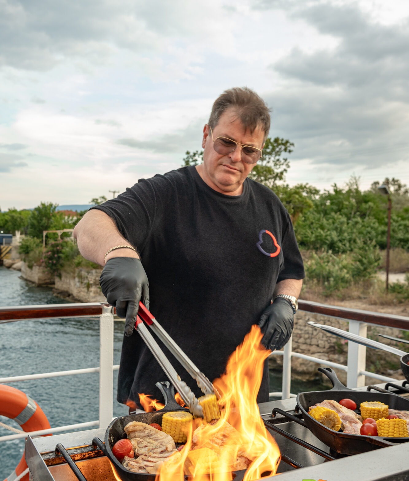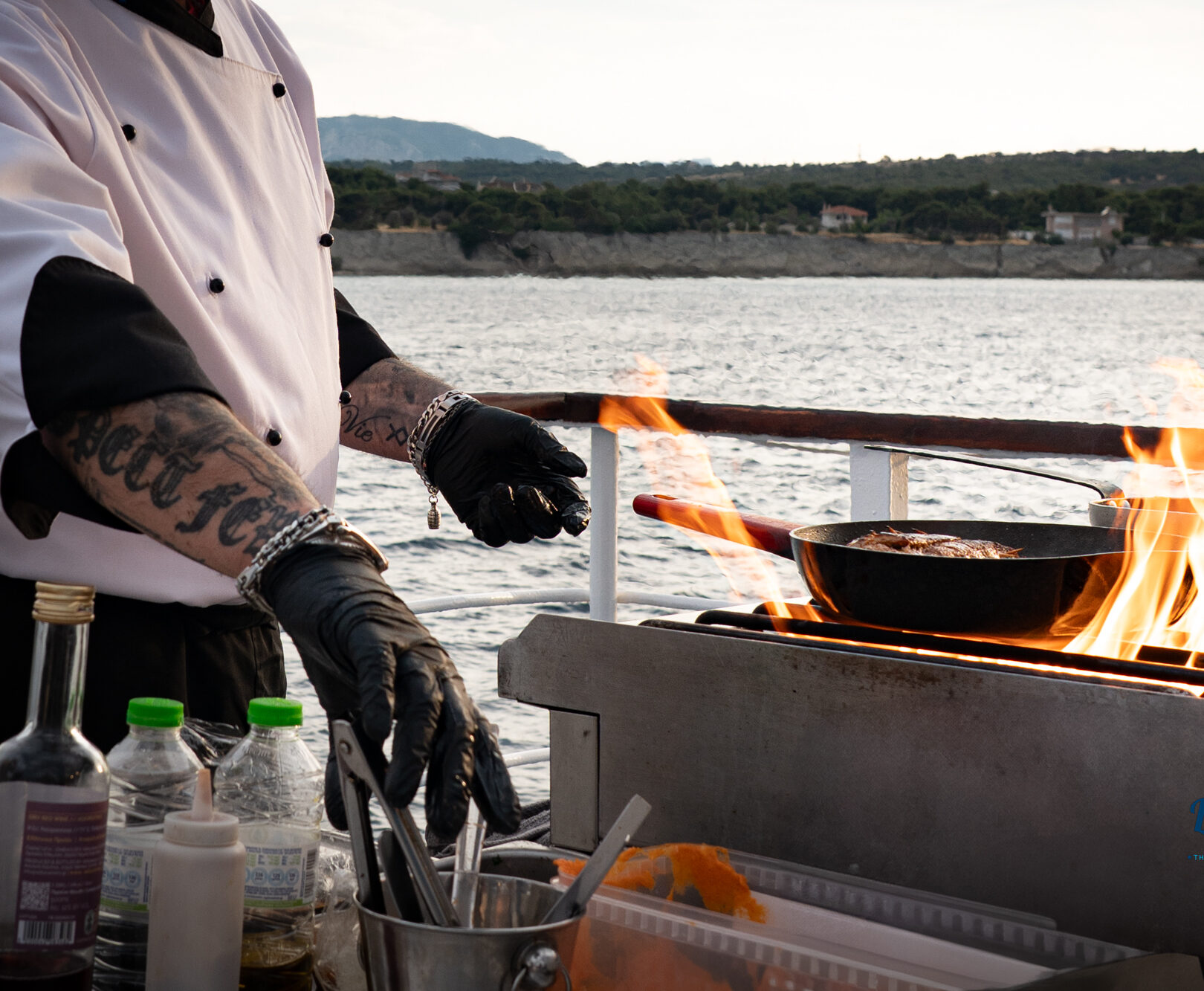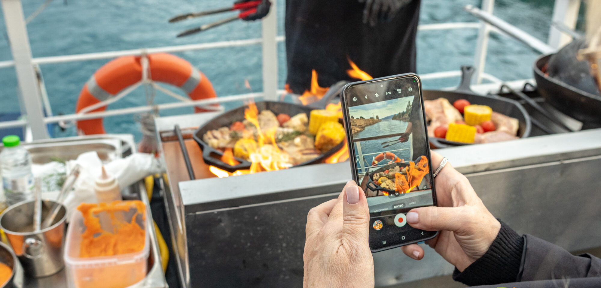 Η σύντομη τελετή απονομής της βράβευσης στο Λουτράκι έγινε δίπλα στη θάλασσα, με φόντο τη μυθική διώρυγα που μας περίμενε. Οι λόγοι των επισήμων αντηχούσαν στον αέρα, φορτισμένοι με την περηφάνια μιας πόλης που είδε τις γαστρονομικές της παραδόσεις να αναγνωρίζονται διεθνώς. Ωστόσο, η πραγματική μαγεία άρχισε όταν ανεβήκαμε στο πλοίο Άννα 2. Στο κατάστρωμα επικρατούσε μια ατμόσφαιρα γιορτινή και χαλαρή. Οι διοργανωτές το είχαν μεταμορφώσει σε έναν αυθεντικό χώρο εορτασμού. Μουσική που αγκάλιαζε τον τόπο και τη θάλασσα γέμιζε τον αέρα, ενώ τα αρώματα από τις εκδηλώσεις live cooking θύμιζαν στους παρευρισκόμενους γιατί το Λουτράκι άξιζε αυτή τη διάκριση. Το κλίμα ήταν απόλυτα ευχάριστο, με τους επιβάτες να μοιράζονται την αναμονή για το ταξίδι που θα ακολουθούσε.
