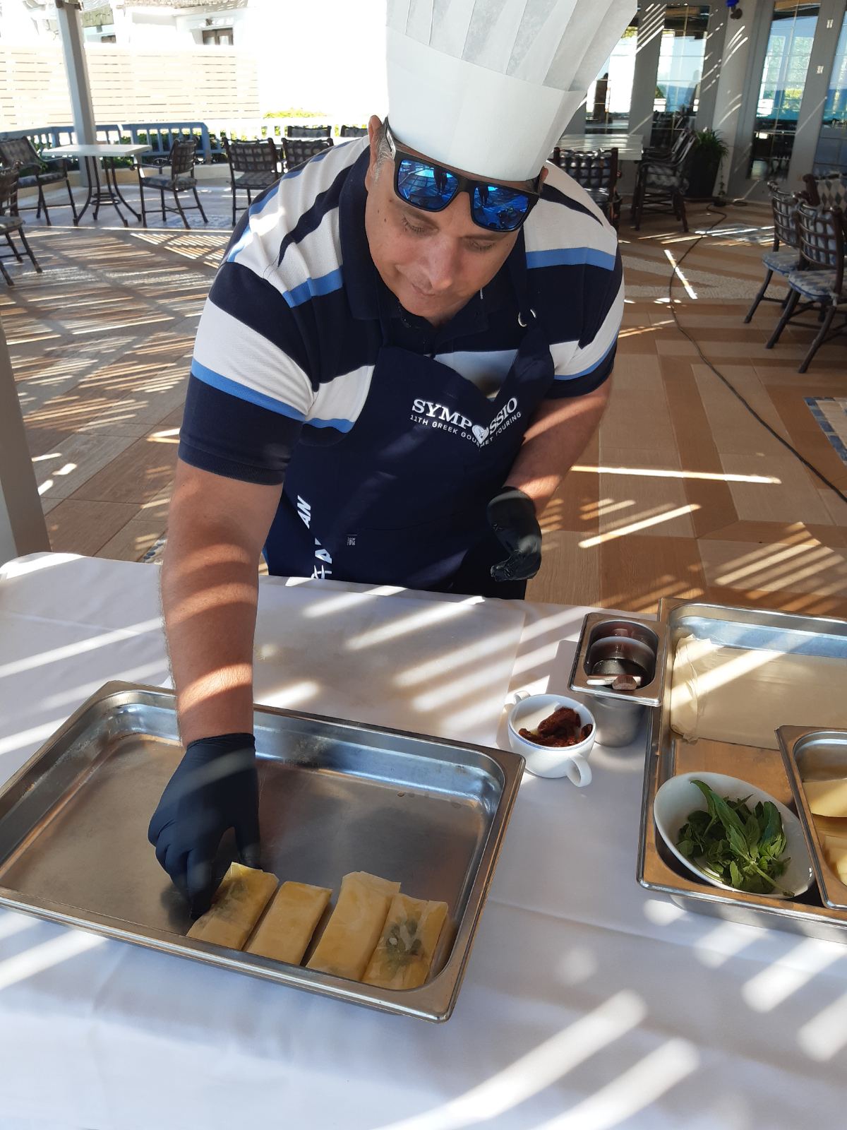 Αξίζει όμως να σημειώσουμε ότι στον χώρο του «Marina» ζήσαμε μία ακόμα ξεχωριστή εμπειρία συνδεόμενη με το φαγητό, που στεφάνωσε την τελευταία μας ημέρα στην Ηλεία με τον καλύτερο τρόπο: συμμετείχαμε στο Sympossio Gourmet Touring, το οποίο ξεκίνησε ως πρωτοβουλία του Αλέξανδρου Αγγελόπουλου, διευθύνοντα συμβούλου του Ομίλου Aldemar Resorts –και πλέον απλώνεται σε πάνω από 30 πόλεις και 15 διαφορετικές χώρες της Ευρώπης, ξεναγώντας τους ενδιαφερόμενους ταξιδιωτικούς πράκτορες στην ελληνική γαστρονομία (με τη στήριξη του ΕΟΤ).