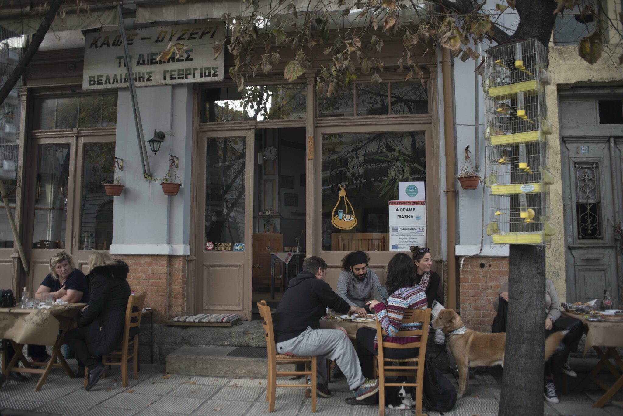 Καθόλου τυχαία, λοιπόν, βρισκόμαστε στο «δεύτερο του σπίτι», όπως αποκαλούσε ο αγαπημένος, αείμνηστος σκηνοθέτης, το «Διεθνές». Φωτογραφίζω αφουγκραζόμενη, επιτρέποντας το κάλεσμα του κλικ μέσα από τις αισθήσεις. Φοιτητές από όλη την Ελλάδα, στις Τέχνες, τη Γεωπονική, τη Ψυχολογία και την Παιδαγωγική απολαμβάνουν από νωρίς κάτω από τις φυλλωσιές, στα τραπεζάκια του πεζοδρομίου τους μεζέδες του τσίπουρου.