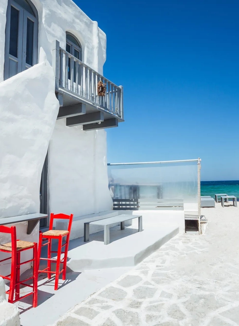 Το μέρος είναι ειδυλλιακό -πάνω στην άμμο με τραπεζάκια κάτω από τα αρμυρίκια ή στη δροσερή αυλή στην Πίσω Αλυκή. Η κουζίνα του είναι ελληνική, ανάλαφρη και αρωματική. Σημειώστε ως αντιπροσωπευτικά πιάτα με ιδιαίτερο ενδιαφέρον τη γόπα με κους κους παντζαριού, τον κολιό σε γκασπάτσο τζατζίκι, το μωσαϊκό μπακαλιάρου με πούδρα μαϊντανού, μαγιονέζα άγριου σκόρδου και αλμύρα. Χαλαρή ατμόσφαιρα διακοπών -από τη θάλασσα κατευθείαν στο τραπέζι.