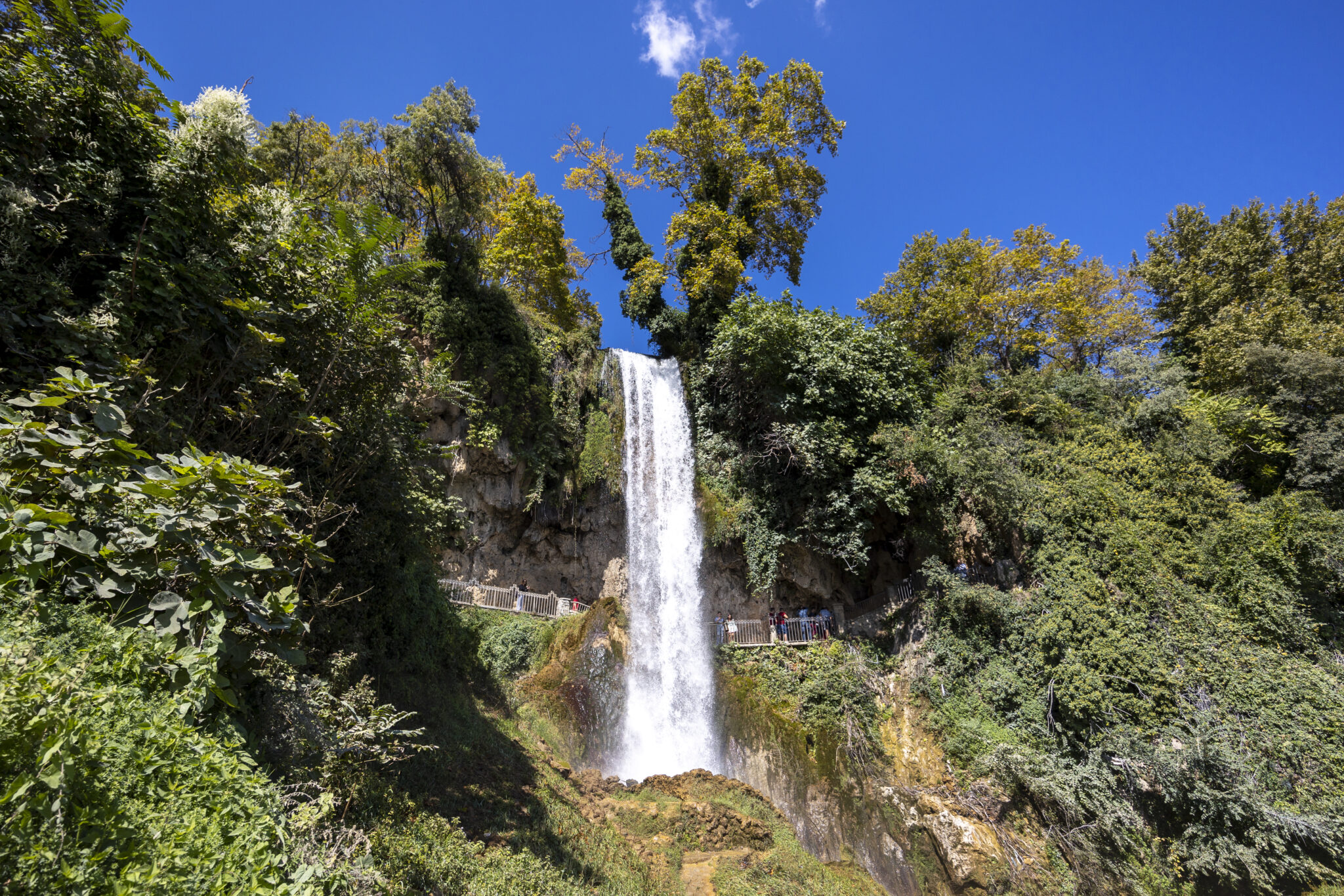 Βέβαια, ο καταρράκτης ο οποίος καθηλώνει τους επισκέπτες του είναι ο «Κάρανος», ο οποίος πέφτει από ύψος εβδομήντα μέτρων δημιουργώντας ολοστρόγγυλα λευκά σύννεφα υδρατμών και μικρά ουράνια τόξα. Γύρω του διάφορα είδη λουλουδιών και αιωνόβια δέντρα τα οποία συντροφεύουν τα νερά του καταρράκτη και δημιουργούν έναν καμβά που και ο καλύτερος ζωγράφος θα ζήλευε. Όλη αυτή την ομορφιά συμπληρώνει ο επιβλητικός ήχος του νερού που σας καθηλώνει και σας περιπλανεί σε άλλα μέρη. Μια μικρή γέφυρα δεσπόζει πίσω από τον καταρράκτη και μέσω αυτής μπορείτε να περάσετε μέσα από το νερό σε μια μοναδική εμπειρία.