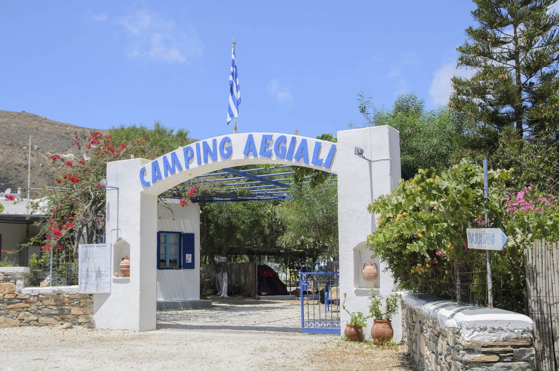 Το λάτρεψαν από την πρώτη στιγμή και ακόμη το λατρεύουν οι φανατικοί των εναλλακτικών διακοπών, εξάλλου ολόκληρο το νησί έχει ανάλογο προφίλ. Κάτω από τα αρμυρίκια, τις ελιές και τις λεμονιές του κρύβονται μικρές χρωματιστές σκηνές που σφύζουν από νιάτα. Βρίσκεται μόλις 200 μ. από την παραλία της Αιγιάλης και ενώ είναι οργανωμένο με όλα τα απαραίτητα και ακόμα παραπάνω – αν και η φιλοσοφία του μοιάζει πολύ με αυτή του ελεύθερου.