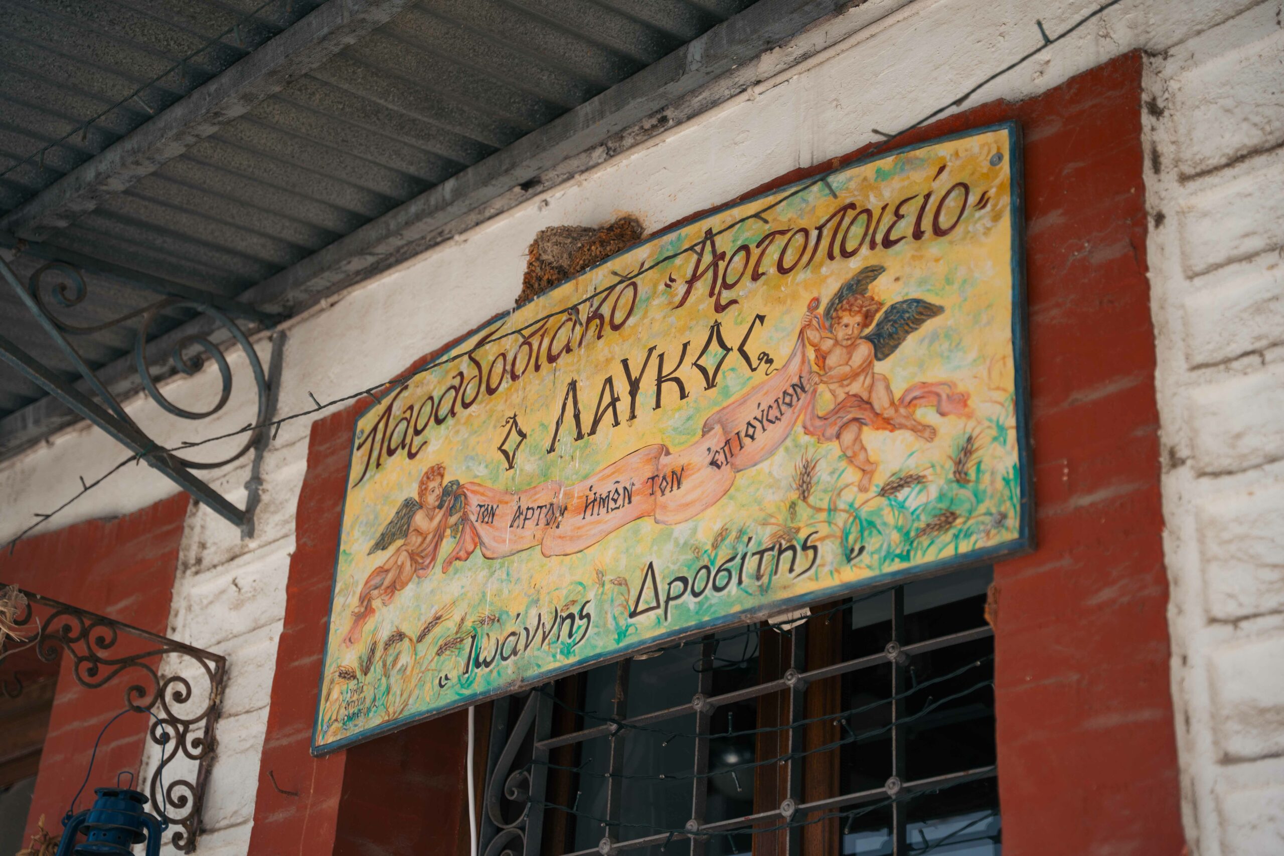 Πρώτη στάση κάναμε στον φούρνο του Γιάννη και αμέσως κατάλαβα ότι βρισκόμουν μπροστά σε κάτι ξεχωριστό. Το κτίριο από μόνο του είναι ένα μικρό αρχιτεκτονικό θαύμα-έργο του Εβαρίστο Ντε Κύρικο, του ίδιου αρχιτέκτονα που σχεδίασε τον σιδηροδρομικό σταθμό του Βόλου. Η ιστορία που κρύβεται πίσω από αυτό το κτίριο είναι μια από τις πιο γλυκόπικρες του Λαύκου.