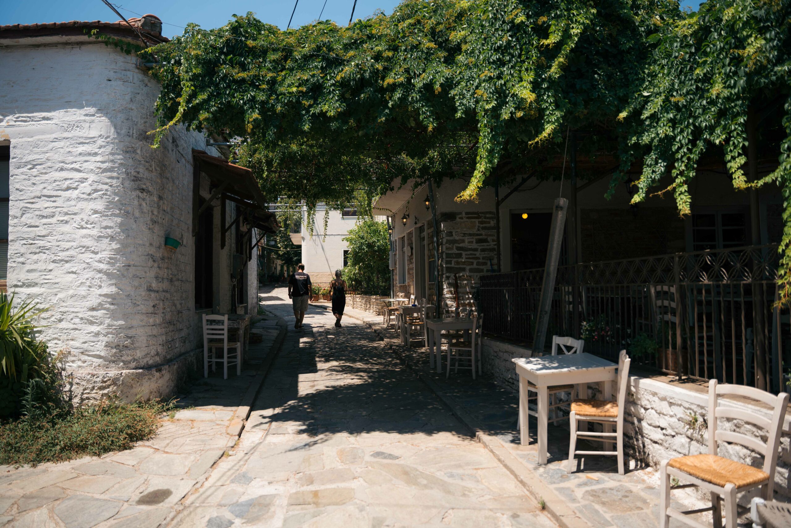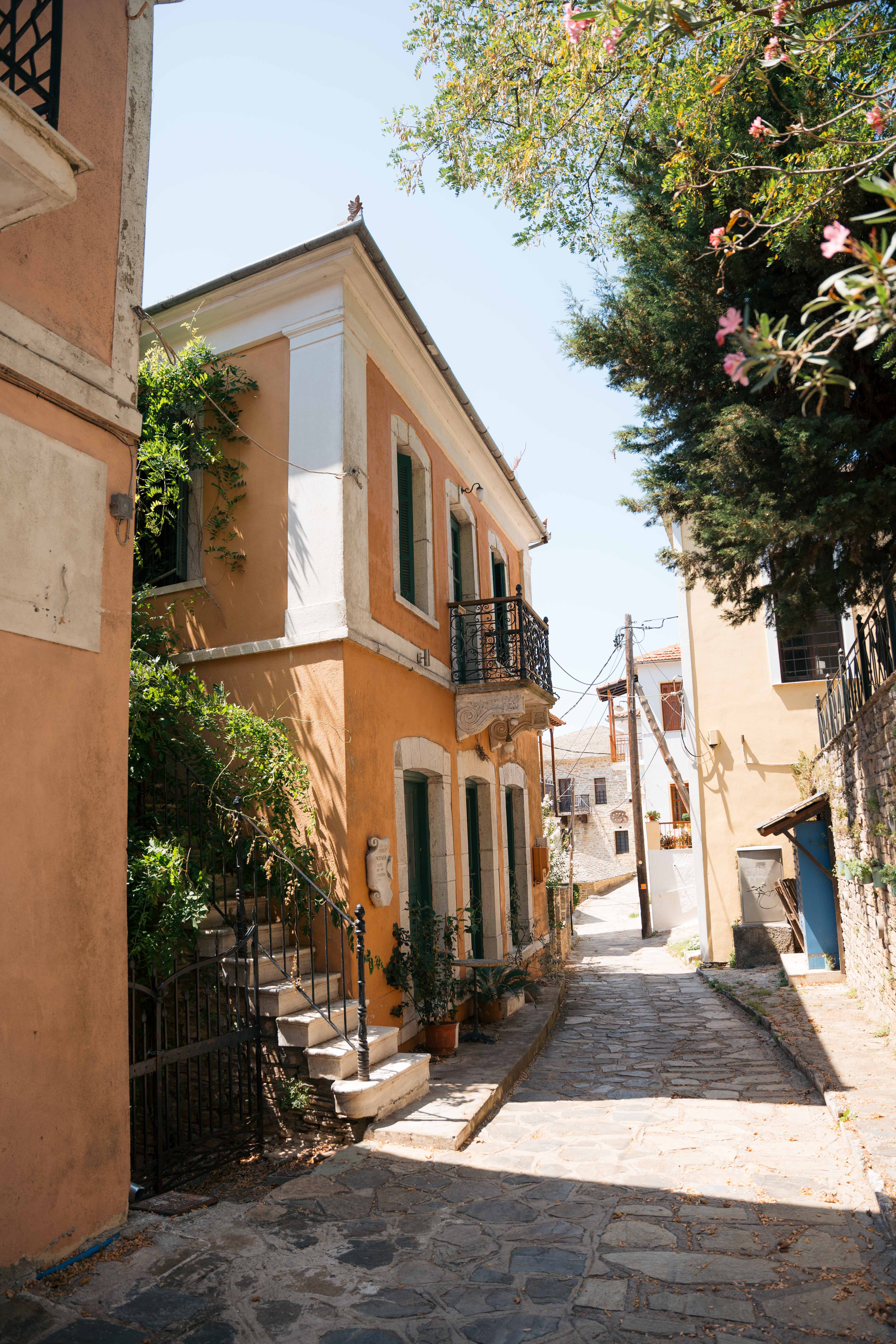 Το πράσινο ήταν παντού -όχι το περιποιημένο πράσινο των μοντέρνων κήπων, αλλά το άγριο, το αυθεντικό πράσινο που αποτελεί φυσικό συνεχές του πηλιορείτικου τοπίου. Κάθε στενό έφερνε μια νέα έκπληξη: μια παλιά πόρτα με σιδερένια χαρακτηριστικά διακοσμητικά που πλέον δεν τα βρίσκεις, ένα παράθυρο που πλαισιωνόταν από αναρριχώμενα φυτά, μια αυλή όπου η σιωπή διακοπτόταν μόνο από το κελάηδισμα των πουλιών.