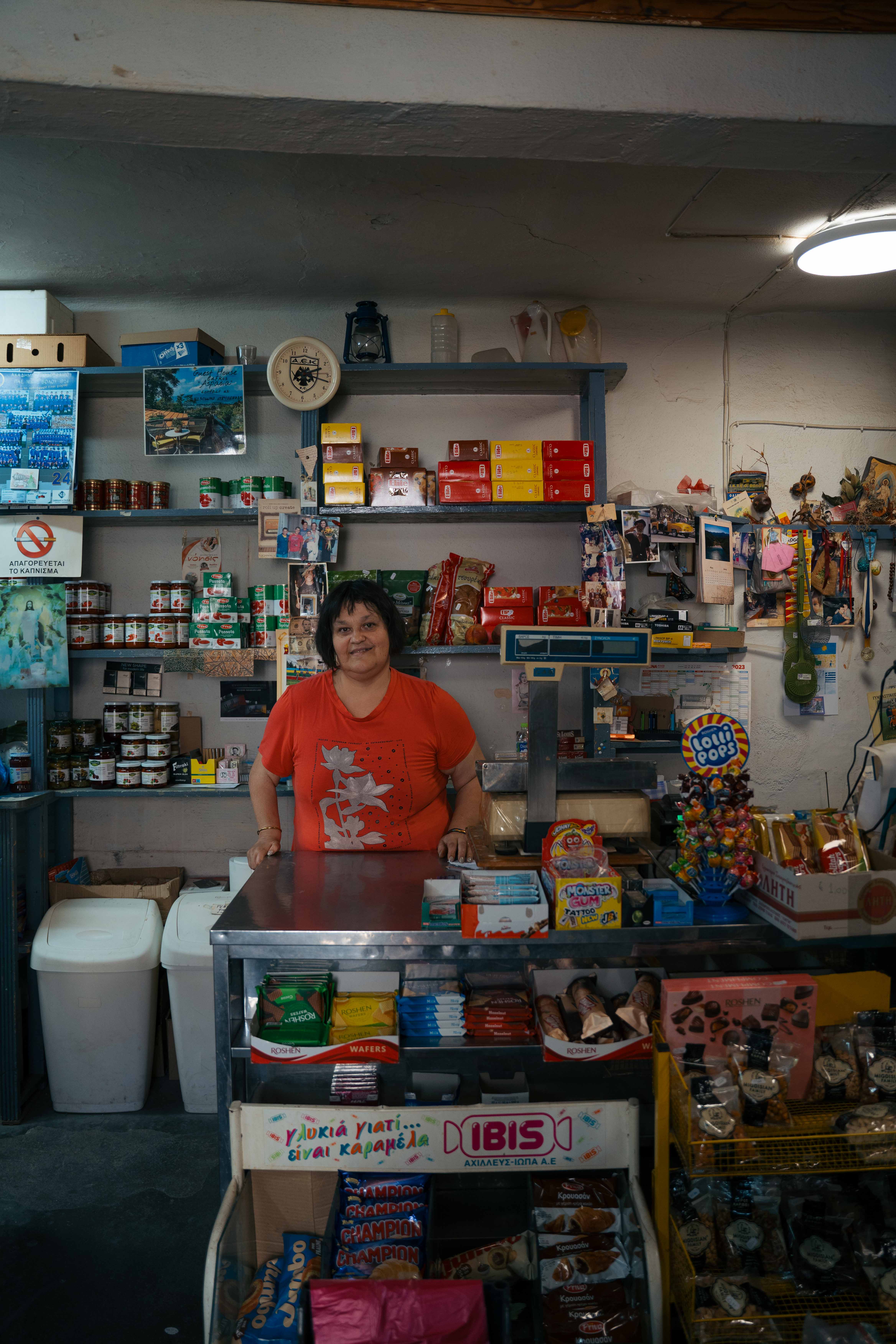 Η Αφροδίτη γνωρίζει κάθε γωνιά του μαγαζιού, κάθε ράφι που έχει φιλοξενήσει γενιές πελατών. Τα χέρια της κινούνται με την εμπειρία δεκαετιών ανάμεσα στις προθήκες γεμάτες παραδοσιακά προϊόντα, στα ξύλινα ράφια φορτωμένα με κονσέρβες και μακαρόνια, στα μεγάλα βάζα με τα μπαχαρικά που στέκουν σαν φύλακες στον πάγκο. Εδώ, στην καρδιά της πλατείας, το παντοπωλείο παραμένει ένας ζωντανός μάρτυρας μιας εποχής που αρνείται να χαθεί, ένα κομμάτι της παλιάς Ελλάδας που αντιστέκεται στον χρόνο.