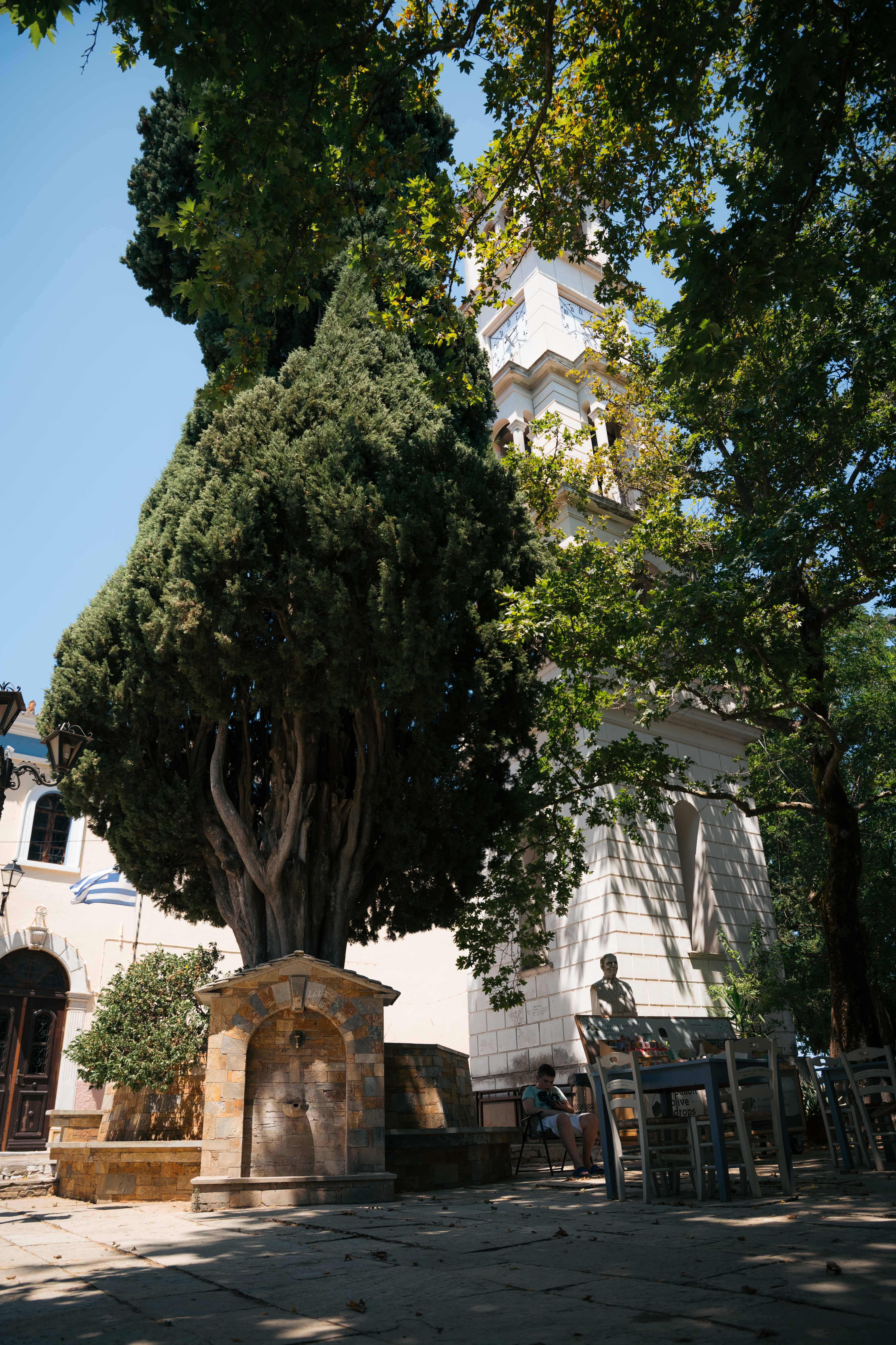 Φαντάζομαι τον μεγάλο συγγραφέα της Σκιάθου να κάθεται σε αυτή ακριβώς τη θέση, να παρατηρεί τη ζωή του χωριού, να συλλέγει εντυπώσεις που ίσως μετέτρεπε σε λογοτεχνία. Φαντάζομαι τον Βάρναλη να συζητά για την ποίηση, τη φιλοσοφία, τα οράματά του για την Ελλάδα. Αυτές οι εικόνες δεν είναι απλές φαντασιώσεις, είναι η ζωντανή μνήμη του τόπου.