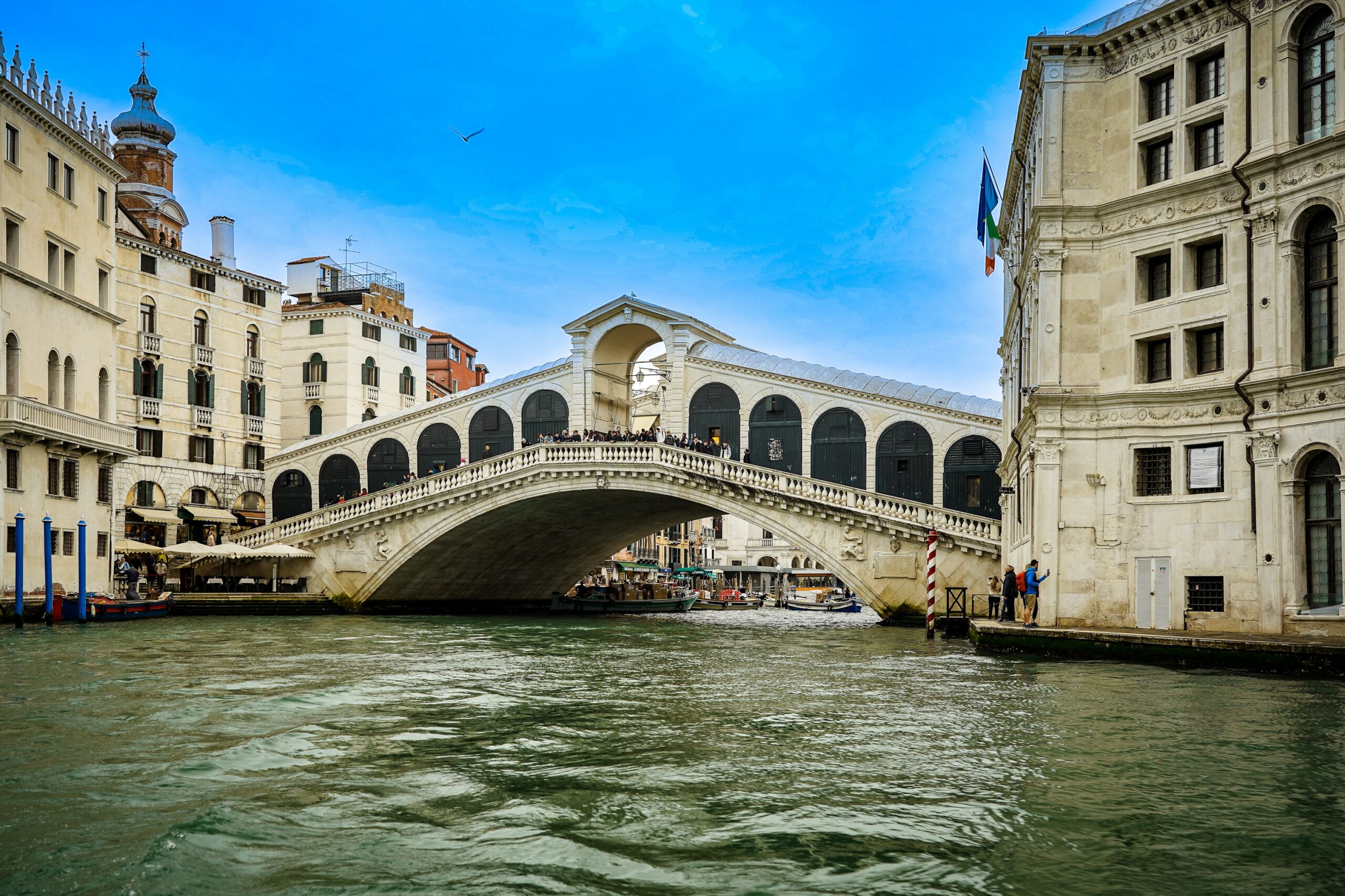 Επιστρέψτε στο δυτικό τμήμα της πόλης με κατεύθυνση το διάσημο Ponte Rialto. Για συγκλονιστική θέα πάρτε το ασανσέρ για την ταράτσα του νέου εντυπωσιακού εμπορικού κέντρου Fondaco Tedeschi (Calle del Fontego dei Tedeschi) κι έπειτα διασχίστε την περίφημη Γέφυρα Rialto για να φτάσετε στην περιοχή της αγοράς. Στη ζωηρή και εύθυμη ατμόσφαιρα του μικροσκοπικού Al Mercà (Campo Bella Vienna 213, κλειστά Κυριακή) θα εντρυφήσετε στο τελετουργικό του aperitivo, συνοδεύοντας το spritz σας με μερικά ακόμη cicchetti θαλασσινών – δοκιμάστε baccalà mantecato – φιλέτα παστού μπακαλιάρου με κρεμώδη σάλτσα και τις μικρές γκρι γαρίδες.