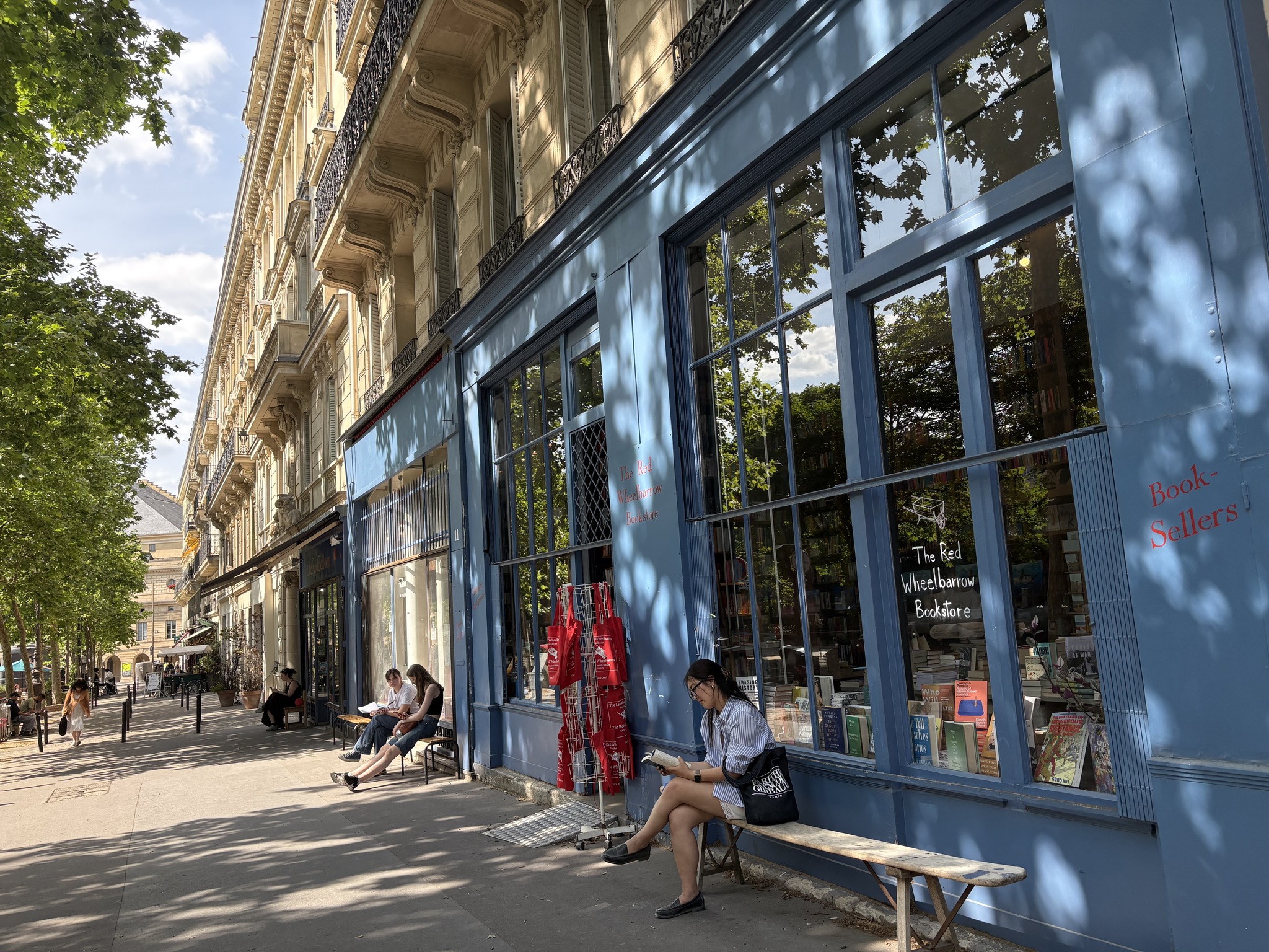 Αν, παρ’ όλα αυτά, επιθυμείτε μια πιο χαλαρή λογοτεχνική εμπειρία, κατευθυνθείτε προς το αγγλόφωνο και ιδιαίτερα ενημερωμένο βιβλιοπωλείο The Wheelbarrow Bookstore, σε μικρή απόσταση από τους Κήπους του Λουξεμβούργου. Μπορεί εύκολα να γίνει μια ευχάριστη ανάπαυλα σε μια μέρα γεμάτη περπάτημα και εξερεύνηση. Στα τακτοποιημένα ράφια του είναι σχεδόν βέβαιο ότι θα ανακαλύψετε θησαυρούς για να σας συντροφεύσουν όσο ξεκουράζεστε σε κάποιο παγκάκι ή στο terrace ενός παριζιάνικου καφέ.