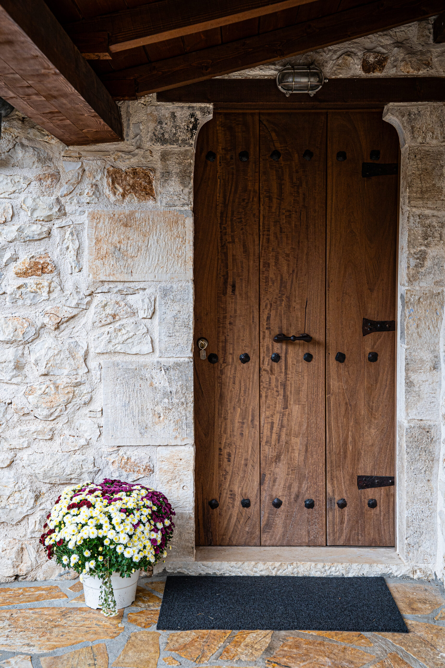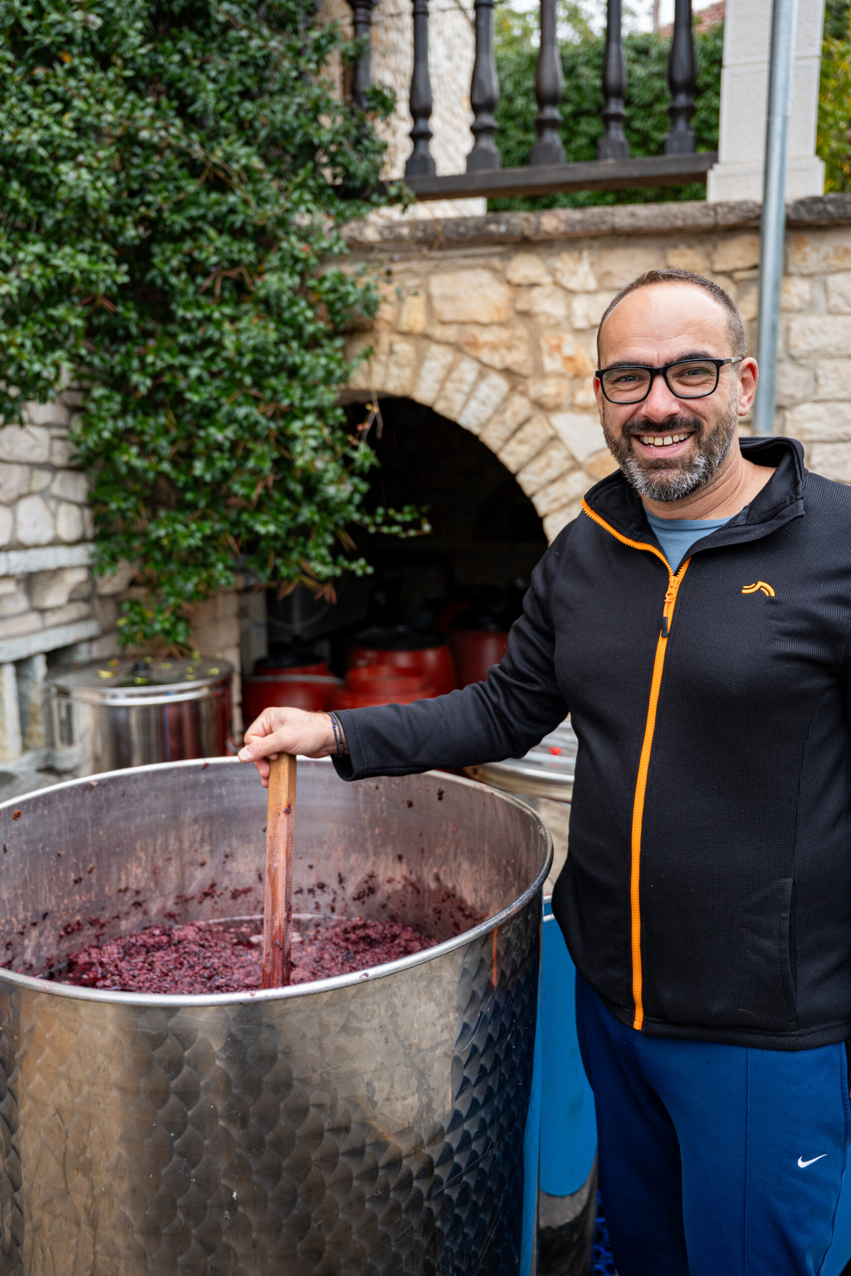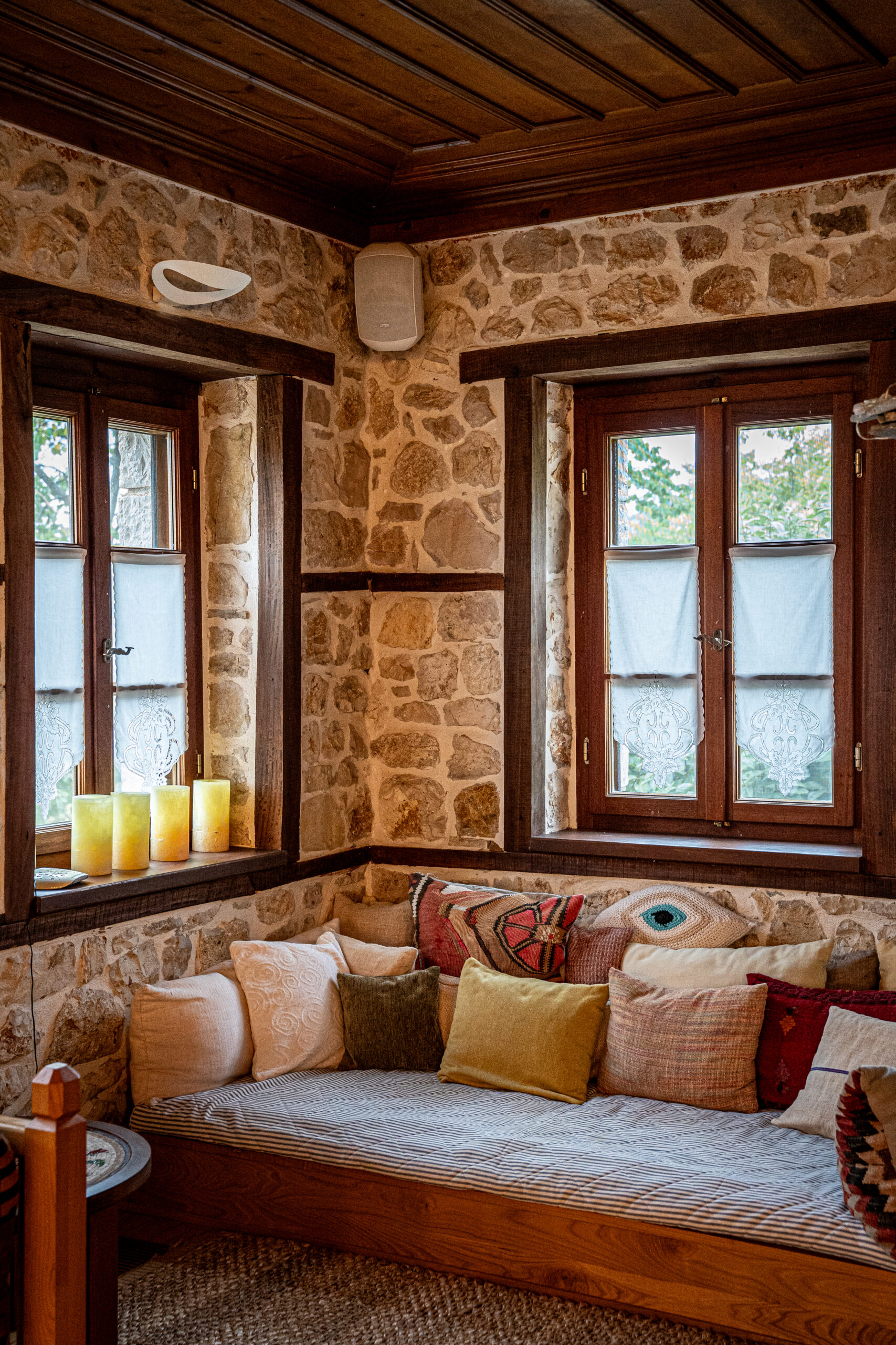 Στον προαύλιο χώρο, μια πιστή αναπαράσταση σαρακατσάνικης καλύβας στέκεται σαν βιωματικό μουσείο, υπενθύμιση της νομαδικής κτηνοτροφικής παράδοσης που διαμόρφωσε την Ήπειρο. Συναντήσαμε τον Χρήστο Κωσταρά που ανακάτευε τα στέμφυλα. Μας οδήγησε στα δωμάτια του ξενώνα, χώρους όπου το πέτρινο τοιχίο συναντά το ξύλο των οροφών, όπου κάθε γωνιά φέρει το βάρος της ιστορίας χωρίς να χάνει τη σύγχρονη άνεσή της.