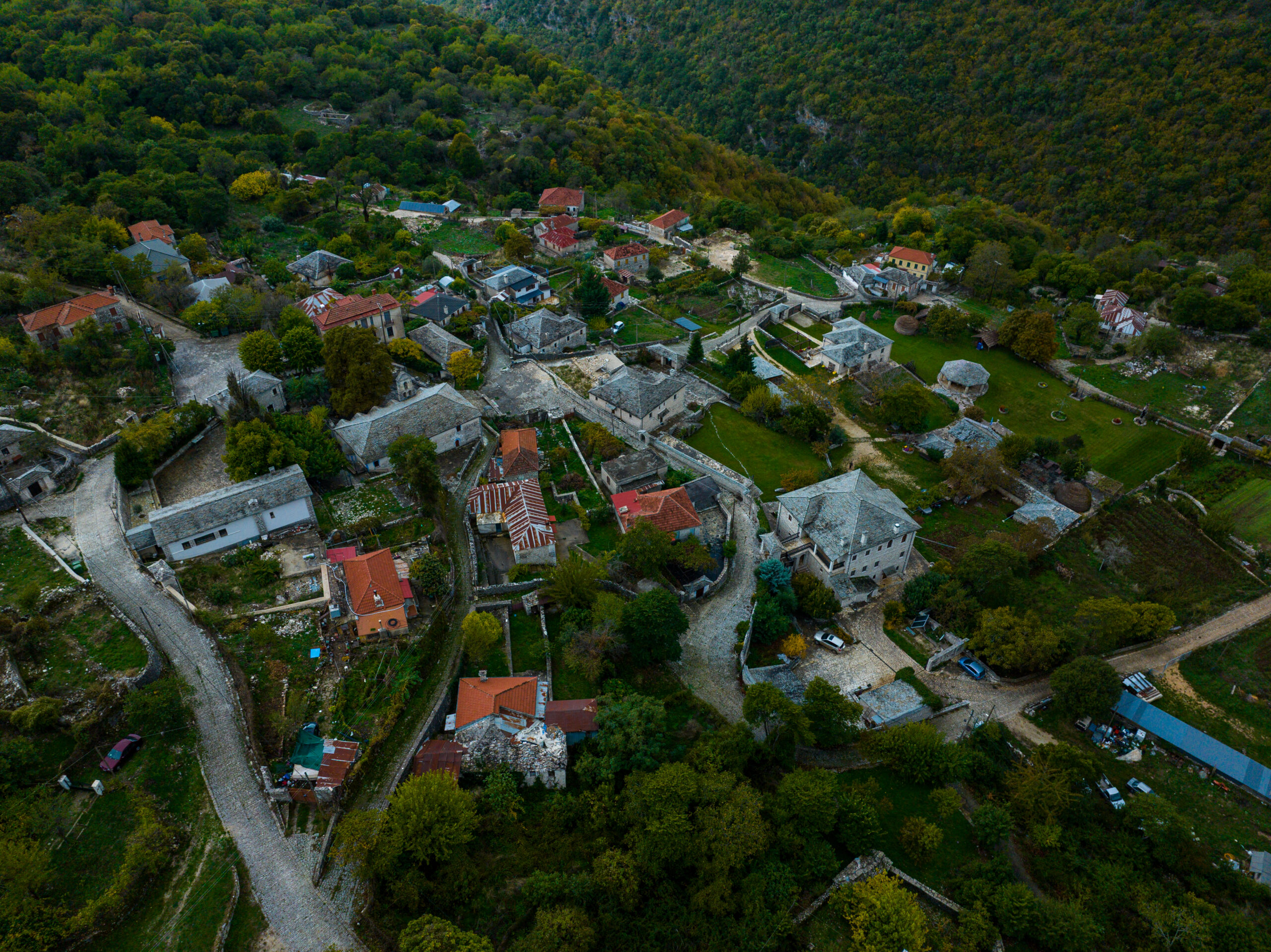 Υπάρχουν χωριά που αντιστέκονται στη λήθη. Το Δολό, αμφιθεατρικά τοποθετημένο στα 800 μέτρα υψόμετρο, στην καρδιά του Πωγωνίου, είναι ένα από αυτά. Πέτρινα καλντερίμια ξεδιπλώνονται ανάμεσα σε σπίτια χτισμένα με σχιστόπλακες, ενώ το φαράγγι του Κουβαρά σχίζει τον ορίζοντα σαν μια γεωλογική μνήμη αιώνων. Εδώ, στη σκιά του Κουτσόκρανου, όπου η ηλιοφάνεια είναι σπάνια και οι χειμώνες σκληροί, η ζωή πάλεψε πάντα να βρει την ισορροπία της.