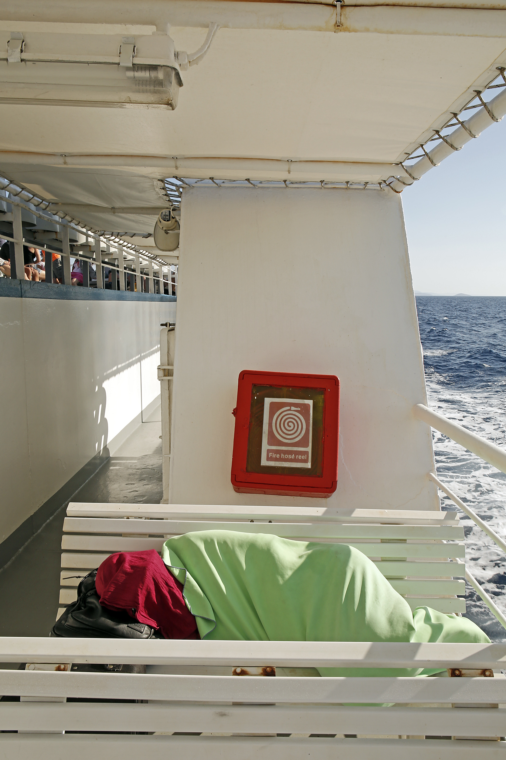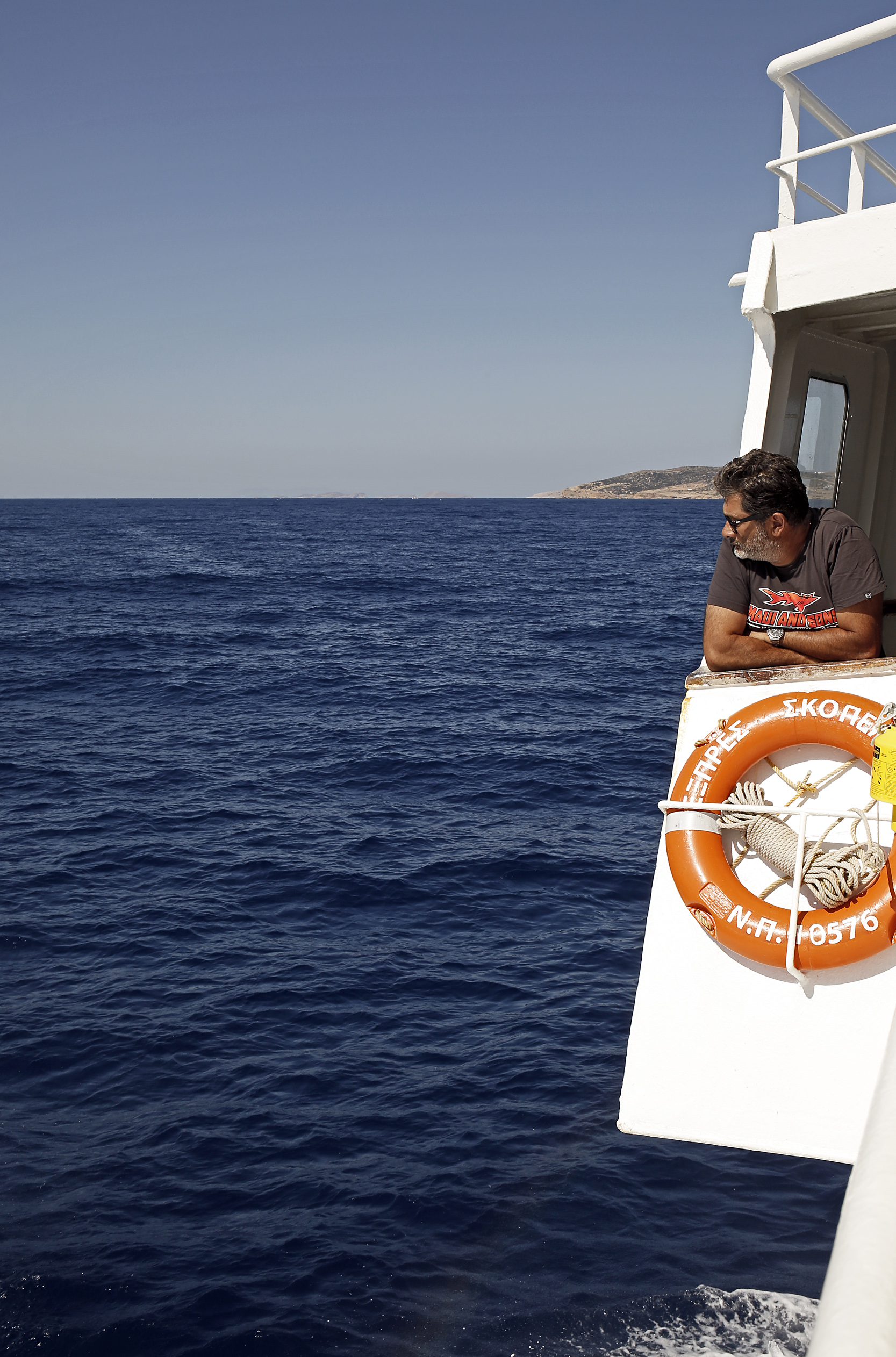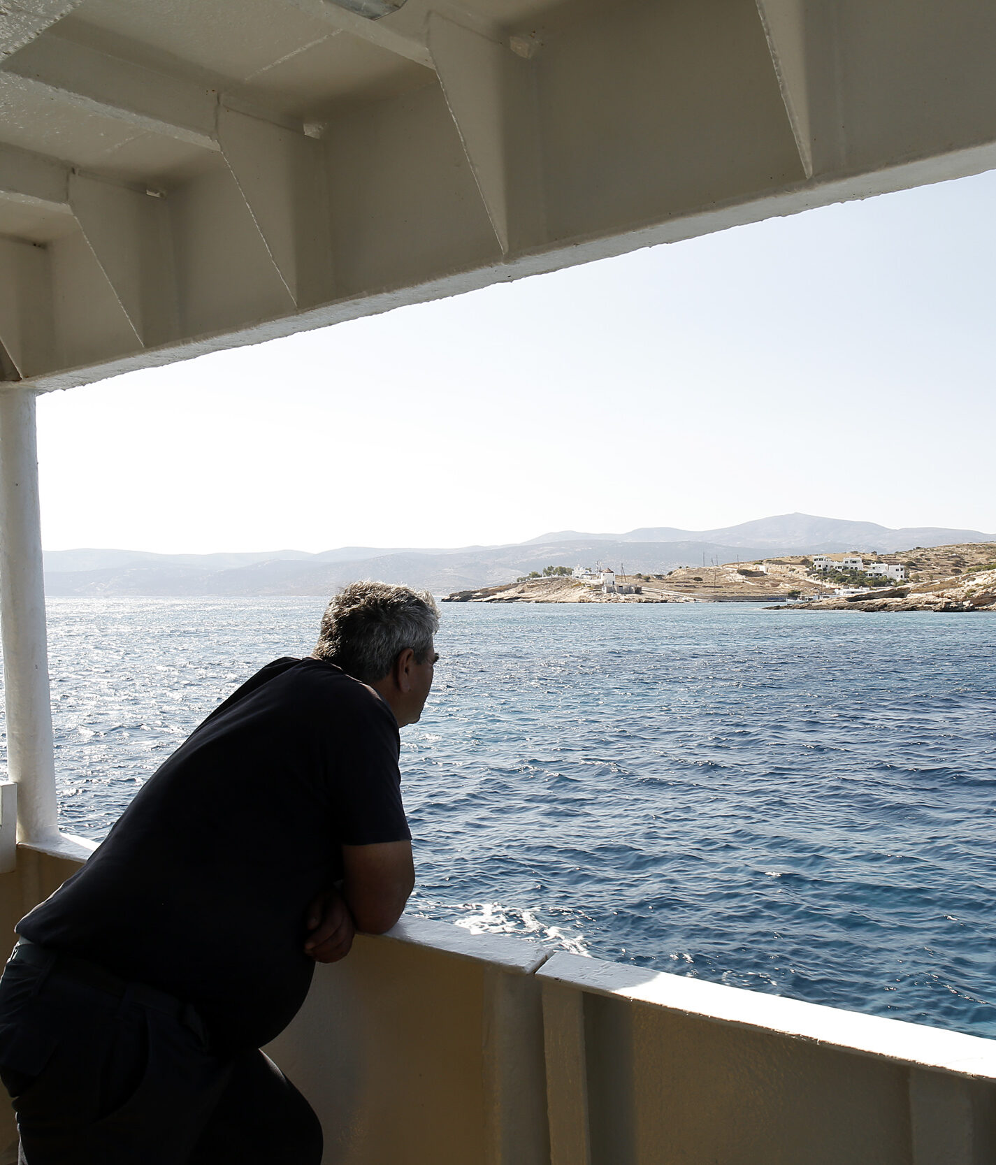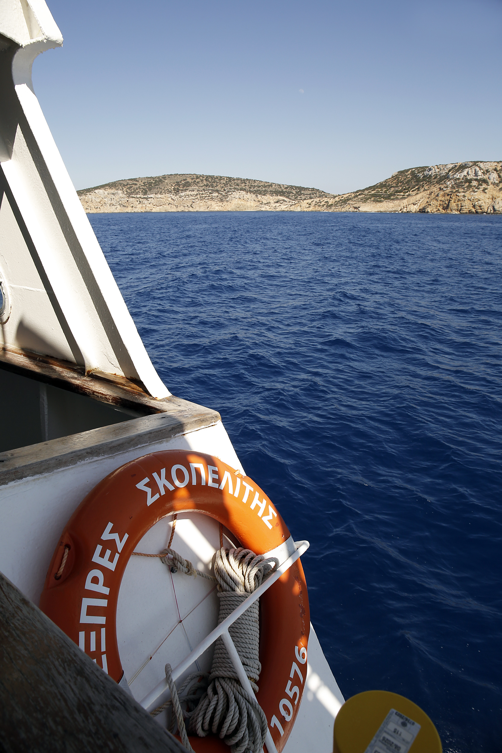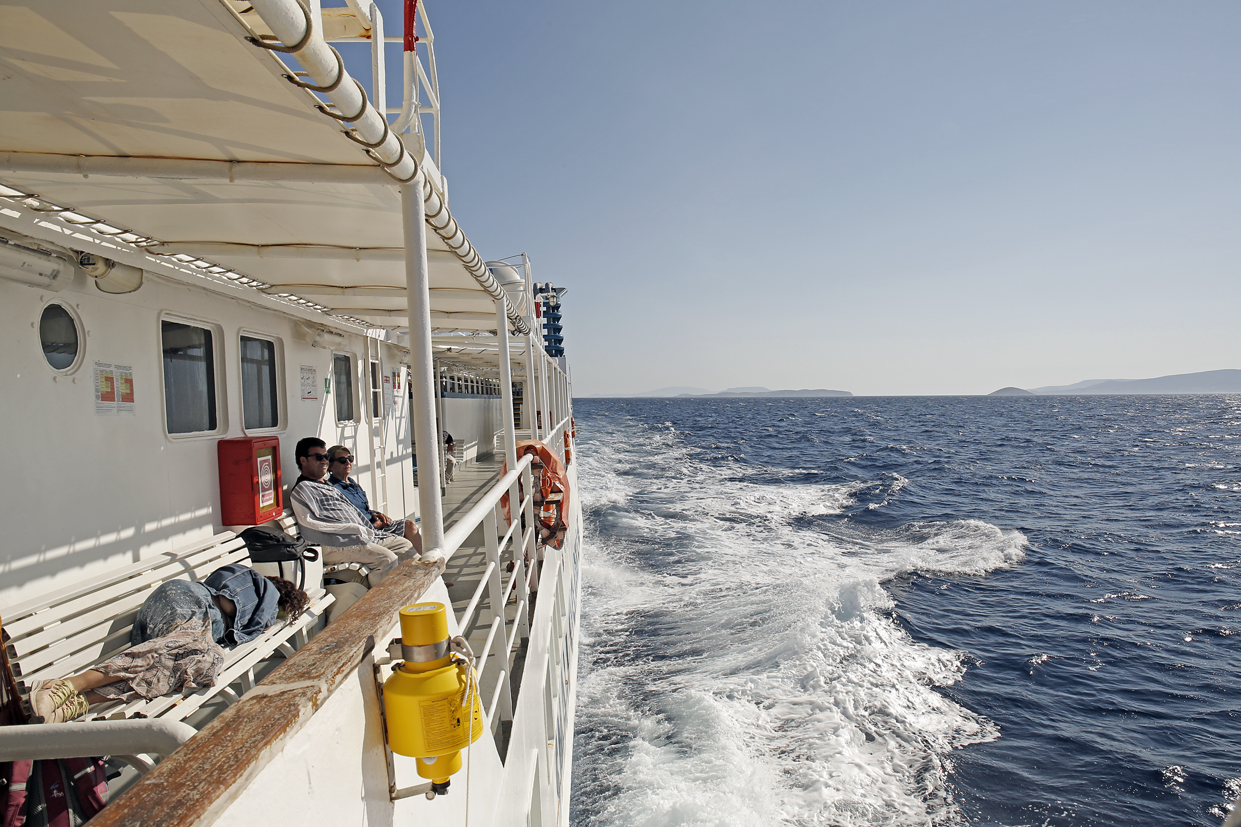 Πλέοντας πια σε πορεία προς το Νότο, το αιγαιοπελαγίτικο αεράκι δροσίζει το σώμα αλλά και τη διάθεση στο ολόλευκο κατάστρωμα το οποίο χρωματίζεται από τα ρούχα και τις τσάντες των επιβατών. Σαν ένα υπαίθριο σαλονάκι, οι επιβάτες μοιράζονται τους πάγκους, δίπλα-δίπλα, ξεκινώντας σε πολύ λίγο χρόνο να γνωρίζονται μεταξύ τους, ανταλλάσσοντας τη θετική τους διάθεση σε αυτήν την καλοκαιρινή μίνι «κρουαζιέρα». Αν είσαι τουρίστας, βέβαια. Γιατί η βασική χρησιμότητα του συγκεκριμένου πλοίου, ήταν, από την αρχή της ιστορίας του και παραμένει, πιο σοβαρή και απολύτως αναγκαία.