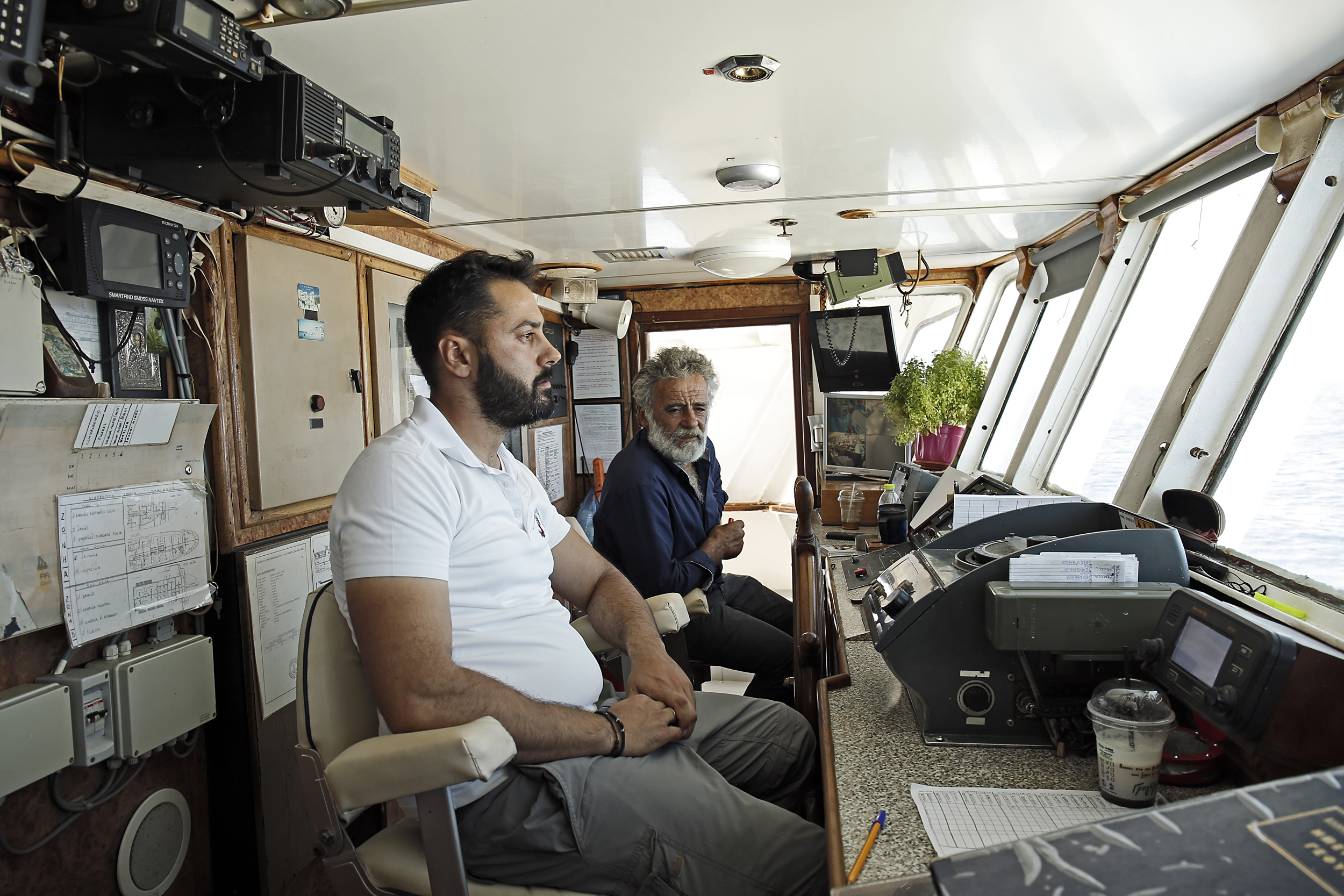 Εδώ κουνάει. Από λίγο, στις καλές θάλασσες, με μόνο αρνητικό το λίγο σπρέι αλατόνερου σε κάθε σκαμπανέβασμα της πλώρης, μέχρι πολύ, σε μια πρωτόγνωρη κατάσταση για άνθρωπο άπειρο σε τέτοιου είδους ταξίδια. Μιλώντας με τον Δημήτρη Σκοπελίτη, τον ιδιοκτήτη και καπετάνιο, εγγονό του ιδρυτή και γιο του Γιάννη Σκοπελίτη, μου εξηγεί, καθώς κρατιέμαι και με τα δύο χέρια από σταθερά σημεία στη γέφυρα, πως τα δρομολόγια πραγματοποιούνται πάση θυσία παρά τις αντίξοες συνθήκες, ιδιαίτερα το χειμώνα. Και αν υπάρξει κάποιες λίγες φορές απαγορευτικό απόπλου, αυτό δεν κρατά περισσότερο από 2-3 ημέρες στη χειρότερη περίπτωση.