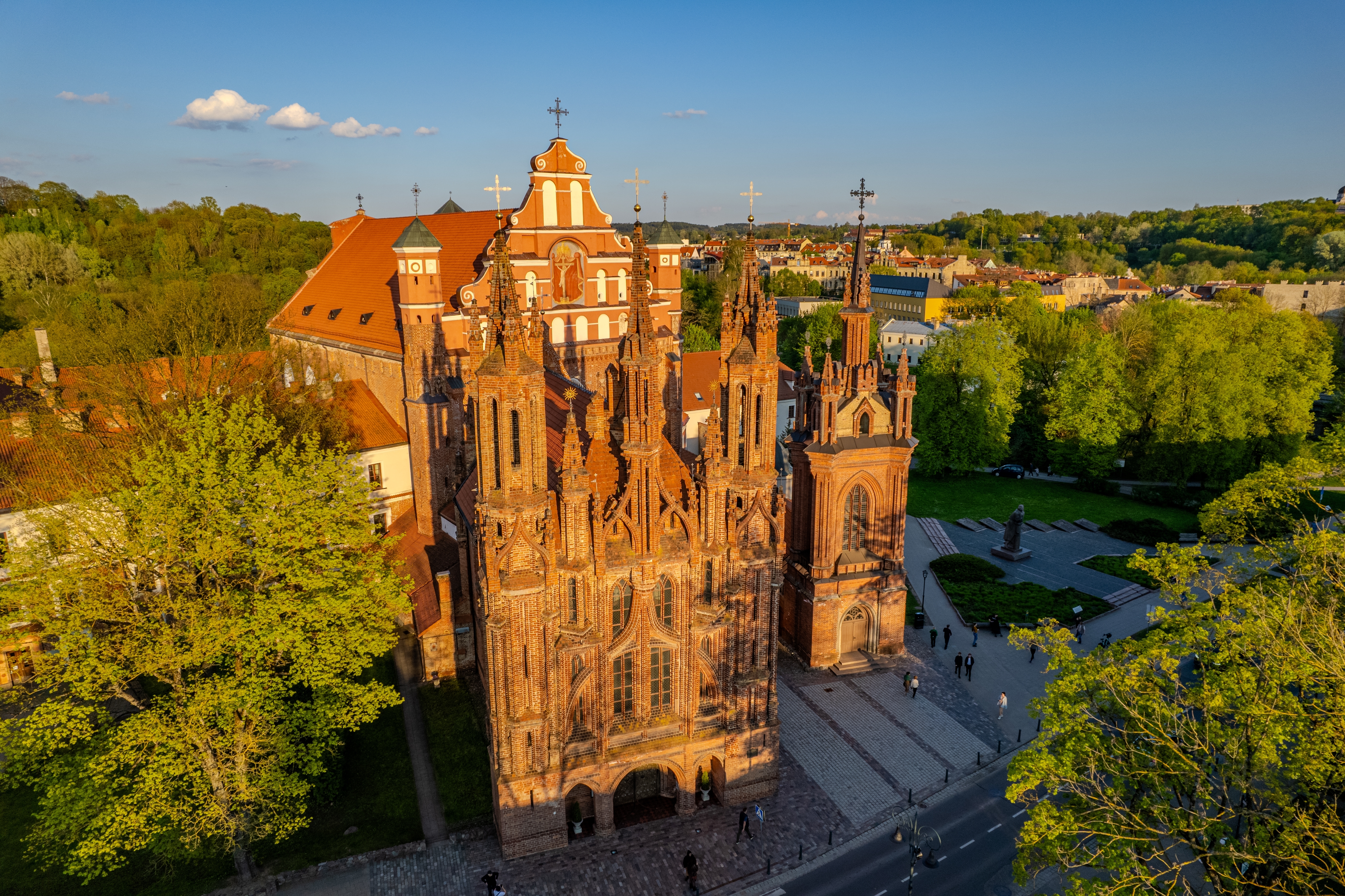 Δεν είναι υπερβολή, άλλωστε, να πει κανείς ότι αν ανέβει κάποιος στον λόφο του Κάστρου Gediminas και κοιτάξει από εκεί την πόλη θα αντικρίσει αμέτρητους σταυρούς να ξεπροβάλλουν από τις στέγες των εκκλησιών, των καμπαναριών και των τρούλων. Θα δείτε δεκάδες μικρές ή μεγάλες εκκλησίες στο ιστορικό κέντρο του Βίλνιους, η καθεμία με τον δικό της χαρακτήρα και τα δικά της ιδιαίτερα χαρακτηριστικά που είναι από μονά τους λόγος για να επισκεφθείτε και το εσωτερικό τους. Κάντε μία στάση στον πραγματικά εντυπωσιακό Ιερό Ναό Πέτρου και Παύλου όπου θα δείτε εκπληκτικά δείγματα μπαρόκ αρχιτεκτονικής, από το τέμπλο μέχρι τα μαρμάρινα ιταλικά γλυπτά του 17ου και του 18ου αιώνα, αλλά και στην πολυφωτογραφημένη εκκλησία της Αγίας Άννας, η οποία αποτελεί, έτσι κι αλλιώς, ένα από τα διασημότερα αξιοθέατα της Λιθουανίας. Μοναδικό δείγμα γοτθικής αρχιτεκτονικής εντυπωσιάζει με την ομορφιά και την πληθωρικότητα της από την πρώτη κιόλας ματιά. Μάλιστα σύμφωνα με την ιστορία, ο καθηλωτικός αυτός ναός μάγεψε τόσο πολύ τον Ναπολέοντα Βοναπάρτη, ο οποίος μόλις τον αντίκρισε, δήλωσε ότι αν μπορούσε να τον ξερίζωνε ολόκληρο και θα τον μετέφερε στο Παρίσι.