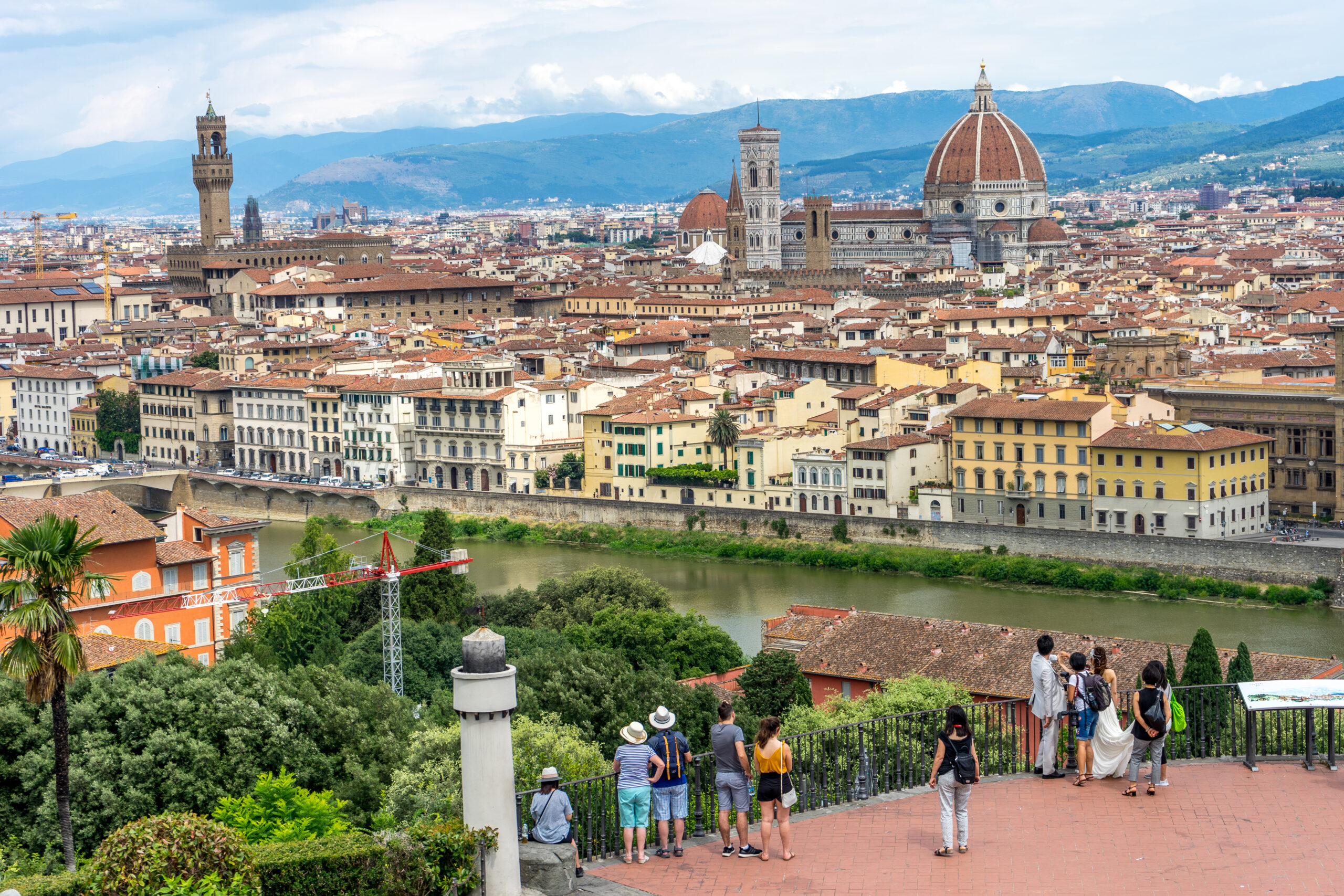 Είναι πραγματικά συναρπαστική και, το καλύτερο, εντελώς δωρεάν. Η ωραιότερη θέα στη Φλωρεντία δεν είναι ούτε από τον τρούλο του Duomo di Santa Maria del Fiore, ούτε από την Ponte Vecchio, ούτε από τον πύργο του Palazzo Vecchio, ούτε από τους κήπους Boboli. Για να την απολαύσετε, δεν χρειάζεται εισιτήριο. Tο μόνο που έχετε να κάνετε είναι να περπατήσετε μέχρι τη μαγευτική Piazzale Michelangelo, το σημείο της πόλης που λέγεται πως αγαπούσε ιδιαίτερα ο Μιχαήλ Άγγελος και όπου κατέφευγε όταν αναζητούσε έμπνευση. Βρίσκεται στη νότια πλευρά του ποταμού Άρνο, και θα χρειαστεί να ανηφορίσετε έναν στριφογυριστό δρόμο για να φτάσετε στην ανοιχτωσιά που προσφέρει μια πανοραμική θέα που κόβει την ανάσα.