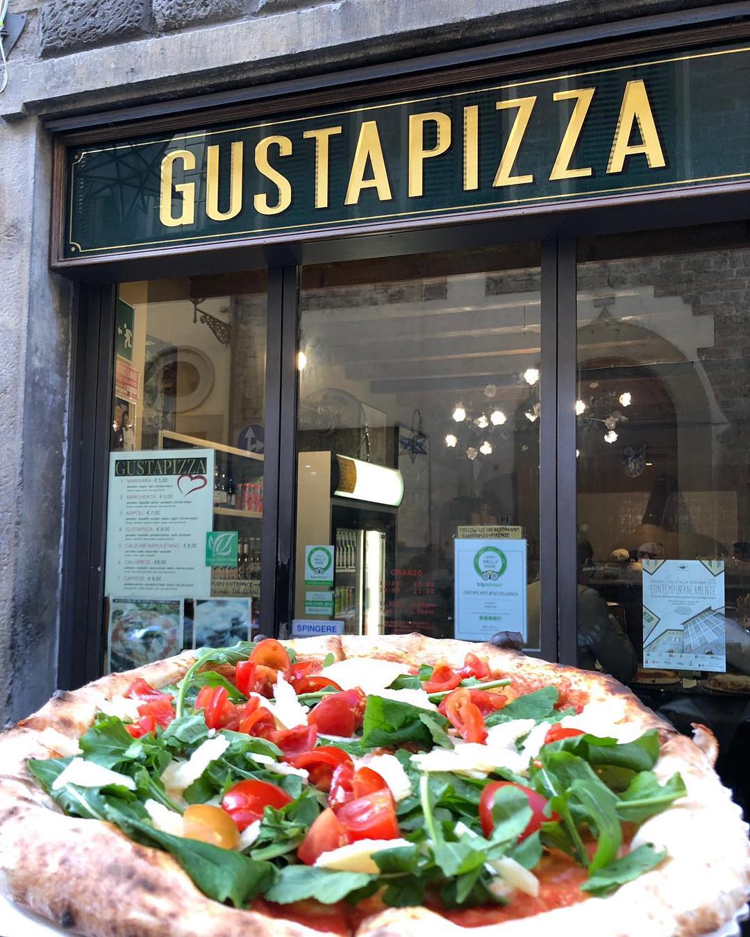 Στην όμορφη γειτονιά του Santo Spirito, στη νότια πλευρά του ποταμού Άρνο και σε μικρή απόσταση από το Palazzo Pitti, θα δοκιμάσετε την πίτσα που πολλοί θεωρούν «την καλύτερη σε ολόκληρη τη Φλωρεντία». Θα τη βρείτε στη Gustapizza, σε ένα μικρό μαγαζί με λίγα τραπεζάκια, που προσφέρει το εξαιρετικό του φαγητό και σε πακέτο. Ο κατάλογος είναι μικρός, αλλά οι λίγες επιλογές στη Gustapizza είναι η μία καλύτερη από την άλλη. Υπολογίστε πως για μια πίτσα Margarita θα πληρώσετε μόλις 6 ευρώ, ενώ για ένα πεντανόστιμο Calzone μόλις 10 ευρώ.