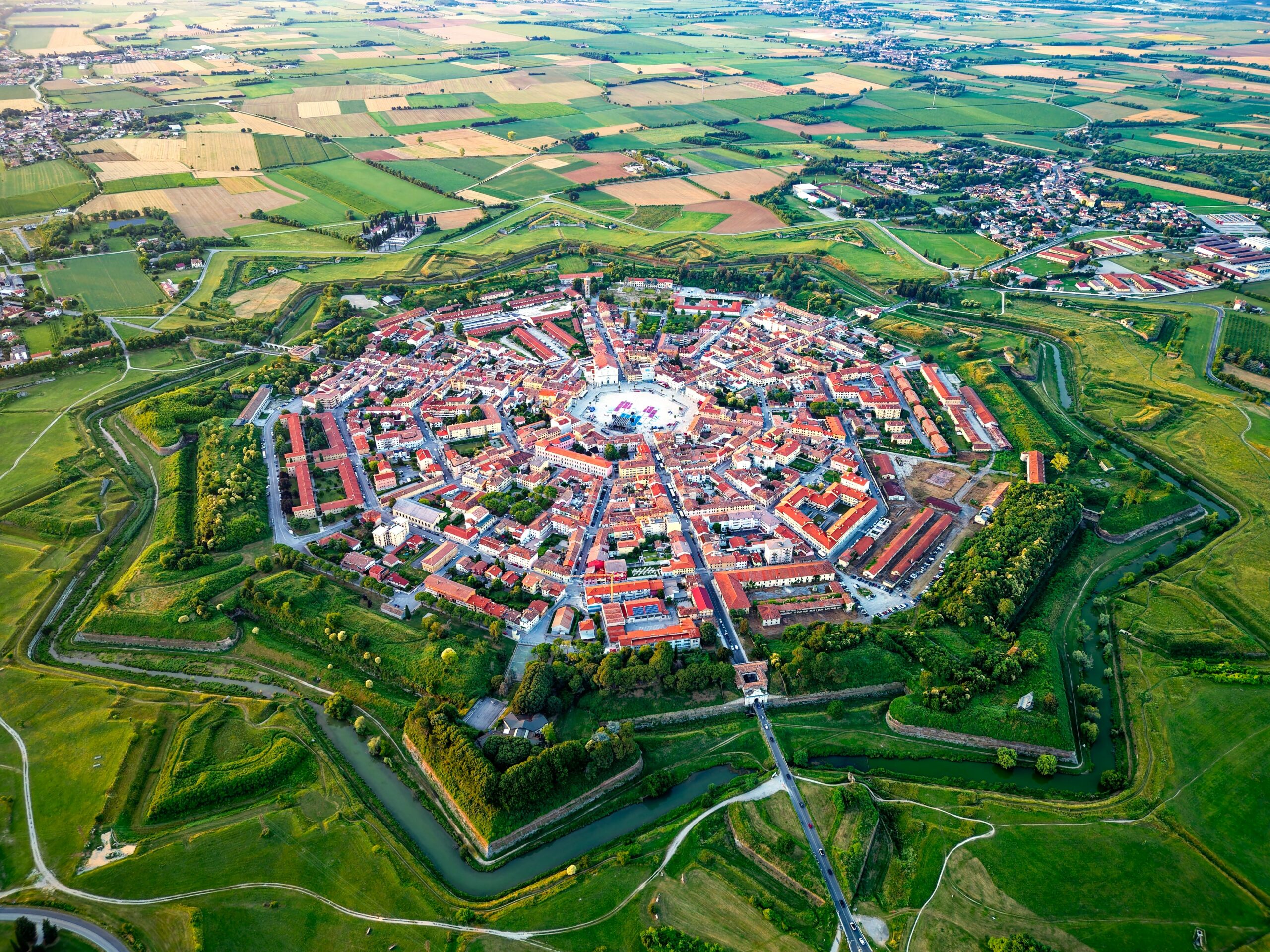 Μεταξύ Ούντινε και Ακυληίας βρίσκεται και μια πραγματικά πολύ εντυπωσιακή πόλη, την οποία δεν πρέπει να χάσετε: η Palmanova. Η Palmanova είναι μια πόλη-φρούριο σε σχήμα εννιάκτινου αστεριού, που περικλείει τέσσερις ομόκεντρους κύκλους, οι οποίοι αποτελούν τις γειτονιές της. Ένας πραγματικά μοναδικός τόπος και ένα από τα σημαντικότερα δείγματα στρατιωτικής αρχιτεκτονικής της νεότερης Ευρώπης, που σχεδιάστηκε και χτίστηκε από τη Δημοκρατία της Βενετίας.