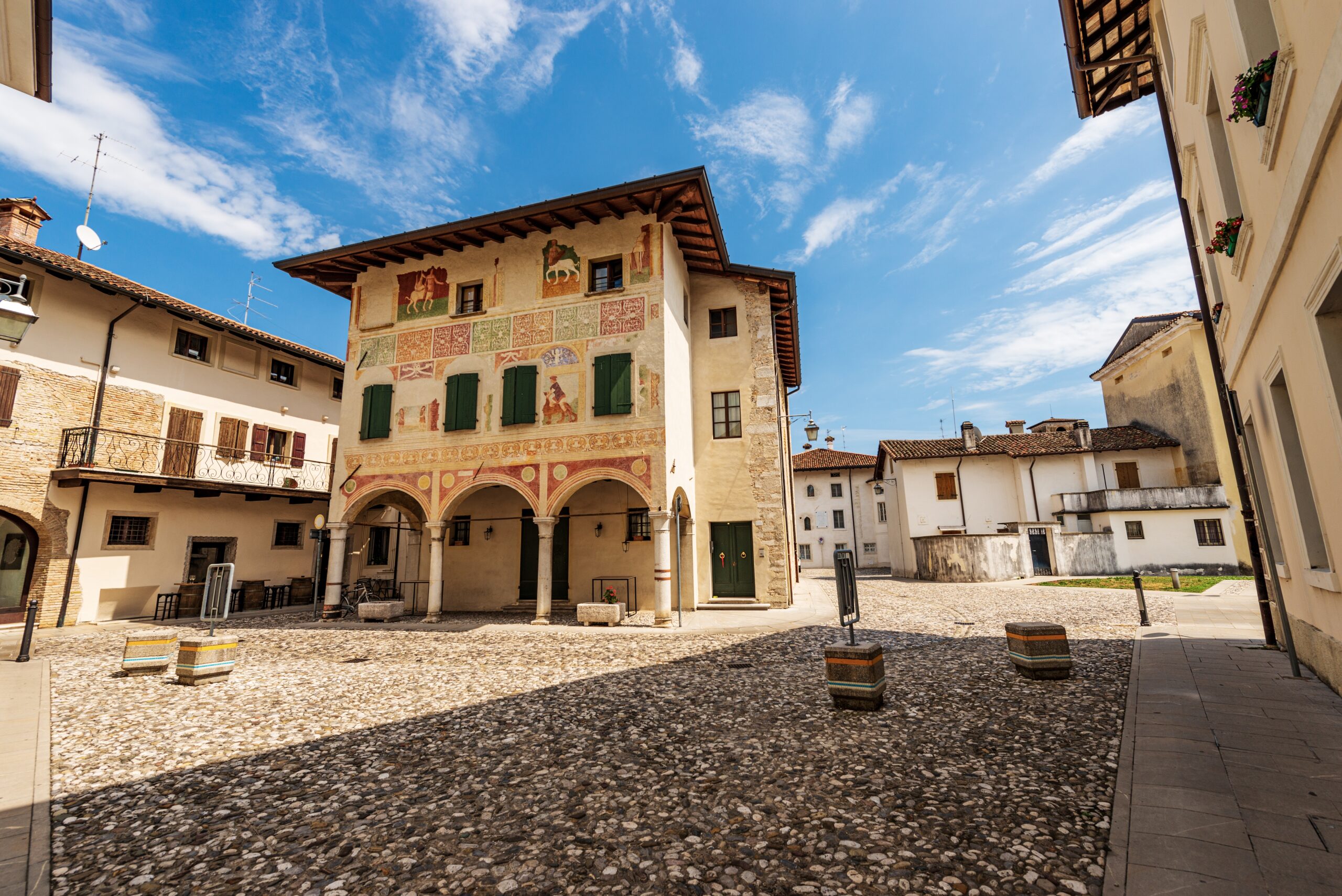 Στα δυτικά του Ούντινε, η επόμενη στάση μπορεί να είναι η πόλη Spilimbergo, κοντά στον ποταμό Tagliamento, η οποία φιλοξενεί τη διάσημη «Σχολή Μωσαϊκού» και είναι ιδιαίτερα γνωστή ως «η πόλη του Μωσαϊκού». Η σχολή ιδρύθηκε επίσημα το 1922 και έχει κληρονομήσει τη μεγάλη παράδοση του ψηφιδωτού της Ρώμης, του Βυζαντίου, της Βενετίας και της Ακυληίας. Μια πόλη με στενά, που κρύβουν καθεδρικούς ναούς με ιστορία, κάστρα και παλάτια, τα οποία μπορείτε εύκολα να ανακαλύψετε με μικρούς περιπάτους.