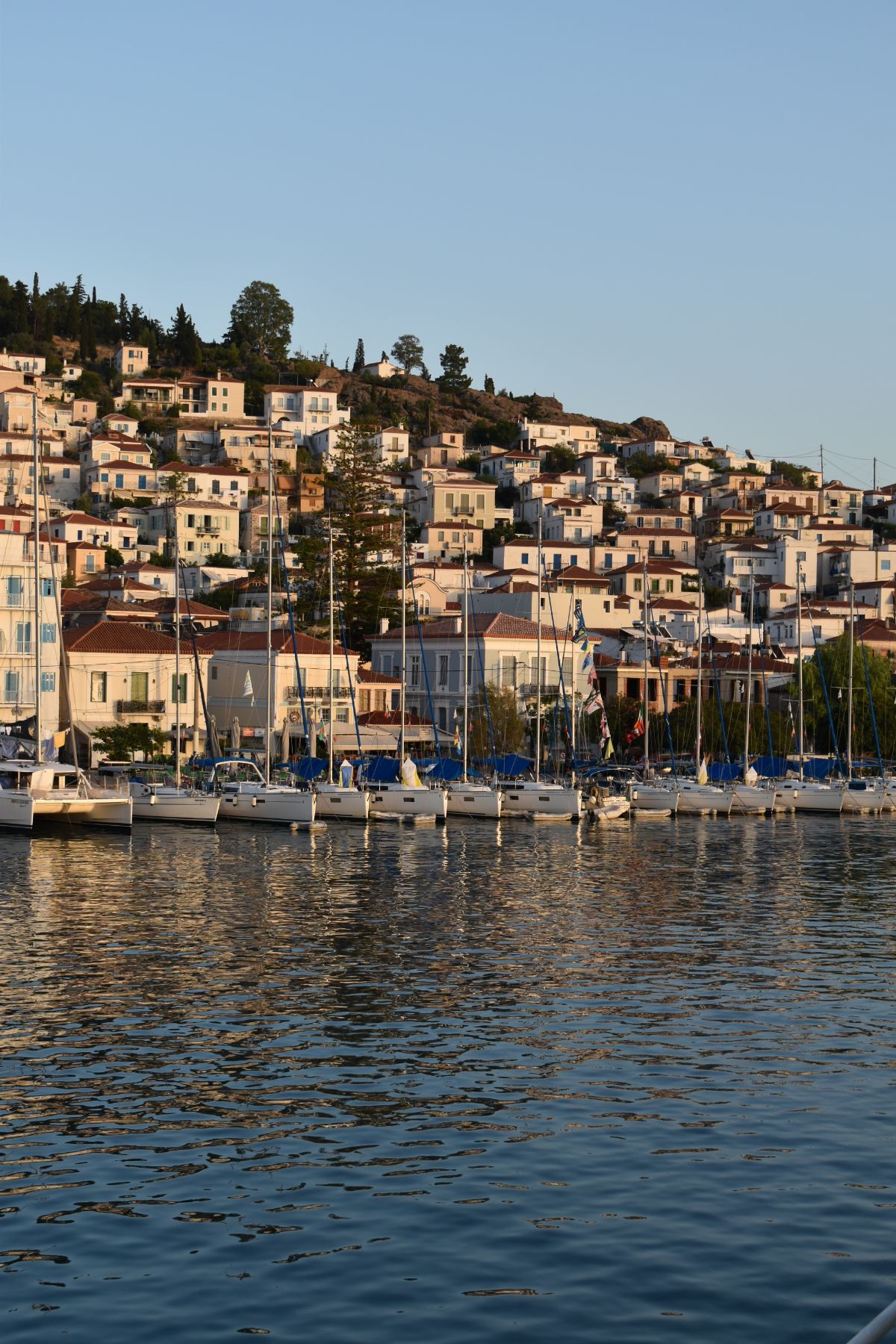 Μην αρκεστείτε στην ομολογουμένως μαγευτική θέα του από το λιμάνι και τον παραθαλάσσιο δρόμο, επιλέξτε μία από τις απότομες κλίμακες κι ανηφορίστε ανάμεσα σε παραδοσιακά νησιώτικα και νεοκλασικά σπίτια, που συχνά μοιάζουν κολλημένα στους βράχους. Η θέα που ξεπροβάλλει ανάμεσα στις στέγες τους θα σας κάνει πολλές φορές να κοντοσταθείτε για φωτογραφίες, και το αποκορύφωμα βέβαια είναι ο βράχος του ρολογιού, με θέα 360 μοιρών που απλώνεται πέρα από τις άγριες φραγκοσυκιές και τα ψηλά πεύκα, σε όλο το νησί, τον Γαλατά και τις ακτές της Πελοποννήσου, τα ήρεμα νερά με τα αραγμένα ιστιοπλοϊκά και τους γραφικούς κολπίσκους. Ξεκουραστείτε στα παγκάκια γύρω από το ρολόι και πριν κατηφορίσετε, ρίξτε μια ματιά στη βάση του πύργου, για να παρατηρήσετε μέσα από τα ανοιχτά παράθυρα τον αυθεντικό, μεγάλης ακρίβειας μηχανισμό του ρολογιού, που κατασκευάστηκε στην Αμερική το 1915 και που τώρα εκτίθεται σε γυάλινη προθήκη.