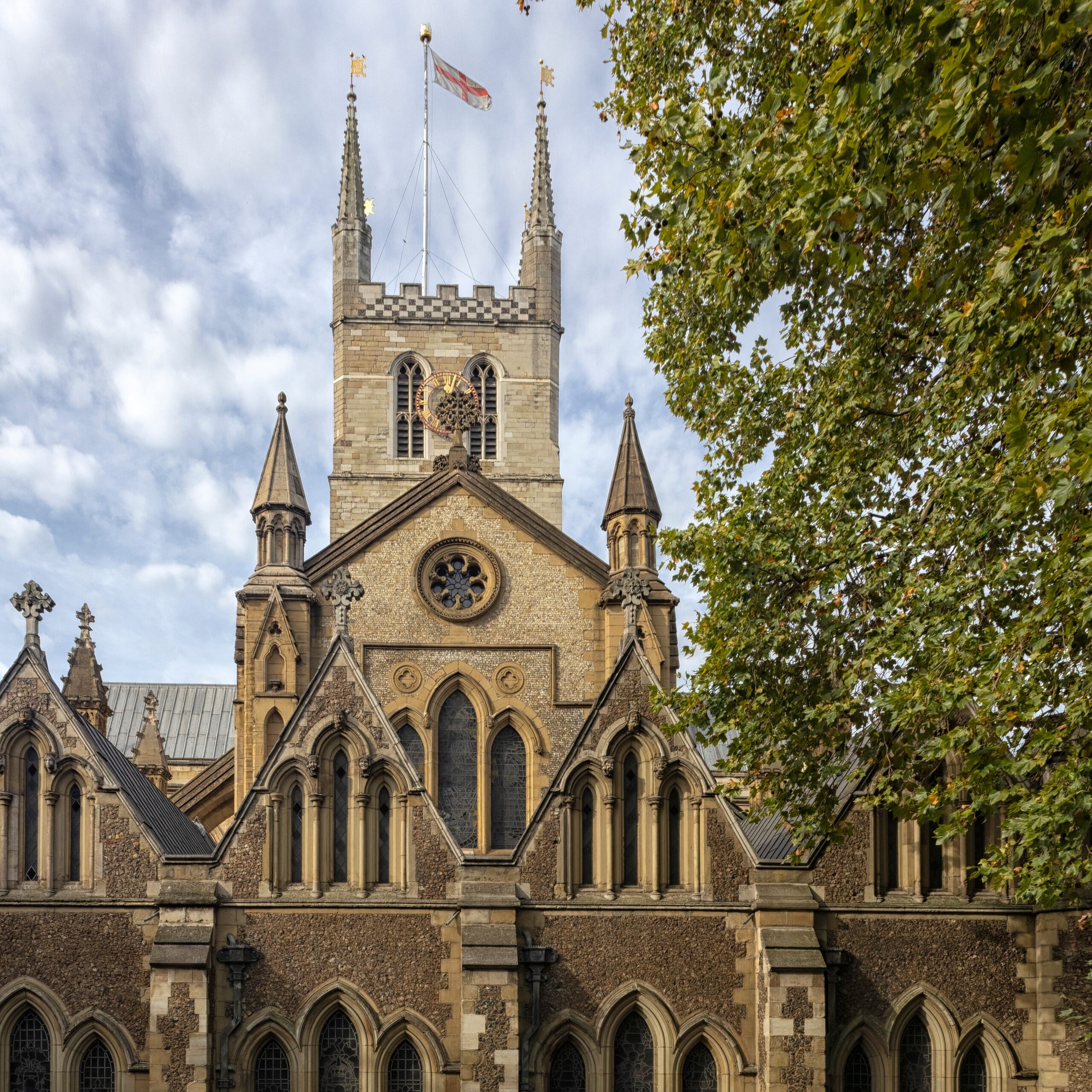 Ο Καθεδρικός του Σάδαρκ που υψώνεται πάνω από το σιδηροδρομικό κόμβο αποτελεί ένα ακόμη δωρεάν αξιοθέατο με ενδιαφέροντα μνημεία, ενώ δίπλα του απλώνεται μια από τις πιο ζωντανές και σίγουρα η πιο γκουρμέ αγορά της πόλης, η περίφημη Borough Market. Οι πάγκοι της ξεχειλίζουν ολόφρεσκες λιχουδιές και τα καλύτερα βρετανικά προϊόντα, καθιστώντας την τον απόλυτο προορισμό για τους απανταχού καλοφαγάδες. Στρείδια με σαμπάνια, βρετανικές και ισπανικές κρεατόπιτες, τυριά και αρνίσια burgers, τα κορυφαία brownies και ντόνατς του Bread Ahead για να συνοδεύσετε τον καφέ του Monmouth Company που θεωρείται ο καλύτερος της πόλης, τεράστια hot dogs και γιγάντια τηγάνια με παέγια ή noodles θα σας χορτάσουν οικονομικά, πριν συνεχίσετε την παραποτάμια βόλτα σας ως το ανακατασκευασμένο ελισαβετιανό θέατρο Shakespeare’s Globe, το λεγόμενο «Στρογγυλό Ο» με τη χαρακτηριστική αχυρένια σκεπή.