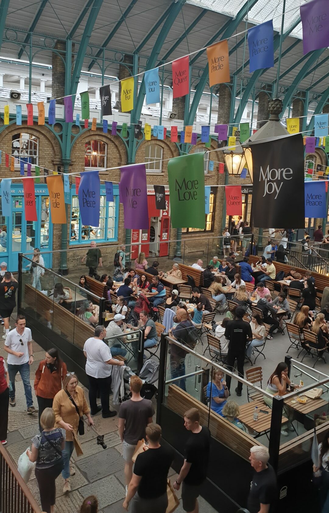Αφού δείτε τα δύο επίπεδα με τα καταστήματα, μπορείτε να δοκιμάσετε τις κορεάτικες γεύσεις που για τις επόμενες δύο εβδομάδες θα παρουσιάζουν 3 Λονδρέζοι σεφ στη Stables Gallery, να τσιμπήσετε κάτι στα καφέ-μπαρ και τα εστιατόρια που πλαισιώνουν την αγορά ή να επιλέξετε το καφέ της παρακείμενης Royal Opera House για να χαζεύετε τη δράση από ψηλά. Περάστε και από το ναό St Paul’s, τη λεγόμενη «εκκλησία των ηθοποιών», με τις άφθονες αναθηματικές πλάκες που τιμούν σπουδαίους Βρετανούς εκπροσώπους της 7ης τέχνης, όπως οι Charles Chaplin και Vivien Leigh. Ιδανική συνέχεια για τη βόλτα σας, η περιοχή βόρεια της αγοράς επιφυλάσσει ακόμη περισσότερα μοναδικά καταστήματα, συχνά με προσόψεις σε έντονα χρώματα, γκαλερί τέχνης, εστιατόρια και καφέ. Η μικροσκοπική αυλή Neal’s Yard είναι μια αποκάλυψη, θυμίζει πλατεία μικρού χωριού και προσφέρεται για μια ανάπαυλα από τα ψώνια, διαφορετικά συνεχίστε προς τους επτά ακτινωτούς δρόμους που δίνουν στην περιοχή Seven Dials το όνομά της. Ανάμεσα σε παλιά και νέα στέκια, θεατρικές σκηνές και μικρά εμπορικά κέντρα, μην παραλείψετε μια στάση στο καθιερωμένο μεταξύ των καλύτερων παγωτατζίδικων του Λονδίνου Udderlicious, για να δοκιμάσετε μεταξύ άλλων τις νέες φθινοπωρινές γεύσεις.