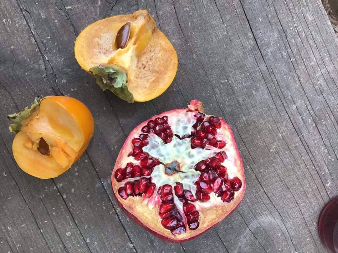 Εκτός από τις συμβατικές καλλιέργειες, ο Χρήστος έχει δημιουργήσει ένα βιολογικό αγρόκτημα, δοκιμάζοντας νέες καλλιέργειες στη Δραμινή γη με το πρόσφορο έδαφος, αλλά και τις επίφοβες παγωνιές. Στο κτήμα «Το Ρόδινο», βρίσκει κανείς Ροδιές (Punica granatum), με το «κόκκινο χαβιάρι» τους που αποτελεί σύμβολο ευζωίας, αφθονίας και γονιμότητας. Όπως, επίσης, 3 από τα περίπου 200 είδη εξωτικών λωτών (Diospyrus Kaki), τα μήλα της ανατολής.