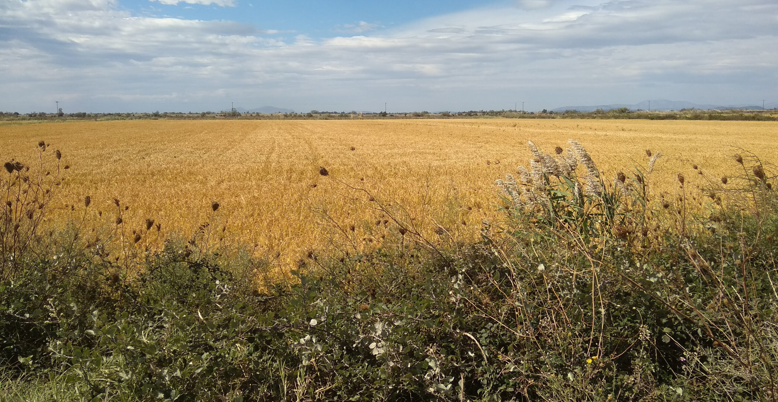 Στη συνέχεια ακολουθεί η μηχανοκίνητη καταπολέμηση των ζιζανίων, όπως η μουχρίτσα, η αγριάδα, το μοσχοκίπερι, σε αντίθεση με τη συμβατική καλλιέργεια που συχνά χρησιμοποιούνται φυτοφάρμακα. Μετά το μηχανικό «ισοπέδωμα» και τις 40 ημέρες από τη φύτεψη, οι «εργάτες γης» μπαίνουν στο χωράφι και το ανθρώπινο χέρι φροντίζει να απομακρύνει όσα αγριόχορτα επιμένουν. Στα μέσα Μαΐου σπέρνεται το ρύζι στο χωράφι ή αλλιώς «τηγάνι», όπως ονομάζεται. Δημιουργούνται αναχώματα ή «καβάλια» για να συγκρατούν το νερό και εκεί καλλιεργούνται ποικιλίες με κύκλο 120, 150 και παλιότερα 90 ημερών. Μεγαλύτερος κύκλος σημαίνει μεγαλύτερες αποδόσεις, σημαντικό για τη βιωσιμότητα του αγρότη. Εδώ, βέβαια, έγκειται και η μεγάλη διαφορά, καθώς ο συμβατικός αγρότης θα έχει παραγωγή 1200 κιλών, ενώ η βιολογική καλλιέργεια θα αποδώσει περίπου 750 κιλά ανά στρέμμα και ως εξισορρόπηση θα ανεβάσει την τελική τιμή για τον καταναλωτή.
