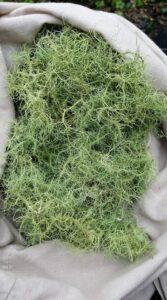 Η Ελένη, ανάμεσα στα εκατοντάδες είδη βοτάνων, ξεχωρίζει την ούσνια (Usnea sp.), ένα είδος λειχήνας. Αποτελεί, όπως μας λέει, ένα από το πιο ισχυρά αντιμικροβιακά βότανα που έχουμε στην Ελλάδα. Οι λειχήνες αποτελούν έναν ενιαίο οργανισμό, που είναι το αποτέλεσμα της συμβίωσης ενός μύκητα με ένα φύκος και ένα ή περισσότερα κυανοβακτήρια. Μπορούν και φωτοσυνθέτουν και έτσι, δεν απομυζούν το δέντρο, αλλά στηρίζονται απλά, επάνω σε αυτό. Οι λειχήνες μεγαλώνουν αργά γιατί όταν δεν υπάρχει αρκετή υγρασία στο περιβάλλον τους, πέφτουν σε μία κατάσταση ύπνωσης. Για να μην κινδυνεύσει ο πληθυσμός τους, συλλέγονται από σπασμένα κλαδιά που έχουν πέσει στο έδαφος, μετά από καταιγίδες.
