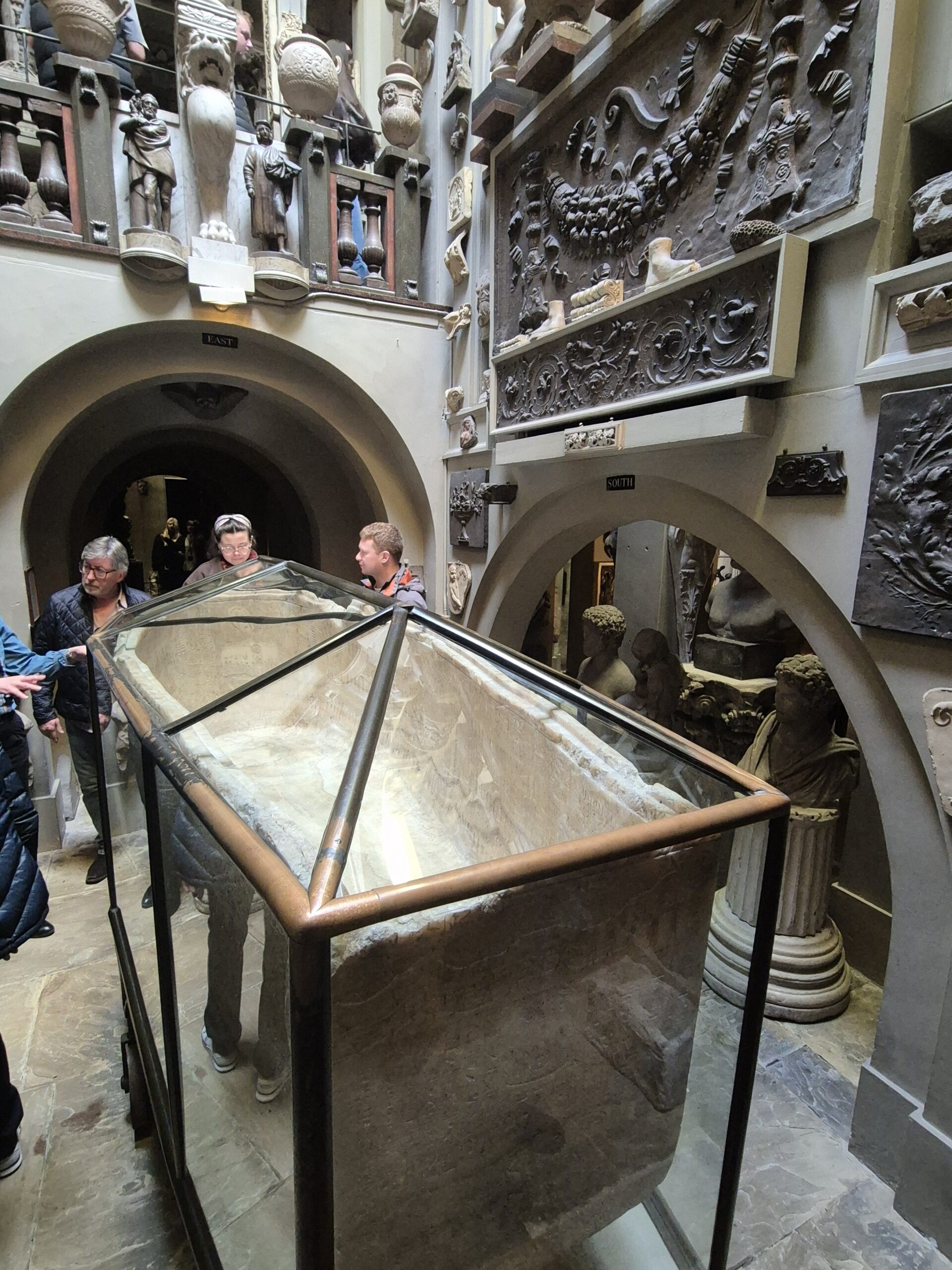 Ένας θολωτός φεγγίτης διαχέει το φως έως το κατώτερο επίπεδο, όπου τα βλέμματα συγκεντρώνει το «καμάρι» του Soane, η μήκους 2,85 μέτρων και ύψους 83 εκ. αιγυπτιακή σαρκοφάγος του Φαραώ Σέτι Α΄, λαξευμένη σε ασβεστόλιθο. Το θεαματικό μνημείο που στοίχισε στον Soane το υπέρογκο ποσό των 2.000 στερλινών, ανακαλύφθηκε το 1817, μεταφέρθηκε στην Αλεξάνδρεια το 1821, κι από το λιμάνι της ταξίδεψε για τη Βρετανία, όπου με την πάροδο του χρόνου η λευκή της απόχρωση απέκτησε πιο θερμό τόνο, και από τα πρασινογάλαζα ιερογλυφικά και τις φιγούρες που τη διακοσμούν, απέμειναν μόνο οι εγχάρακτες παραστάσεις. Παραμένει ωστόσο, ένα κορυφαίο ακόμη και για τα δεδομένα ολόκληρου του Λονδίνου έκθεμα, που αποτυπώνει πάνω από 3.000 χρόνια ιστορίας. Και σίγουρα, κάνει την Αίθουσα Sepulchral στην οποία στεγάζεται, έναν από τους λόγους για τους οποίους το Λεξικό Αρχιτεκτονικής της Οξφόρδης περιγράφει την Οικία-Μουσείο του Sir John Soane «Μία από τις πιο σύνθετες, περίπλοκες και ευρηματικές σειρές εσωτερικών χώρων που έχουν σχεδιαστεί ποτέ».