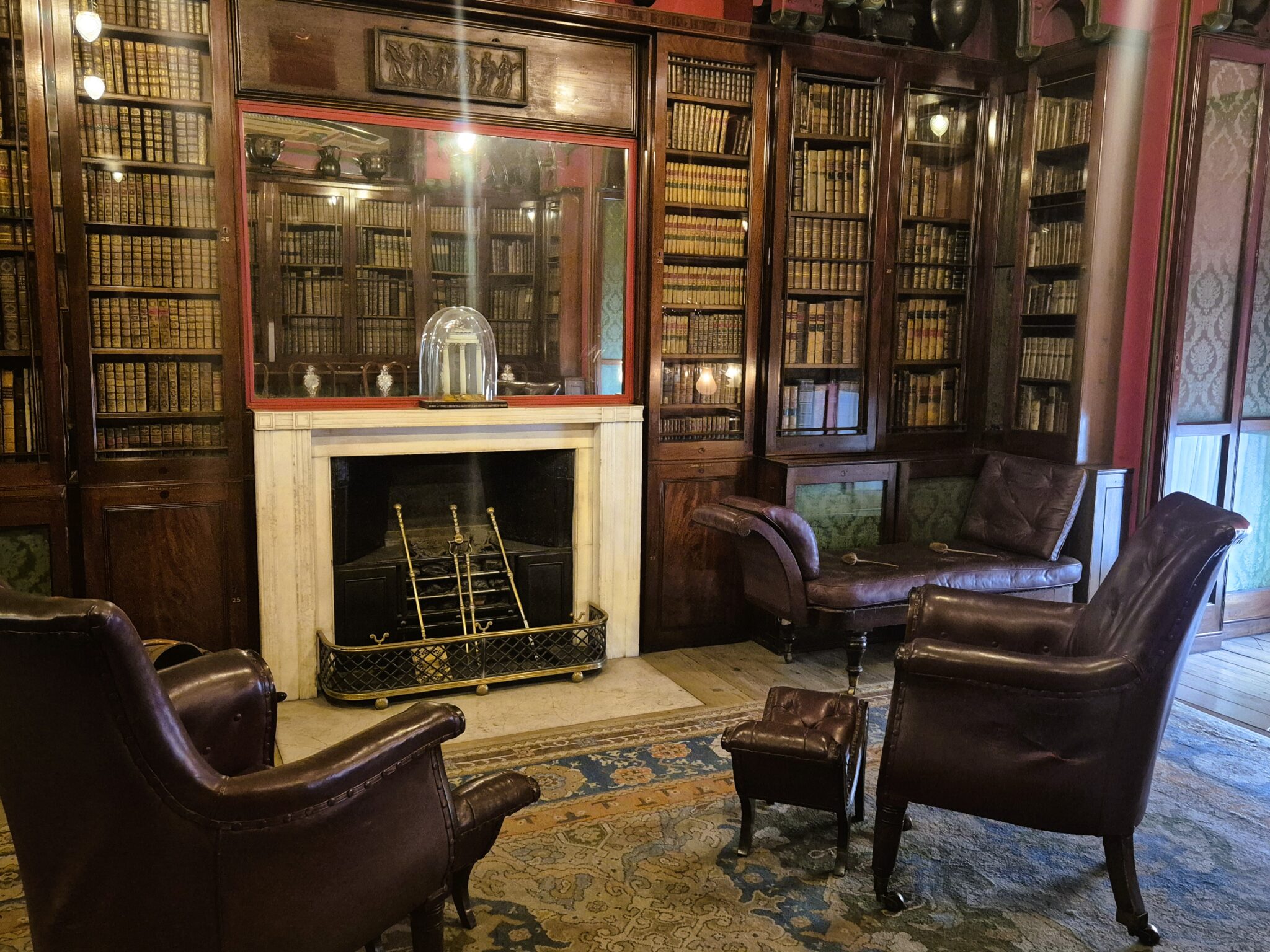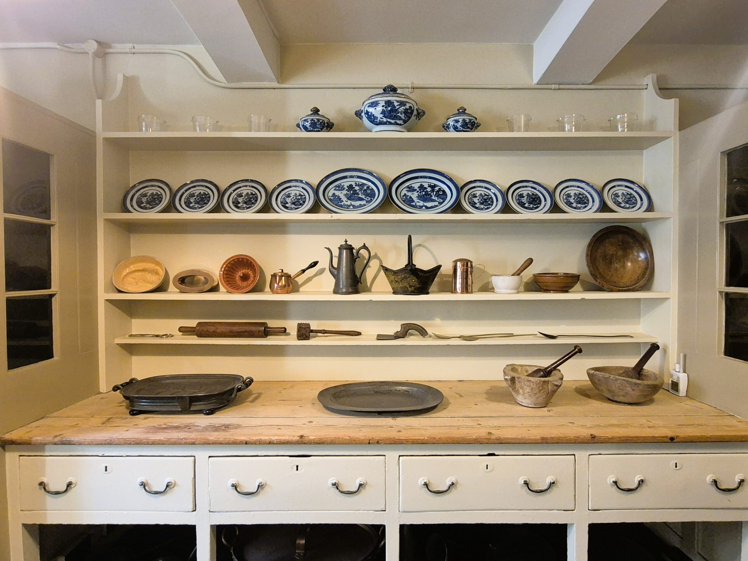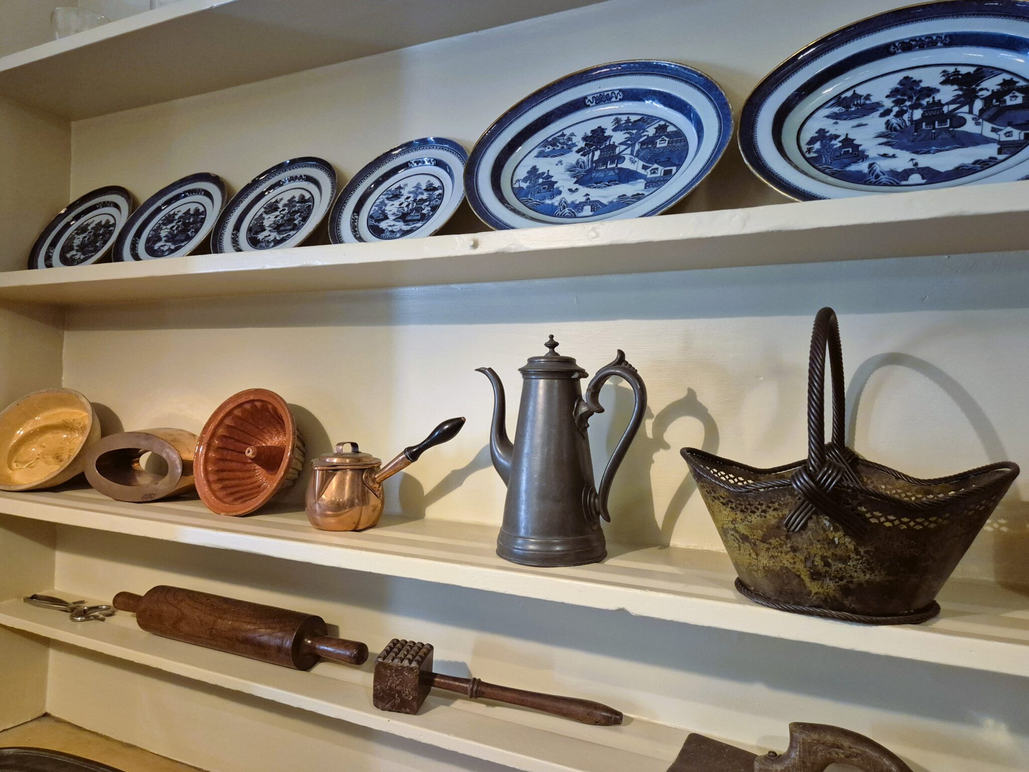 Από τα μέρη της ετερόκλιτης συλλογής πάντως που δεν πρέπει να χάσετε είναι η κρύπτη στο υπόγειο που σκόπιμα διαμορφώθηκε ώστε να μοιάζει με ρωμαϊκή κατακόμβη, ενώ αίσθηση έντονης θεατρικότητας αποπνέει η τραπεζαρία με τα πορφυρά καθίσματα γύρω από την ξύλινη ροτόντα, τα εντυπωσιακά κινέζικα βάζα, τις ανάγλυφες πέτρινες μορφές που θυμίζουν θεατρικές μάσκες και τους ιωνικούς κιονίσκους που συνυπάρχουν κάτω από την καλυμμένη με γυψανάγλυφα οροφή. Στον πολύ πιο λιτό χώρο της κουζίνας δεσπόζει η διπλή εστία μαγειρέματος και τα αυθεντικά πλακίδια που την πλαισιώνουν, τόσο καλοδιατηρημένη που νομίζεις ότι σε λίγο θα ετοιμαστεί το γεύμα που θα σερβιριστεί στα κυανόλευκα πιάτα που παρατάσσονται στα ράφια.