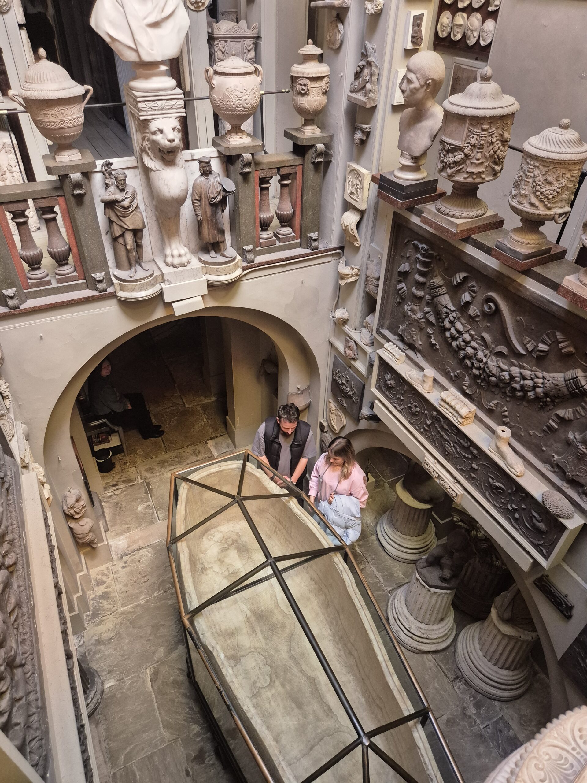 Fast forward στο σήμερα. Ένα συνηθισμένο μεσημέρι στο πολύβουο Holborn, την κεντρική περιοχή όπου χτυπά η καρδιά του νομικού Λονδίνου. Την ώρα που τουρίστες πηγαινοέρχονται ασταμάτητα και δικηγόροι διασχίζουν το πάρκο Lincoln’s Inn Fields, έναν από τους μεγαλύτερους δημόσιους χώρους πρασίνου της βρετανικής πρωτεύουσας-, μια μακριά ουρά αναμονής σχηματίζεται μπροστά στην παραπάνω διεύθυνση. Και όλοι την απαρτίζουν, ανυπομονούν να χαθούν στη μαγεία, να ταξιδέψουν δύο αιώνες πίσω, να θαμπωθούν από το όραμα ενός παθιασμένου συλλέκτη, να μείνουν άφωνοι μπροστά στα περίπου 20.000 σπάνια και πολύτιμα εκθέματα που ασφυκτικά γεμίζουν τα τρία ενωμένα αστικά σπίτια της Γεωργιανής εποχής, που αποτελούσαν την κατοικία του αρχιτέκτονα της Τράπεζας της Αγγλίας.