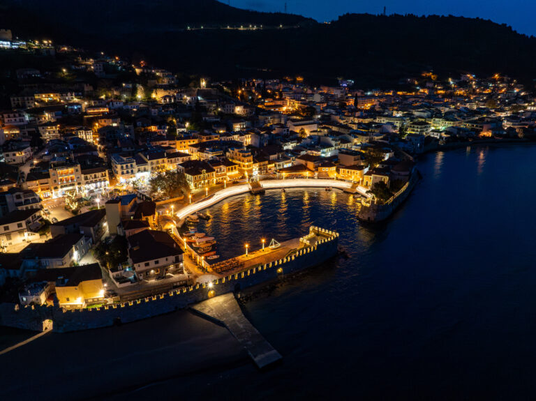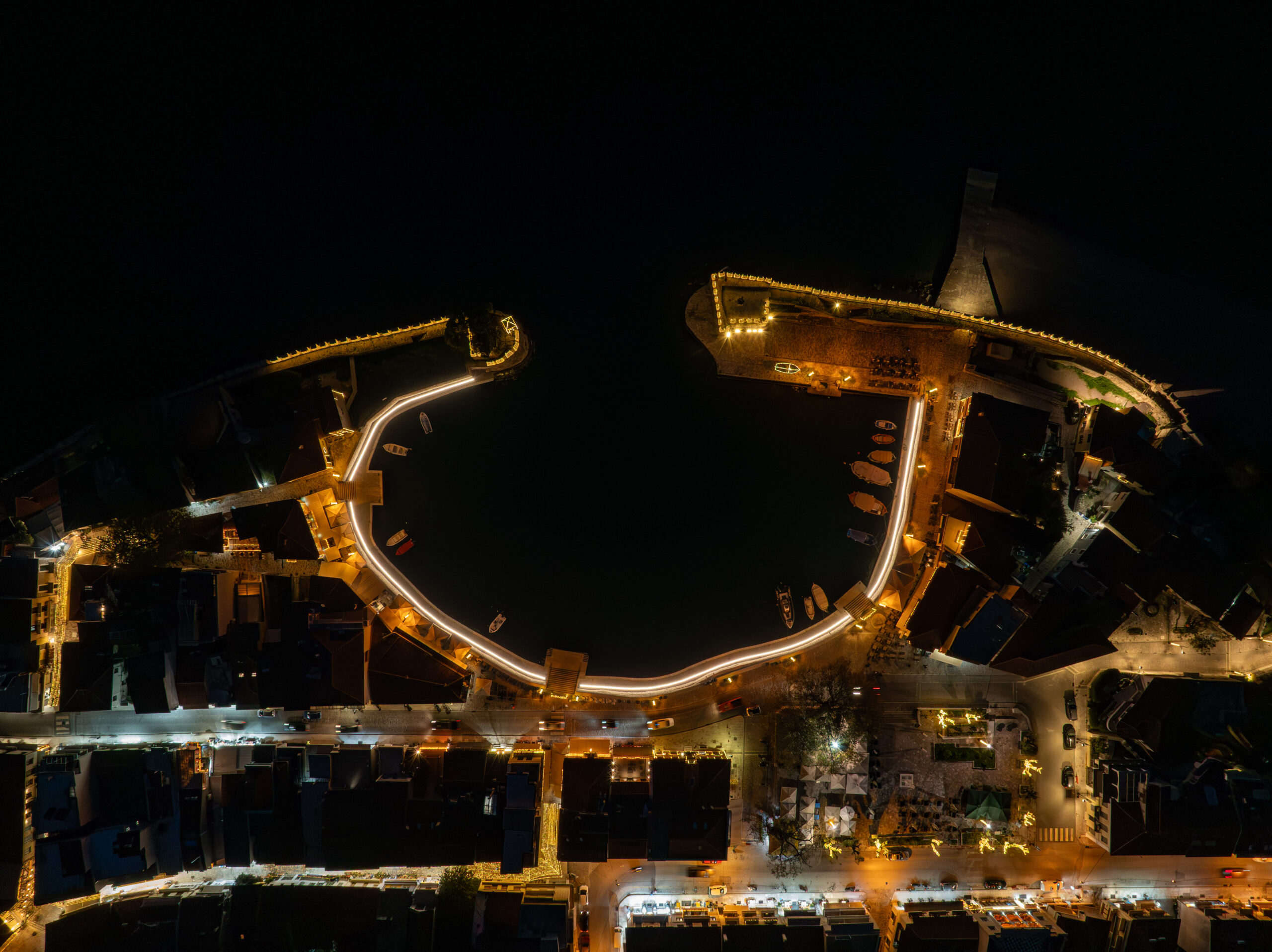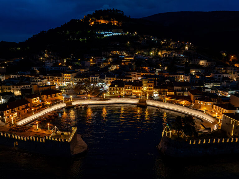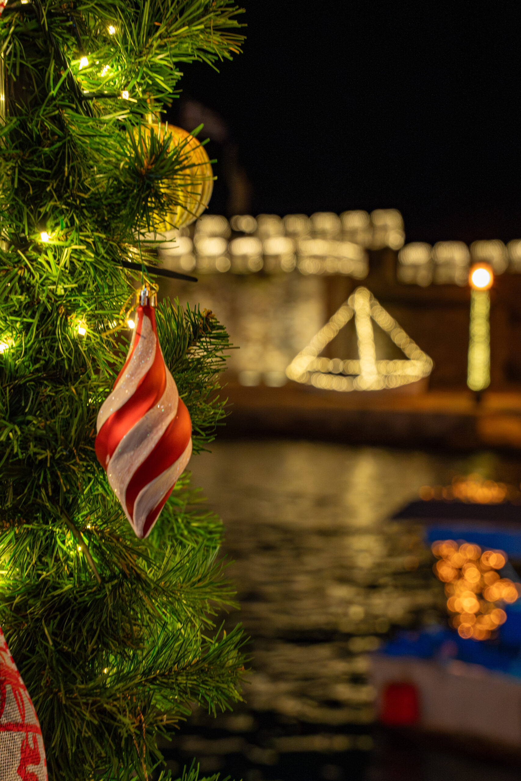 Το λιμάνι με το χαρακτηριστικό σχήμα πετάλου γίνεται το επίκεντρο του εορτασμού. Οι δύο βραχίονες του κάστρου που αγκαλιάζουν τη θάλασσα φωτίζονται, ενώ τα φώτα αντανακλώνται στα ήρεμα νερά του χειμώνα.