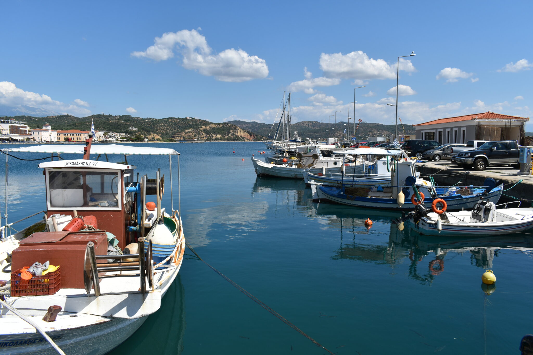 Πέρα από το σημείο αυτό και ακολουθώντας τα ανηφορικά δρομάκια, μπορείτε άφοβα να χαθείτε στο λαβύρινθο που απλώνεται σταδιακά απέναντι από την παραλιακή περατζάδα, σκαρφαλώνοντας το λόφο. Πρόκειται για ένα μπλεγμένο κουβάρι από στενά δρομάκια, ασπρισμένα σοκάκια, φιδωτά λιθόστρωτα μονοπάτια, απότομα στενά σκαλιά που δεν μπορείς να προβλέψεις πού θα σε οδηγήσουν. Κι ανάμεσά τους, φως και θάλασσα παίζουν κρυφτό πίσω από κεραμιδένιες στέγες και σιδερένια μπαλκόνια. Σαφής ρυμοτομία ή ενιαίο αρχιτεκτονικό στυλ δεν υπάρχουν. Σπίτια χωριάτικα με πέτρα και ξύλινα παραθυρόφυλλα εναλλάσσονται με άλλα κάτασπρα με μπλε πόρτες που νομίζεις ότι κάποιος μετέφερε αυτούσια από τις Κυκλάδες στη Λακωνία. Κοινό τους στοιχείο, αυλές και μπαλκόνια βαρυφορτωμένα με πολύχρωμα λουλούδια και λεμονιές που μοσχοβολούν. Όσο περισσότερα από τα ετερόκλητα στοιχεία αυτού του παζλ ανακαλύπτεις, τόσο περισσότερο θες να το εξερευνήσεις. Ανάμεσα στα καλοδιατηρημένα σπίτια εξαιρετικό ενδιαφέρον παρουσιάζουν κι εκείνα που είναι αφημένα στο πέρασμα του χρόνου και στέκουν μισογκρεμισμένα. Όπως η ερειπωμένη νεοκλασική κατοικία των 9 διαμερισμάτων απέναντι από την εκκλησία του Αγίου Νικολάου, ένα καταπληκτικό δείγμα αστικής πολυώροφης αρχιτεκτονικής, χωρίς δυστυχώς ίχνος ζωής πλέον. Κάντε το γύρο για να βρεθείτε στο πίσω μέρος της στην οδό Λαρισσίου και να θαυμάσετε την πρωτότυπη ιδέα των ξεχωριστών διπλανών εισόδων κάθε διαμερίσματος. Από το ύψος αυτό θα χαρείτε και την υπέροχη θέα προς το Μαραθονήσι και το φάρο που ξεπροβάλλει στην άκρη του.