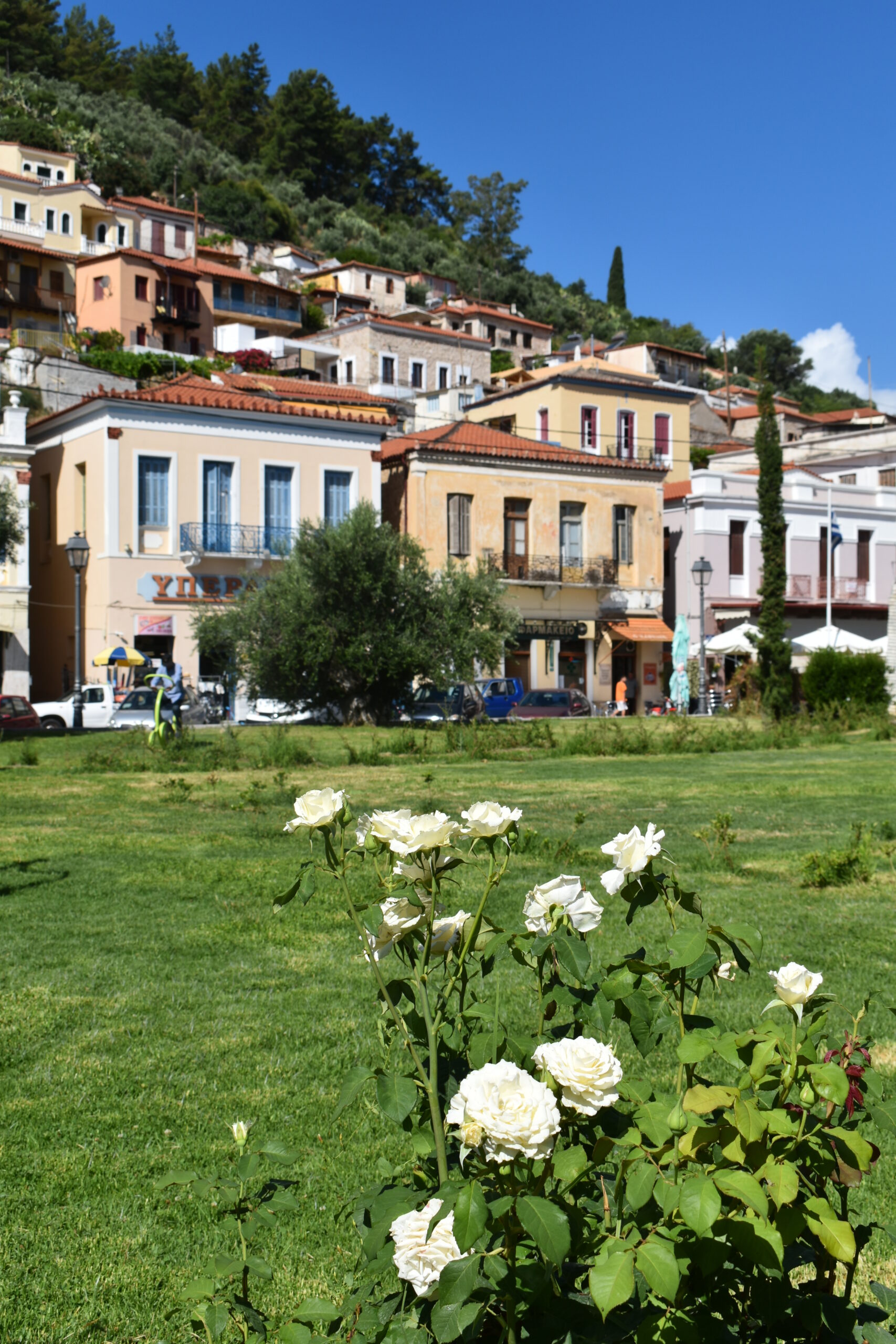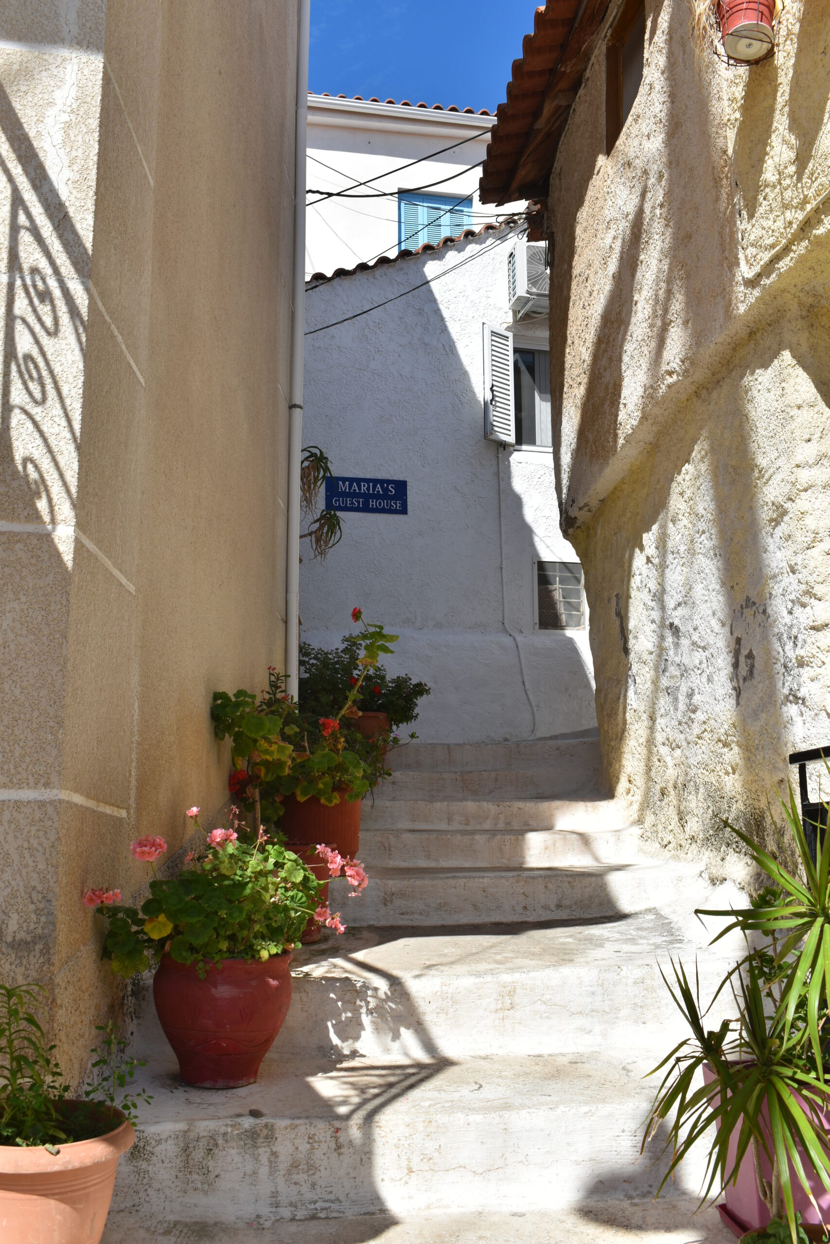 Πέρα από το σημείο αυτό και ακολουθώντας τα ανηφορικά δρομάκια, μπορείτε άφοβα να χαθείτε στο λαβύρινθο που απλώνεται σταδιακά απέναντι από την παραλιακή περατζάδα, σκαρφαλώνοντας το λόφο. Πρόκειται για ένα μπλεγμένο κουβάρι από στενά δρομάκια, ασπρισμένα σοκάκια, φιδωτά λιθόστρωτα μονοπάτια, απότομα στενά σκαλιά που δεν μπορείς να προβλέψεις πού θα σε οδηγήσουν. Κι ανάμεσά τους, φως και θάλασσα παίζουν κρυφτό πίσω από κεραμιδένιες στέγες και σιδερένια μπαλκόνια. Σαφής ρυμοτομία ή ενιαίο αρχιτεκτονικό στυλ δεν υπάρχουν. Σπίτια χωριάτικα με πέτρα και ξύλινα παραθυρόφυλλα εναλλάσσονται με άλλα κάτασπρα με μπλε πόρτες που νομίζεις ότι κάποιος μετέφερε αυτούσια από τις Κυκλάδες στη Λακωνία. Κοινό τους στοιχείο, αυλές και μπαλκόνια βαρυφορτωμένα με πολύχρωμα λουλούδια και λεμονιές που μοσχοβολούν. Όσο περισσότερα από τα ετερόκλητα στοιχεία αυτού του παζλ ανακαλύπτεις, τόσο περισσότερο θες να το εξερευνήσεις. Ανάμεσα στα καλοδιατηρημένα σπίτια εξαιρετικό ενδιαφέρον παρουσιάζουν κι εκείνα που είναι αφημένα στο πέρασμα του χρόνου και στέκουν μισογκρεμισμένα. Όπως η ερειπωμένη νεοκλασική κατοικία των 9 διαμερισμάτων απέναντι από την εκκλησία του Αγίου Νικολάου, ένα καταπληκτικό δείγμα αστικής πολυώροφης αρχιτεκτονικής, χωρίς δυστυχώς ίχνος ζωής πλέον. Κάντε το γύρο για να βρεθείτε στο πίσω μέρος της στην οδό Λαρισσίου και να θαυμάσετε την πρωτότυπη ιδέα των ξεχωριστών διπλανών εισόδων κάθε διαμερίσματος. Από το ύψος αυτό θα χαρείτε και την υπέροχη θέα προς το Μαραθονήσι και το φάρο που ξεπροβάλλει στην άκρη του.