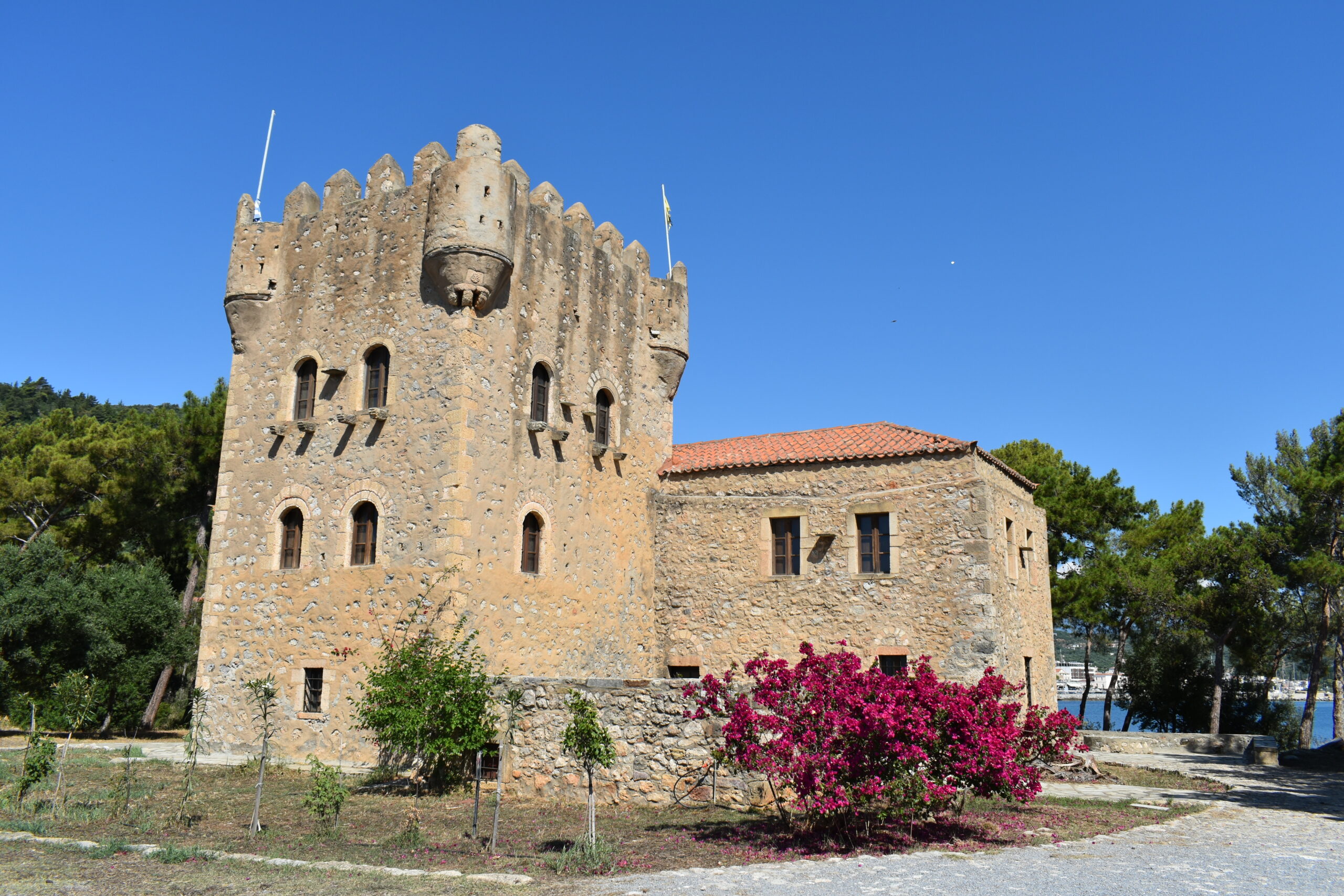 Το απέριττο και άψογα διατηρημένο κτίσμα του 1829 που περιβάλλεται από βουκαμβίλιες και πεύκα, στις μέρες μας στεγάζει το Ιστορικό Εθνολογικό Μουσείο Μάνης και προσφέρει ένα ενδιαφέρον οδοιπορικό στην περιοχή και την ιστορία της. Χάρτες εποχής και παραδοσιακές στολές των βρακοφόρων – και όχι φουστανελοφόρων – Μανιατών παρεμβάλλονται ανάμεσα σε παρουσιάσεις μελετητών, περιηγητών, διπλωματών, στρατιωτικών και θαυμαστών του ελληνικού πολιτισμού, που από τον 15ο ως το 19ο αιώνα περιόδευαν στη Μάνη καταγράφοντας στοιχεία του τόπου, των ανθρώπων και της γλώσσας τους. Παρουσιάζονται επίσης τα είδη χλωρίδας και πανίδας της περιοχής, ενώ δεν πρέπει να χάσετε την απεικόνιση των σφραγίδων και των υπογραφών των καπετάνιων της Επανάστασης. Από τον πύργο, ένα μονοπάτι λίγων μέτρων θα σας φέρει μπροστά στον ύψους 23 μέτρων οκταγωνικό φάρο, που από 1873 κοσμεί την ανατολική άκρη του νησιού και που σύμφωνα με τη μυθολογία βρίσκεται στο σημείο που είχε αποτελέσει το ερωτικό καταφύγιο του Πάρι και της Ωραίας Ελένης. Πέρα από το μύθο, η πραγματικότητα είναι ότι η θέα του πελάγους που ξεπροβάλλει ανάμεσα σε πεύκα και συκιές είναι μαγευτική.