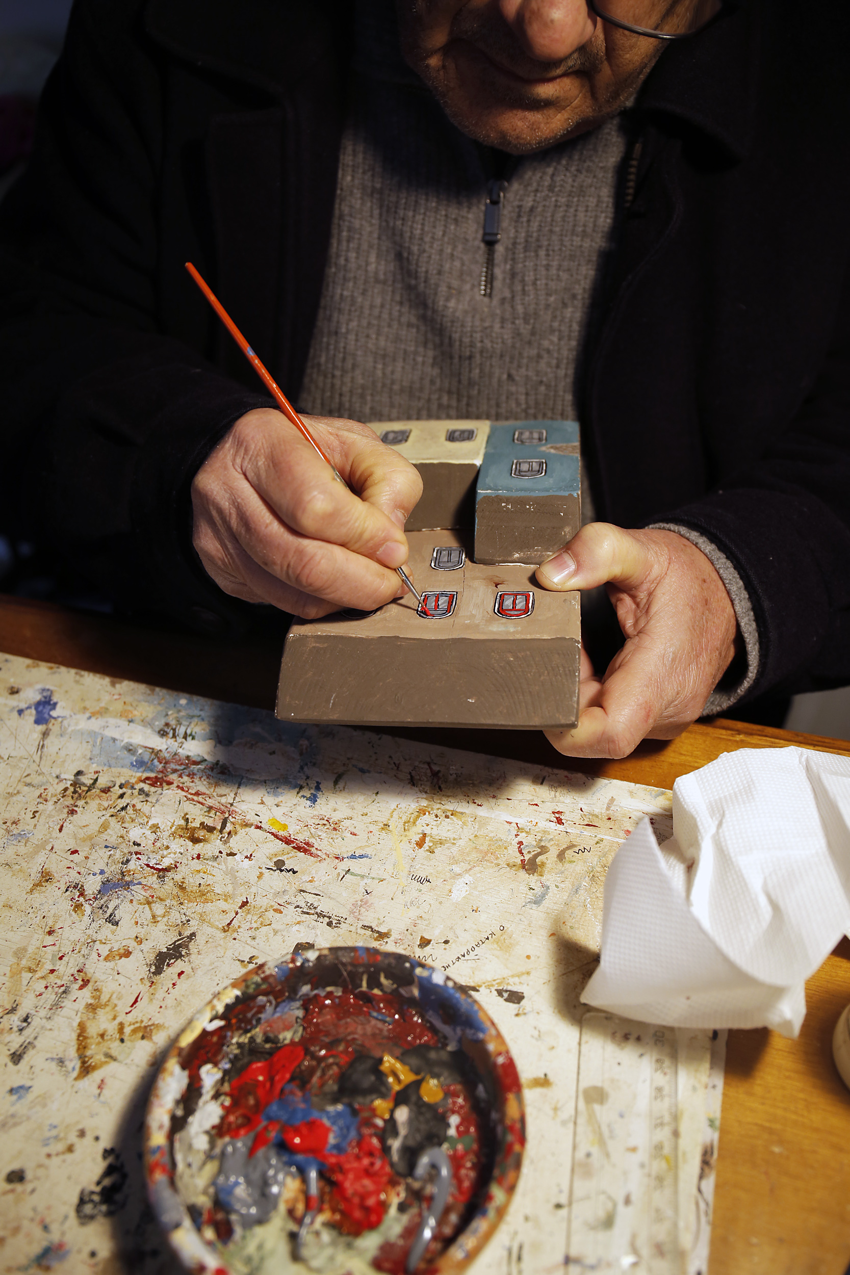 Κάτω από τη δυνατή λάμπα γραφείου, ο Κωνσταντίνος βουτάει τα πινέλα του στα χρώματα και δίνει ζωή με κινήσεις προσεκτικές σε ένα σπίτι από ξύλο, κτίριο υπαρκτό κάπου στον πλανήτη το οποίο έχει απομνημονεύσει ή φωτογραφίσει ή βρει σε φωτογραφίες στο διαδίκτυο, για να φτιάξει το όμορφο αντίγραφό του στο μικρό του ατελιέ. Από την ξύλινη βιτρίνα στο στενό σοκάκι καταλαβαίνει κανείς την καλλιτεχνική έκφραση που συντελείται στο εσωτερικό. Με καταγωγή από την Κέρκυρα, ο Κώστας ζούσε στην Αθήνα μέχρι τη συνταξιοδότησή του όπου ήρθε στην Τουρλωτή, τόπο καταγωγής της συζύγου του Όλγας και, ως καλλιτεχνική φύση όλη του τη ζωή, φτιάχνει διάφορα χειροτεχνήματα, σε ξύλο, σε κεραμικό, ακόμη και σε μέταλλο. Καμβάς μπορεί να γίνει ακόμη και ένα κομμάτι ξύλου παρατημένο κάπου ή και ξεβρασμένο στην ακτή. Στις εμπνεύσεις του συγκαταλέγονται και τα σκίτσα του Ηλία Κουμετάκη.