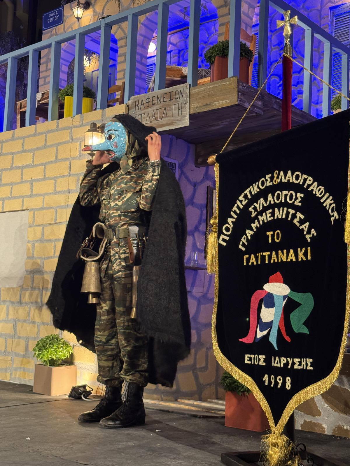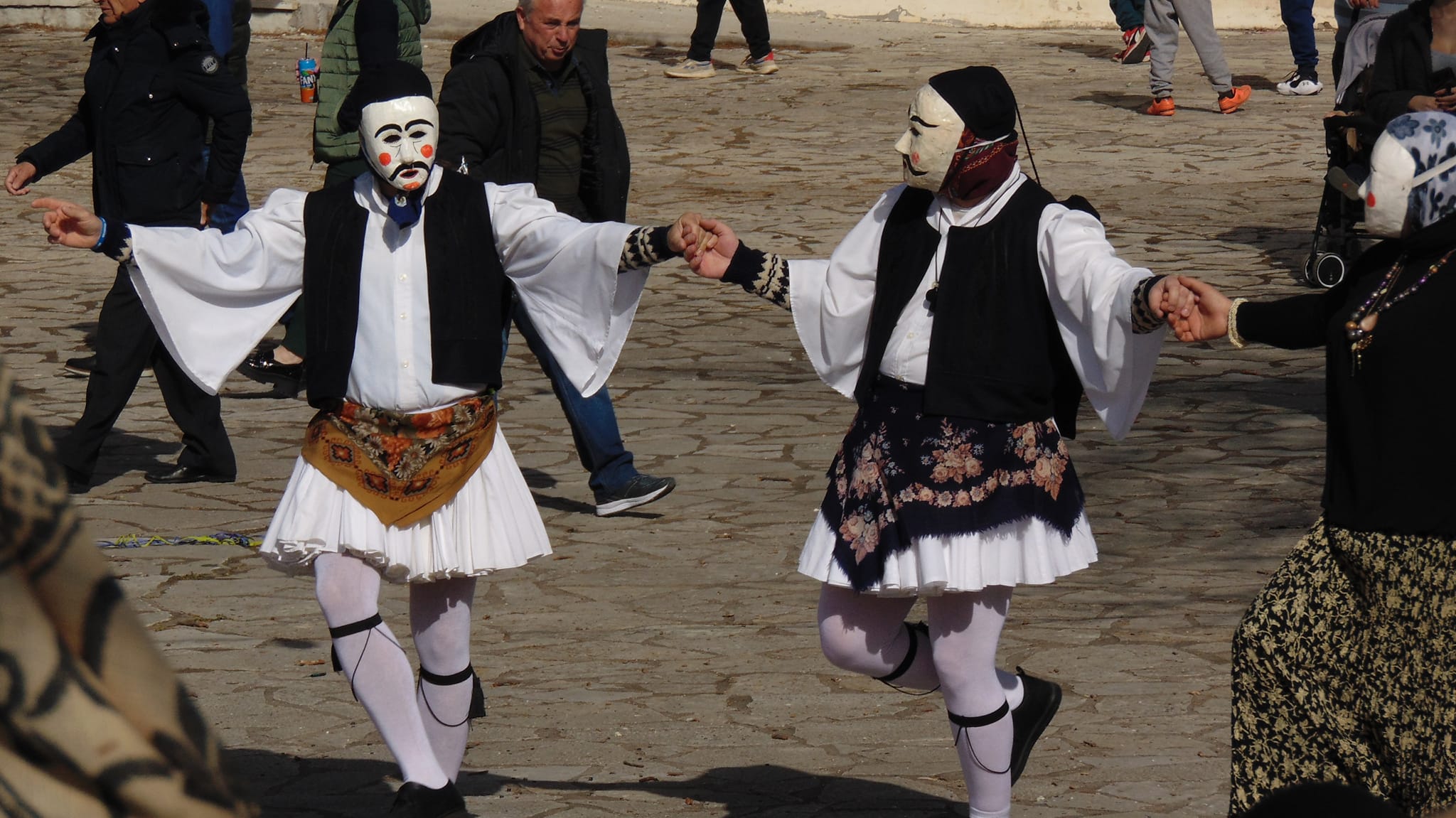 Μόλις τελειώσει το γαϊτανάκι και κοπούν οι δώδεκα κορδέλες, το μπουλούκι βγαίνει βόλτα σε όλο το χωριό και σταματά σε όσα σπίτια υπάρχουν άνθρωποι στις αυλές, όπου συνήθως τους περιμένουν με κεράσματα. Γιατί η παράδοση, τα ήθη και τα έθιμα του τόπου είναι η άυλη πολιτισμική κληρονομιά μας και την δικαιούνται και όσοι δεν έχουν πρόσβαση στην κεντρική πλατεία του χωριού. Εκείνη την ημέρα το χωριό είναι μια μονάδα, είναι όλοι ένα. Στη λήξη του εθίμου, το απόγευμα των Μεγάλων Αποκριών, γίνεται και η αποκάλυψη: βγαίνουν οι προσωπίδες για να εκλείψει ο «φόβος» και να φανερωθεί η αλήθεια.