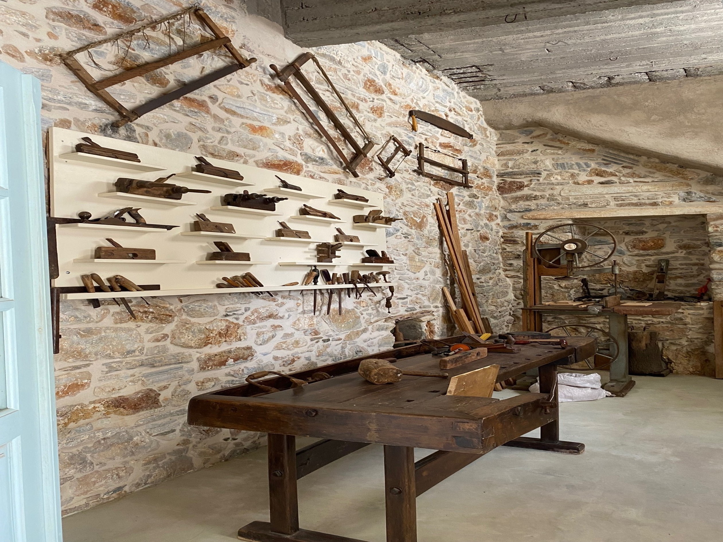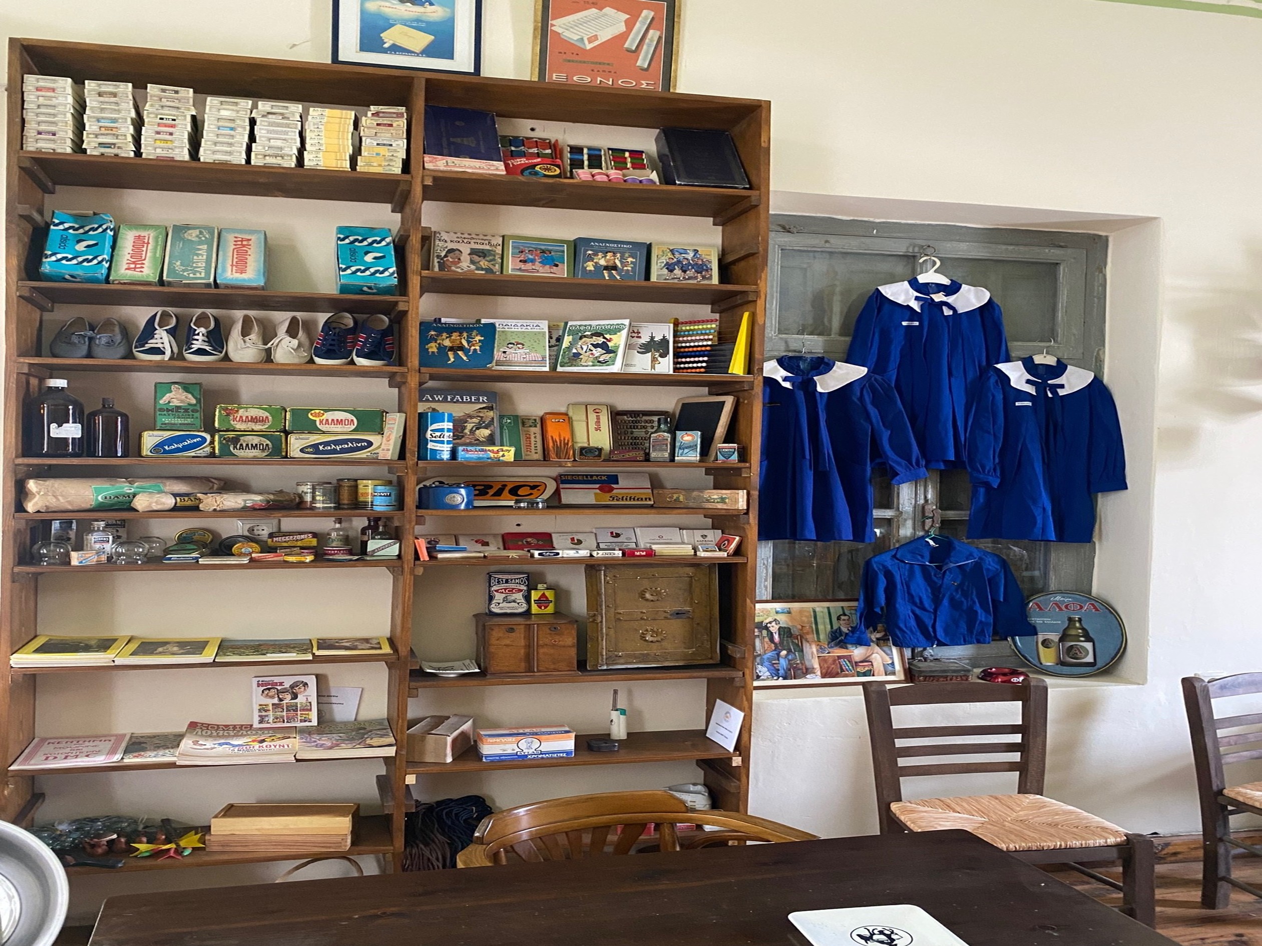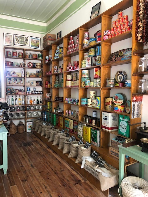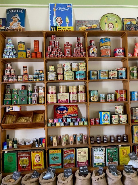 Το Μπακάλικο «του Σμιλομιχάλη», με ξύλινη οροφή και πάτωμα, παραπέμπει στην εποχή της πλάστιγγας και του βυζινέ, ενώ τα ράφια του κοσμούν παλιές συσκευασίες προϊόντων -από ντόπιες βιοτεχνίες, καθώς και βιομηχανίες με πανελλαδική εμβέλεια- μεταξύ των οποίων ξεχωρίζουν τα σαπουνάκια της σαπωνοποιίας «Αλεπουδέλη» (δηλαδή της οικογένειας του Οδυσσέα Ελύτη), τα πρώτα ελληνικά αθλητικά παπούτσια «ΕΛΒΙΕΛΑ», τα «Μπισκότα Παπαδοπούλου», τα προϊόντα της «ΧΡΩΠΕΙ», της κονσερβοποιίας τοματοπολτού «ΚΥΚΝΟΣ», καθώς και αυθεντικές διαφημιστικές πινακίδες.