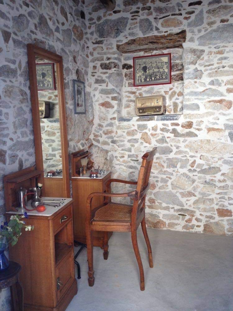 Το Κουρείο «του Τσακά» είναι εξοπλισμένο με παλιά έπιπλα και εργαλεία, με επίκεντρο την κλασική «καρέκλα του κουρέα». Στο κουρείο εκτίθεται και μικρή συλλογή από καπέλα της δεκαετίας του ’50, όπως κουκουβάγια μαθητή, μπερές, τραγιάσκα, καπέλο χωροφύλακα κ.ά., μιας και κούρεμα χωρίς να βγάλει ο πελάτης το καπέλο του δεν γίνεται.