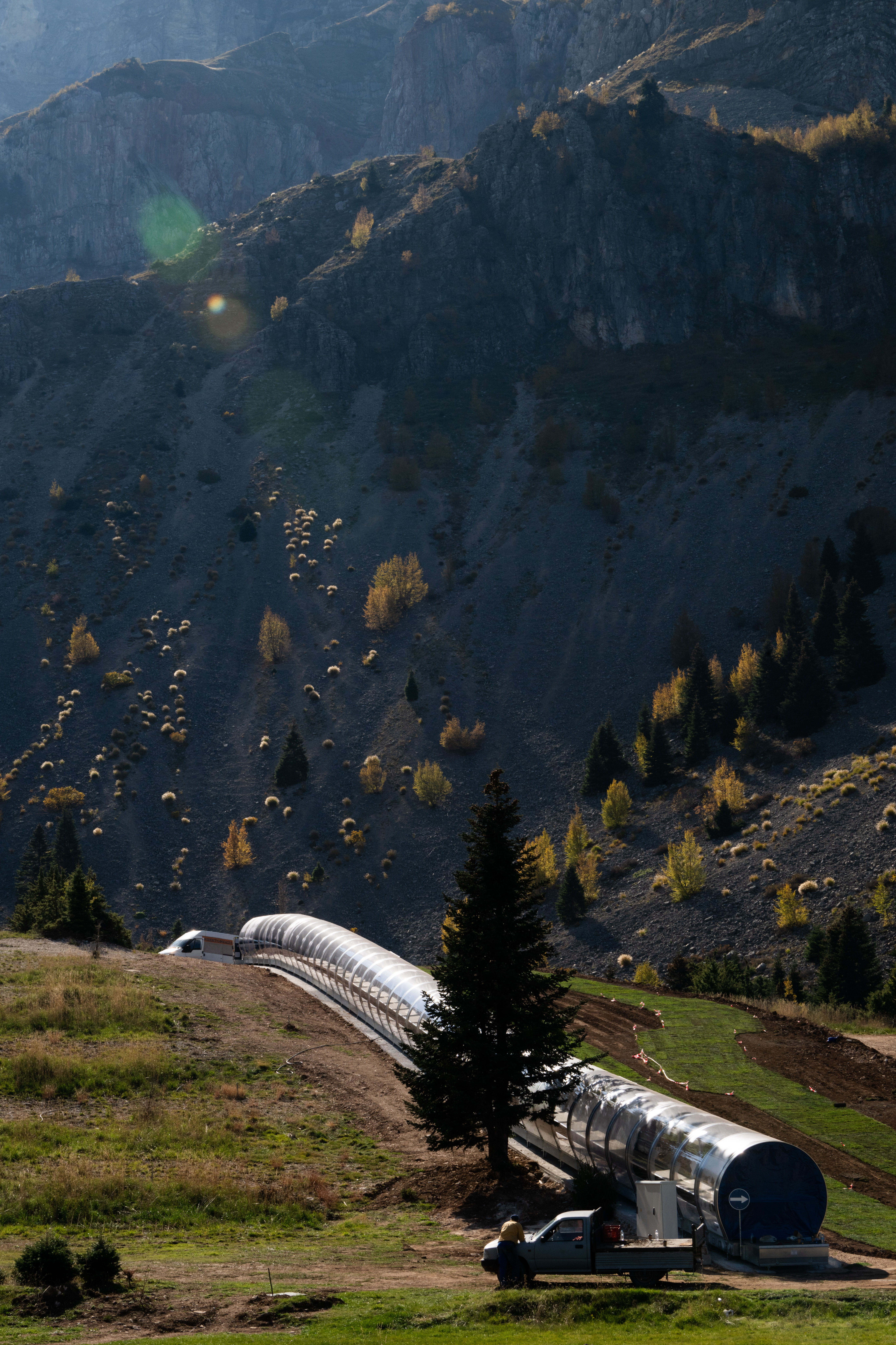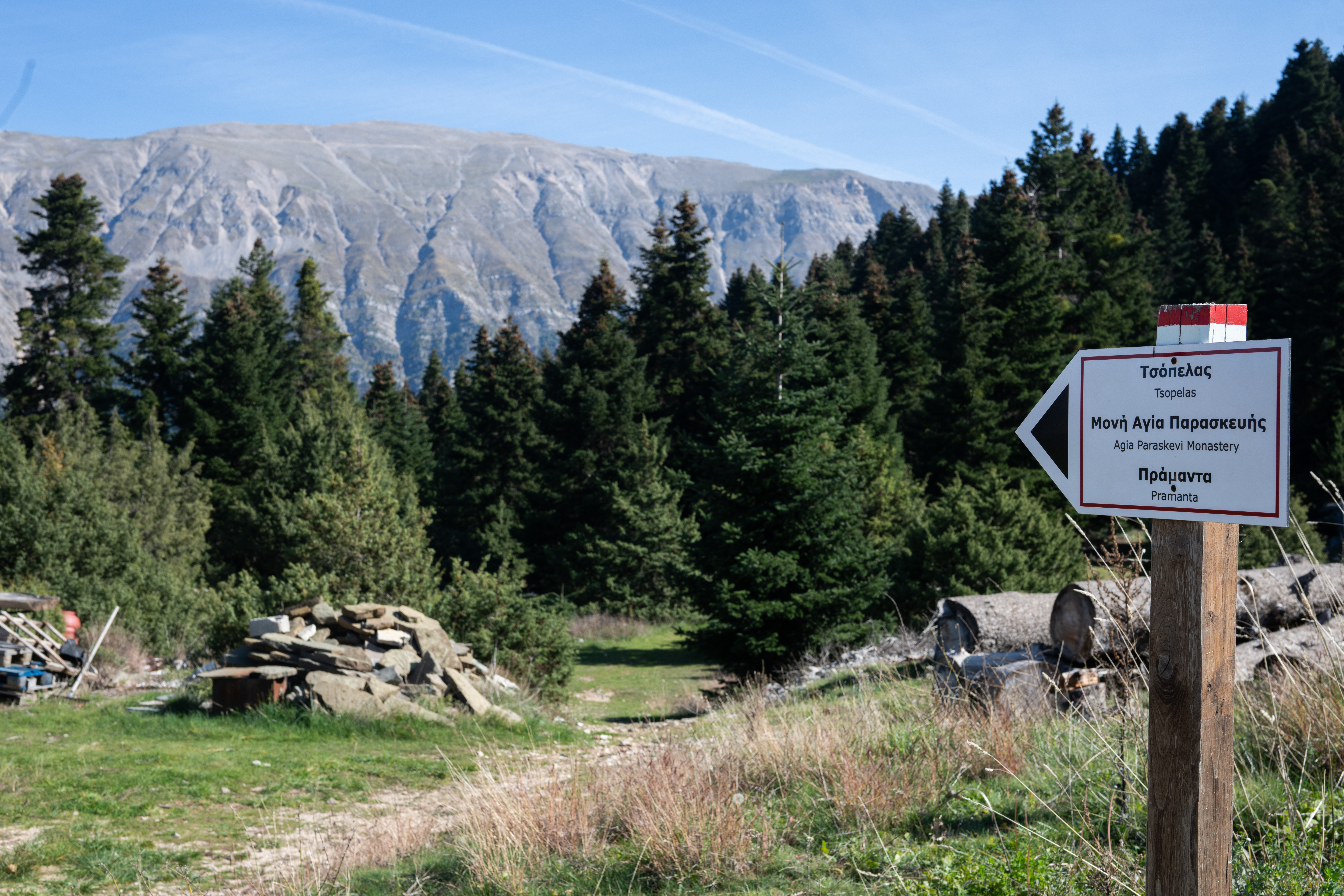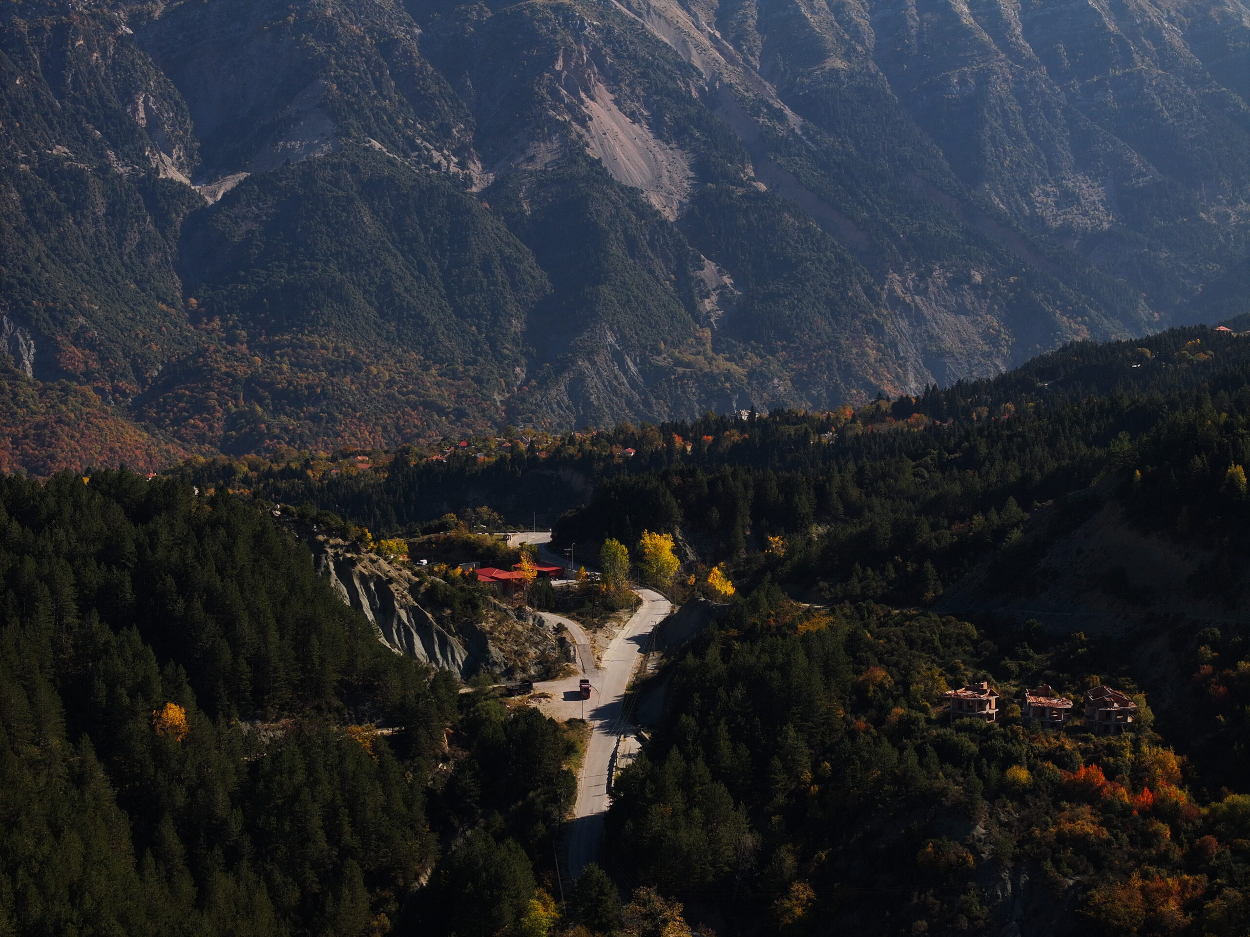 Η ομίχλη αγκαλιάζει τις κορυφές των Τζουμέρκων καθώς ο δρόμος σκαρφαλώνει προς τα Πράμαντα. Εδώ, στην καρδιά της Ηπείρου, η γη υψώνεται σε απότομες ορθοπλαγιές και σχηματίζει μια από τις πιο απόκρημνες ορεινές περιοχές της χώρας.