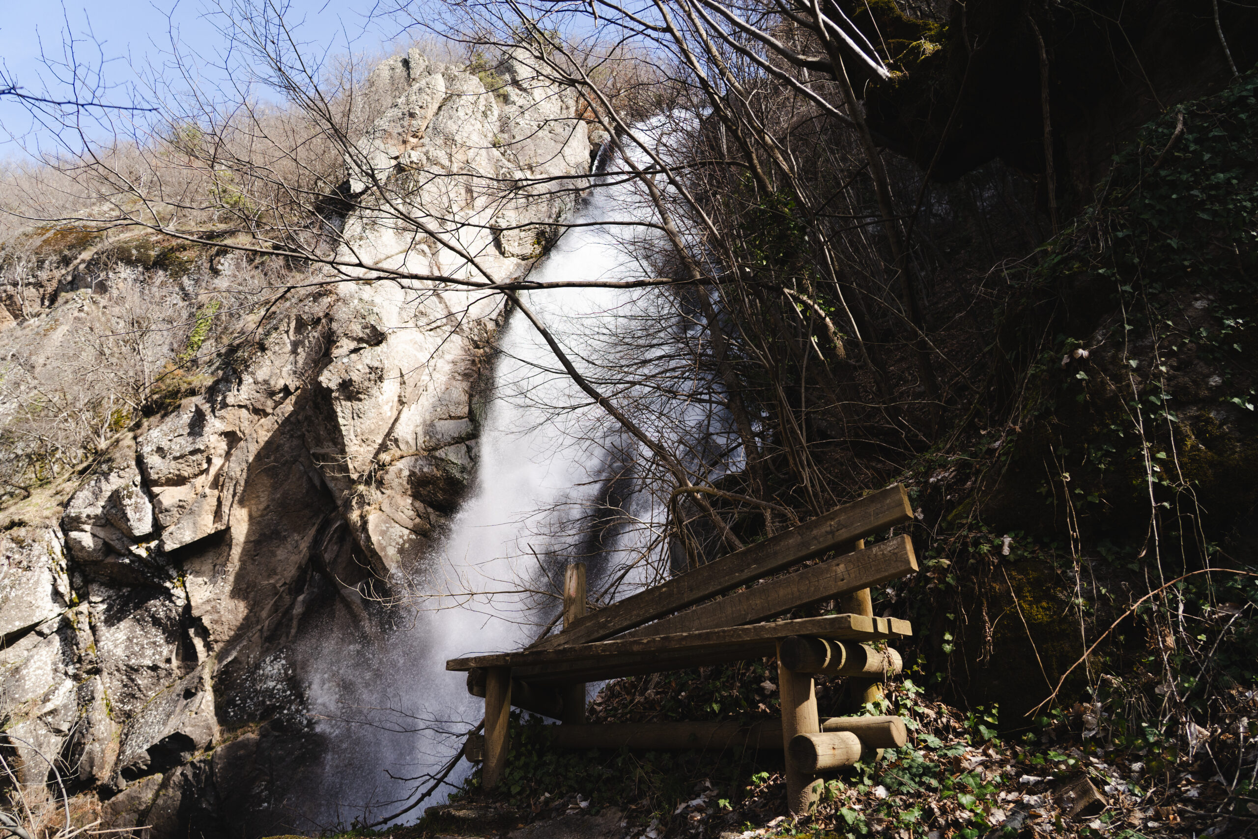 Ο επόμενος προορισμός ήταν ο Λειβαδίτης. Ο καταρράκτης του Λειβαδίτη, γνωστός και ως καταρράκτης του Τραχωνίου, βρίσκεται κοντά στο ομώνυμο χωριό, που είναι χτισμένο σε υψόμετρο περίπου 1.200 μέτρων και θεωρείται ένα από τα πιο ορεινά κατοικημένα χωριά της Θράκης. Ένας από τους πιο εντυπωσιακούς καταρράκτες της βόρειας Ελλάδας, με ύψος που ξεπερνά τα 50 μέτρα, σε μια περιοχή που δεν εντυπωσιάζει μόνο με το μέγεθος του νερού, αλλά κυρίως με το δάσος, το υψόμετρο και την αίσθηση μεγαλείου. Η πεζοπορία μέχρι εκεί, έστω και σύντομη στη δική μου εκδοχή της ημέρας, είχε έντονες κατηφόρες και ένα μονοπάτι φροντισμένο, με σήμανση που δείχνει ότι η περιοχή έχει αγαπηθεί πολύ από πεζοπόρους και trail runners. Όταν έφτασα, ήταν ήδη απόγευμα. Το κρύο δυνάμωνε και το φως λιγόστευε, οπότε δεν έμεινα πολύ. Μερικές φωτογραφίες, λίγος θαυμασμός μπροστά στην κάθετη πτώση του νερού και ύστερα επιστροφή.