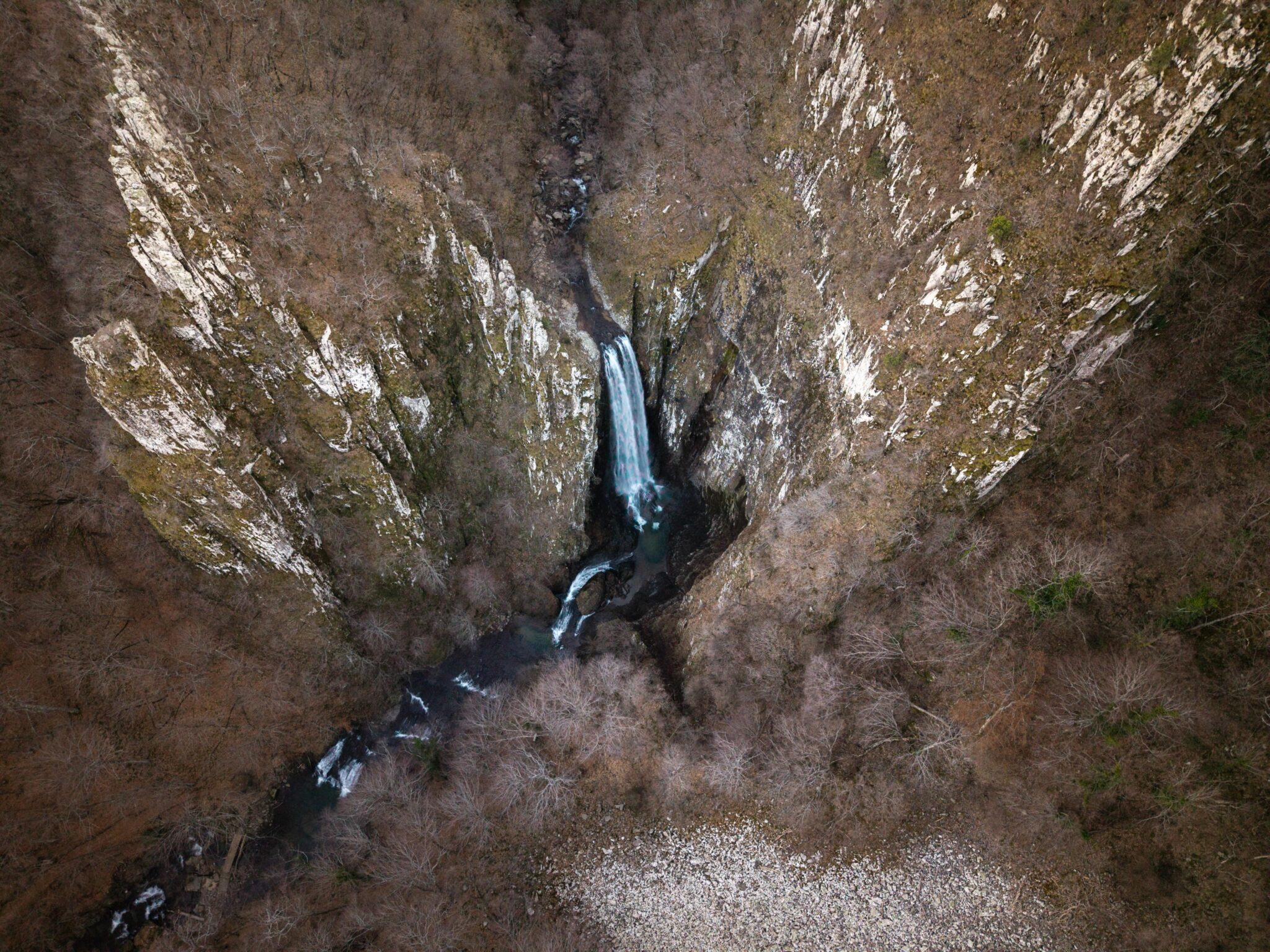 Στην κουβέντα με τον άνθρωπο του ξενοδοχείου υπήρχε και μια ελαφριά πίκρα. Μιλούσε για έναν τόπο πανέμορφο, αλλά κουρασμένο από την έλλειψη επισκεψιμότητας. Για τον τουρισμό που έχει ατονήσει, για μια περιοχή που, παρότι διαθέτει μερικά από τα πιο εντυπωσιακά φυσικά τοπία στη βόρεια Ελλάδα, μένει έξω από τον βασικό χάρτη των ταξιδιωτών. Μέσα στο παγωμένο πρωινό του Μαρτίου ξεκίνησα προς τα Διπόταμα και μπήκα στον δασικό δρόμο για τον καταρράκτη του Λεπίδα. Ο ίδιος ο καταρράκτης κρύβεται μετά από περίπου 700 μέτρα καθοδικής πεζοπορίας, μέσα σε ένα πυκνό δάσος με οξιές, βελανιδιές, σφεντάμια και φτελιές. Το νερό πέφτει από ύψος περίπου 30 μέτρων και η κλιμακωτή διάταξη των βράχων κάνει την πτώση του πιο θεατρική απ’ όσο αφήνει να φανταστεί κανείς η πρώτη εικόνα του μονοπατιού.