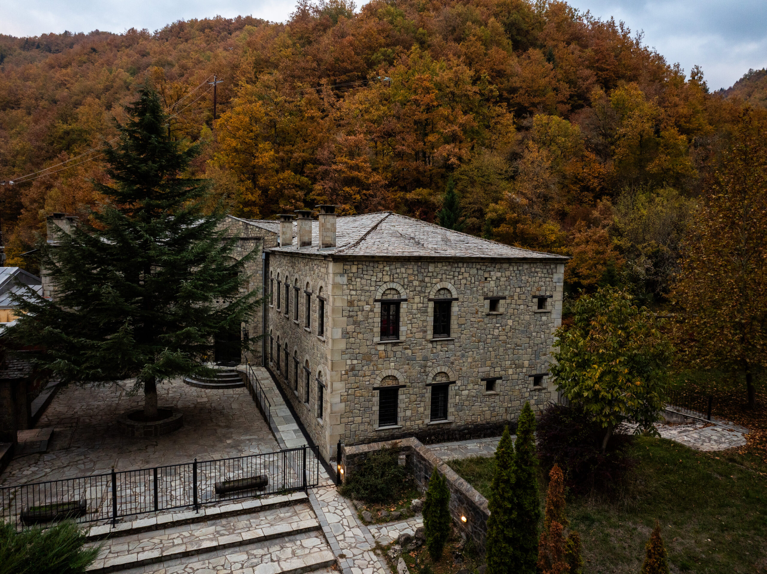 Στην καρδιά αυτού του φυσικού παραδείσου βρίσκονται τα Μαντάνια, ένα κατάλυμα που λειτουργεί ως πύλη εισόδου στην τοπική κουλτούρα. Εδώ, συναντήσαμε τη Φωτεινή Αλμπάνη, μια γυναίκα που άφησε την Καλαμπάκα για να γίνει η ψυχή αυτού του μέρους. Το επιβλητικό τζάκι στο λόμπι του ξενοδοχείου δημιουργεί την ιδανική ατμόσφαιρα για να ακούσεις ιστορίες ζωής και να νιώσεις τη ζεστασιά της αυθεντικής φιλοξενίας.